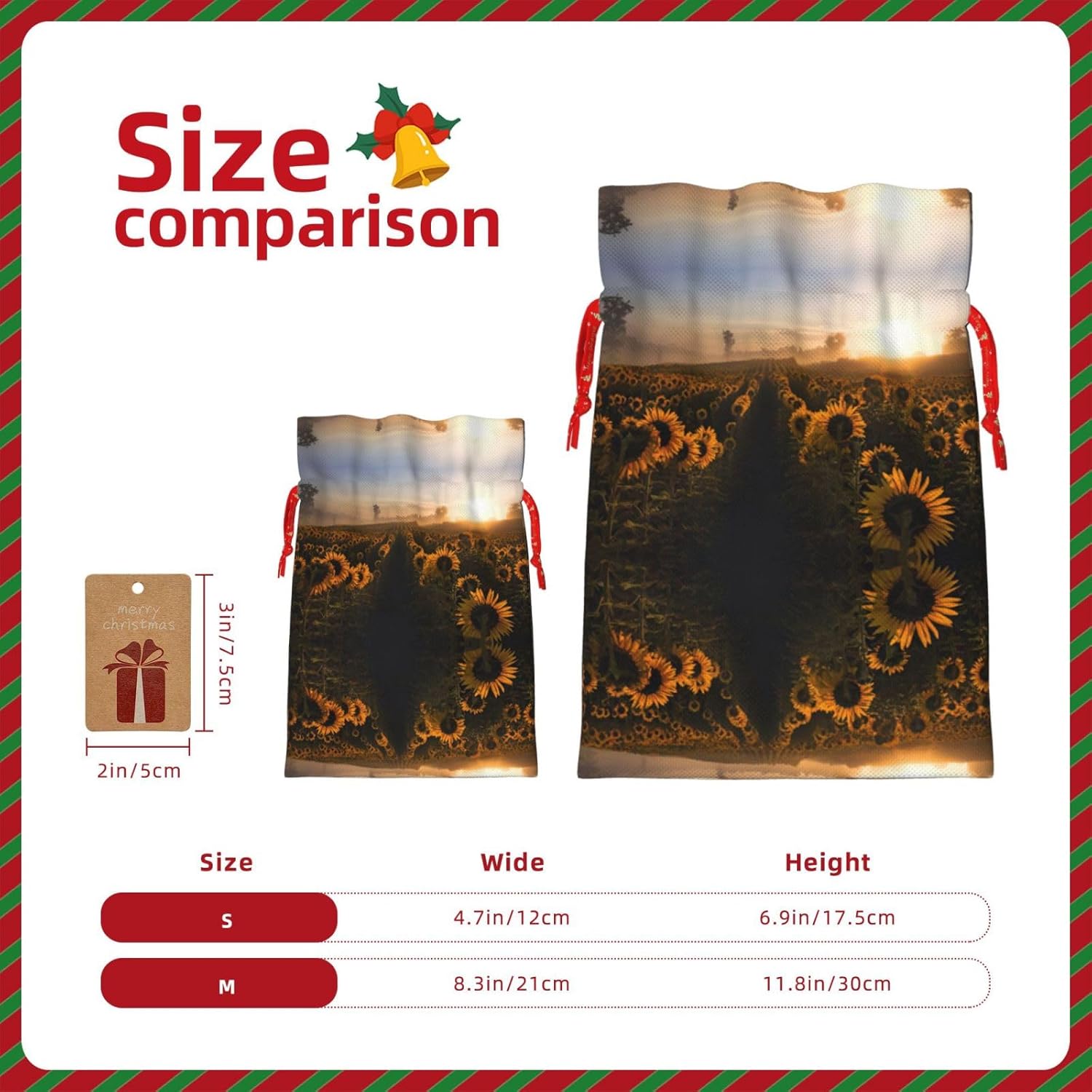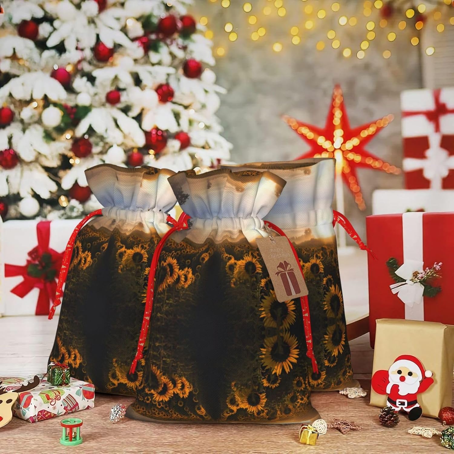 BORSE REGALO DI ALTO VALORE: la borsa Lanscape Sunflower è dotata di sacchetti regalo con cordoncini colorati ed etichette. I sacchetti regalo sono aggiornati con un design con chiusura a coulisse, sacchetti regalo realizzati in poliestere, resistenti e riutilizzabili. Non si strappano come la carta, ottimi per incartare i regali. 10 secondi per incartare un regalo: il sacchetto girasole per confezionare facilmente i regali, è facile da usare, basta inserire il regalo nei sacchetti, far scorrere l'etichetta regalo attraverso il nastro, tirare il nastro, annodare un fiocco e il gioco è fatto. Puoi evitare il fastidio associato a carta da imballaggio, forbici, nastro adesivo e nastro, risparmiare tempo e molto conveniente. Dimensioni del sacchetto regalo: i sacchetti regalo in 2 dimensioni possono soddisfare le preferenze di diverse persone e sono sufficienti per l'uso quotidiano e la festa di Natale. La S misura 12 x 17,5 cm e la M misura 12 x 30 cm. Sacchetti regalo in formati assortiti sfusi, perfetti per confezionare regali di diverse dimensioni. REGALO NEL REGALO: questi sacchetti regalo con girasole Lanscape possono essere riutilizzati molte volte. Un set di sacchetti regalo riutilizzabili sarà un'aggiunta meravigliosa a qualsiasi regalo e migliorerà l'esperienza complessiva del regalo. Inoltre, abbiamo rinforzato il fondo per una maggiore stabilità e una struttura robusta con carichi pesanti. Non facile da rompere per un uso durevole e duraturo. Sacchetti regalo multifunzionali: questi sacchetti di girasole possono essere utilizzati per conservare regali di Natale, giocattoli, bambole, cappelli di Natale, caramelle e regali durante una festa di Natale. Conservare i regali in questa borsa darà ai bambini più sorprese perché non sanno cosa c'è dentro.