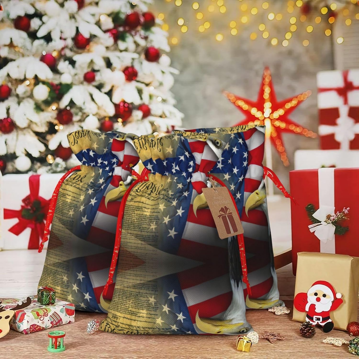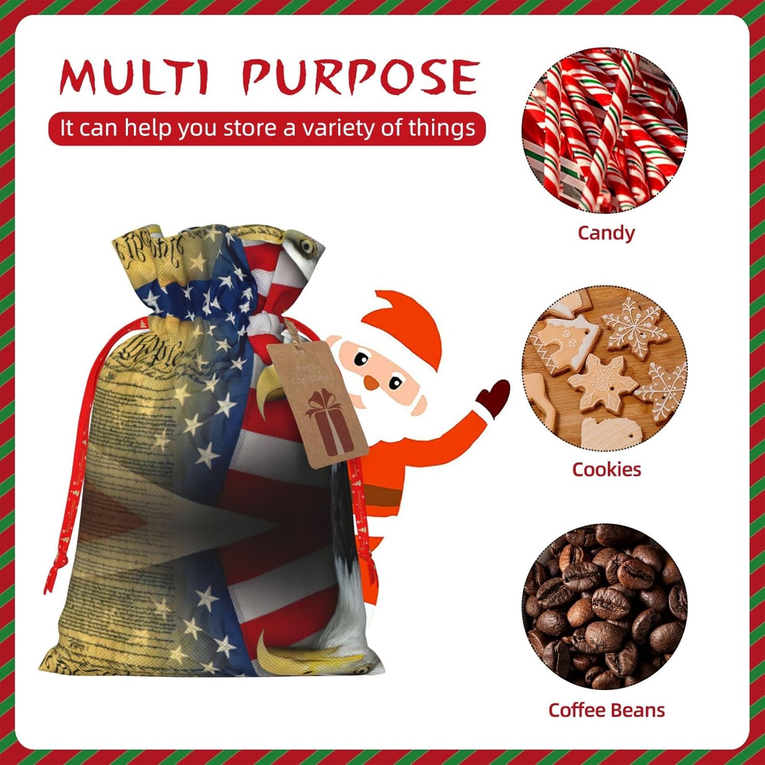 BORSE REGALO DI ALTO VALORE: la borsa American Eagle è dotata di sacchetti regalo con cordoncini colorati ed etichette. I sacchetti regalo sono aggiornati con un design con chiusura a coulisse, sacchetti regalo realizzati in poliestere, resistenti e riutilizzabili. Non si strappano come la carta, ottimi per incartare i regali. 10 secondi per incartare un regalo: la borsa American Eagle per confezionare facilmente i regali, è facile da usare, basta inserire il regalo nelle buste, far scorrere l'etichetta regalo attraverso il nastro, tirare il nastro, annodare un fiocco e il gioco è fatto. Puoi evitare il fastidio associato a carta da imballaggio, forbici, nastro adesivo e nastro, risparmiare tempo e molto conveniente. Dimensioni del sacchetto regalo: i sacchetti regalo in 2 dimensioni possono soddisfare le preferenze di diverse persone e sono sufficienti per l'uso quotidiano e la festa di Natale. La S misura 12 x 17,5 cm e la M misura 12 x 30 cm. Sacchetti regalo in formati assortiti sfusi, perfetti per confezionare regali di diverse dimensioni. REGALO NEL REGALO: questi sacchetti regalo American Eagle possono essere riutilizzati molte volte. Un set di sacchetti regalo riutilizzabili sarà un'aggiunta meravigliosa a qualsiasi regalo e migliorerà l'esperienza complessiva del regalo. Inoltre, abbiamo rinforzato il fondo per una maggiore stabilità e una struttura robusta con carichi pesanti. Non facile da rompere per un uso durevole e duraturo. Sacchetti regalo multifunzionali: questi sacchetti natalizi dell'aquila americana possono essere utilizzati per conservare regali di Natale, giocattoli, bambole, cappelli natalizi, caramelle e regali durante una festa di Natale. Conservare i regali in questa borsa darà ai bambini più sorprese perché non sanno cosa c'è dentro.