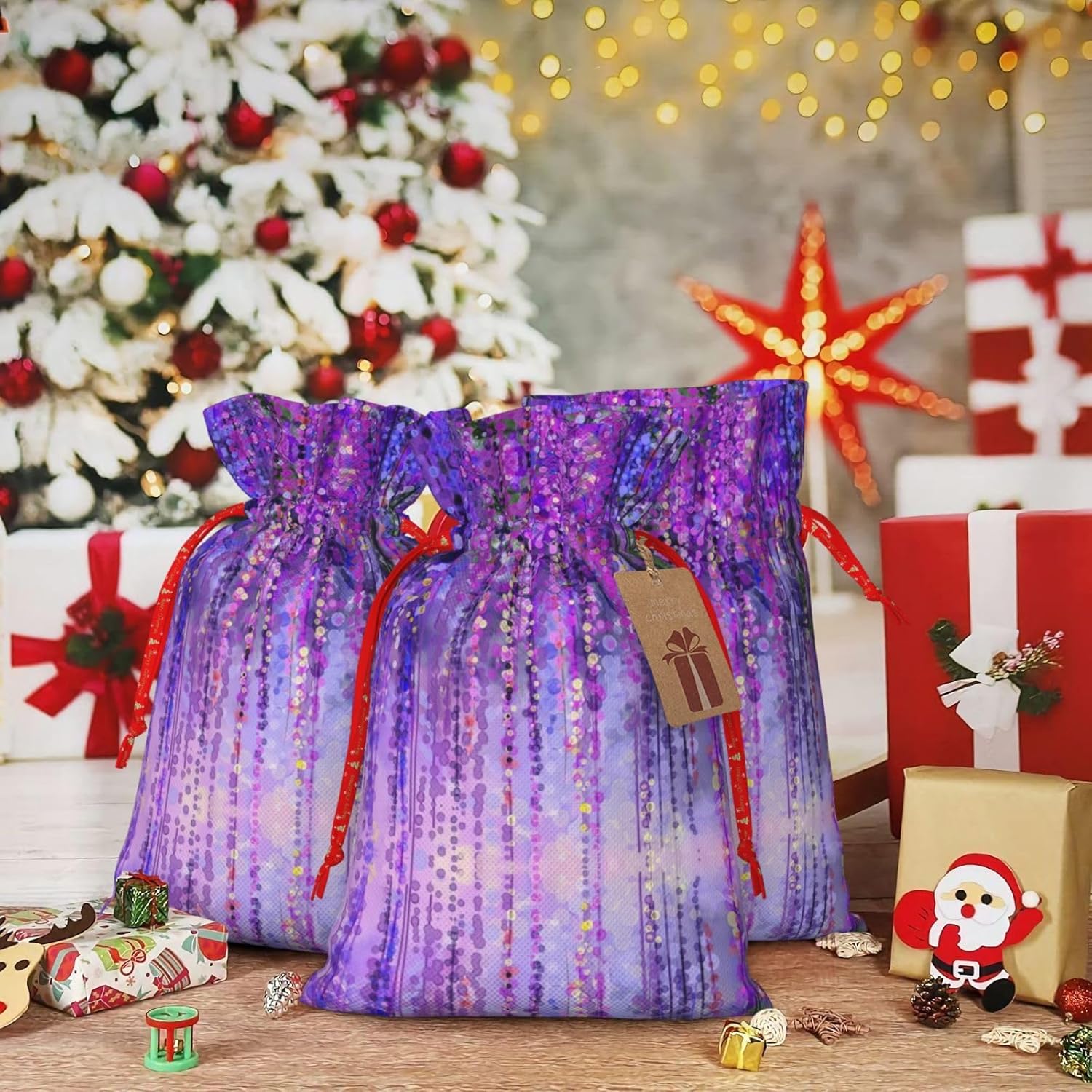 BORSE REGALO DI ALTO VALORE: la borsa con albero floreale è dotata di sacchetti regalo con cordoncini colorati ed etichette. I sacchetti regalo sono aggiornati con un design con chiusura a coulisse, sacchetti regalo realizzati in poliestere, resistenti e riutilizzabili. Non si strappano come la carta, ottimi per incartare i regali. 10 secondi per incartare un regalo: il sacchetto con albero floreale per confezionare facilmente i regali, è facile da usare, basta inserire il regalo nei sacchetti, far scorrere l'etichetta regalo attraverso il nastro, tirare il nastro, annodare un fiocco e il gioco è fatto. Puoi evitare il fastidio associato a carta da imballaggio, forbici, nastro adesivo e nastro, risparmiare tempo e molto conveniente. Dimensioni del sacchetto regalo: i sacchetti regalo in 2 dimensioni possono soddisfare le preferenze di diverse persone e sono sufficienti per l'uso quotidiano e la festa di Natale. La S misura 12 x 17,5 cm e la M misura 12 x 30 cm. Sacchetti regalo in formati assortiti sfusi, perfetti per confezionare regali di diverse dimensioni. Regalo nel regalo: questi sacchetti regalo con albero floreale possono essere riutilizzati molte volte. Un set di sacchetti regalo riutilizzabili sarà un'aggiunta meravigliosa a qualsiasi regalo e migliorerà l'esperienza complessiva del regalo. Inoltre, abbiamo rinforzato il fondo per una maggiore stabilità e una struttura robusta con carichi pesanti. Non facile da rompere per un uso durevole e duraturo. Sacchetti regalo multifunzionali: questi sacchetti natalizi a fiori possono essere utilizzati per conservare regali di Natale, giocattoli, bambole, cappelli natalizi, caramelle e regali durante una festa di Natale. Conservare i regali in questa borsa darà ai bambini più sorprese perché non sanno cosa c'è dentro.