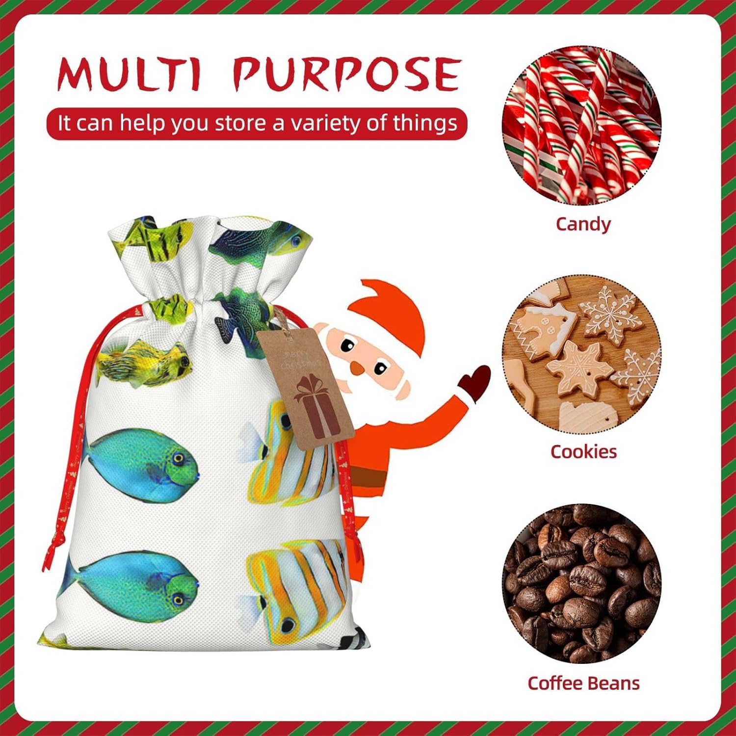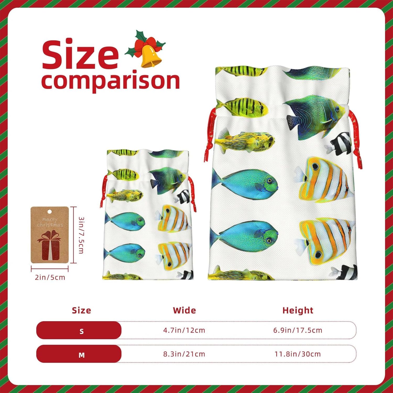 BORSE REGALO DI ALTO VALORE: la borsa Ocean Tropical Fish è dotata di sacchetti regalo con cordoncini colorati ed etichette. I sacchetti regalo sono aggiornati con un design con chiusura a coulisse, sacchetti regalo realizzati in poliestere, resistenti e riutilizzabili. Non si strappano come la carta, ottimi per incartare i regali. 10 secondi per incartare un regalo: sacchetto Ocean Tropical Fish per confezionare facilmente i regali, è facile da usare, basta inserire il regalo nei sacchetti, far scorrere l'etichetta regalo attraverso il nastro, tirare il nastro, annodare un fiocco e il gioco è fatto. Puoi evitare il fastidio associato a carta da imballaggio, forbici, nastro adesivo e nastro, risparmiare tempo e molto conveniente. Dimensioni del sacchetto regalo: i sacchetti regalo in 2 dimensioni possono soddisfare le preferenze di diverse persone e sono sufficienti per l'uso quotidiano e la festa di Natale. La S misura 12 x 17,5 cm e la M misura 12 x 30 cm. Sacchetti regalo in formati assortiti sfusi, perfetti per confezionare regali di diverse dimensioni. REGALO IDEALE: questi sacchetti regalo con pesci tropicali possono essere riutilizzati più volte. Un set di sacchetti regalo riutilizzabili sarà un'aggiunta meravigliosa a qualsiasi regalo e migliorerà l'esperienza complessiva del regalo. Inoltre, abbiamo rinforzato il fondo per una maggiore stabilità e una struttura robusta con carichi pesanti. Non facile da rompere per un uso durevole e duraturo. Sacchetti regalo multifunzionali: questi sacchetti natalizi con pesci tropicali possono essere utilizzati per conservare regali di Natale, giocattoli, bambole, cappelli natalizi, caramelle e regali durante una festa di Natale. Conservare i regali in questa borsa darà ai bambini più sorprese perché non sanno cosa c'è dentro.