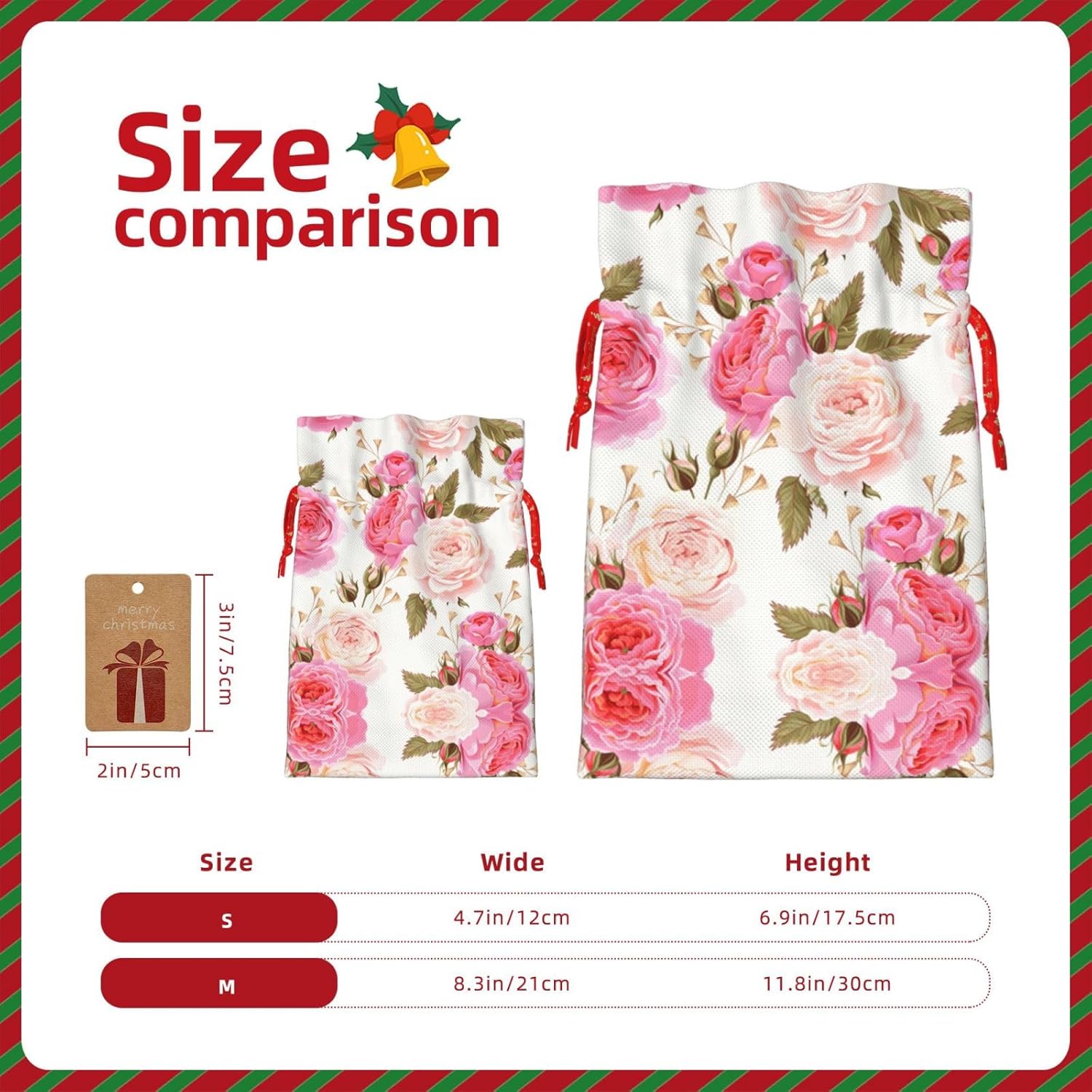 BORSE REGALO DI ALTO VALORE: la borsa con fiori di rosa è dotata di sacchetti regalo con cordoncini colorati ed etichette. I sacchetti regalo sono aggiornati con un design con chiusura a coulisse, sacchetti regalo realizzati in poliestere, resistenti e riutilizzabili. Non si strappano come la carta, ottimi per incartare i regali. 10 secondi per incartare un regalo: il sacchetto floreale rosa per confezionare facilmente i regali, è facile da usare, basta inserire il regalo nei sacchetti, far scorrere l'etichetta regalo attraverso il nastro, tirare il nastro, annodare un fiocco e il gioco è fatto. Puoi evitare il fastidio associato a carta da imballaggio, forbici, nastro adesivo e nastro, risparmiare tempo e molto conveniente. Dimensioni del sacchetto regalo: i sacchetti regalo in 2 dimensioni possono soddisfare le preferenze di diverse persone e sono sufficienti per l'uso quotidiano e la festa di Natale. La S misura 12 x 17,5 cm e la M misura 12 x 30 cm. Sacchetti regalo in formati assortiti sfusi, perfetti per confezionare regali di diverse dimensioni. REGALO IDEALE: questi sacchetti regalo con fiori rosa possono essere riutilizzati molte volte. Un set di sacchetti regalo riutilizzabili sarà un'aggiunta meravigliosa a qualsiasi regalo e migliorerà l'esperienza complessiva del regalo. Inoltre, abbiamo rinforzato il fondo per una maggiore stabilità e una struttura robusta con carichi pesanti. Non facile da rompere per un uso durevole e duraturo. Sacchetti regalo multifunzionali: questi sacchetti con fiori rosa possono essere utilizzati per conservare regali di Natale, giocattoli, bambole, cappelli di Natale, caramelle e regali durante una festa di Natale. Conservare i regali in questa borsa darà ai bambini più sorprese perché non sanno cosa c'è dentro.