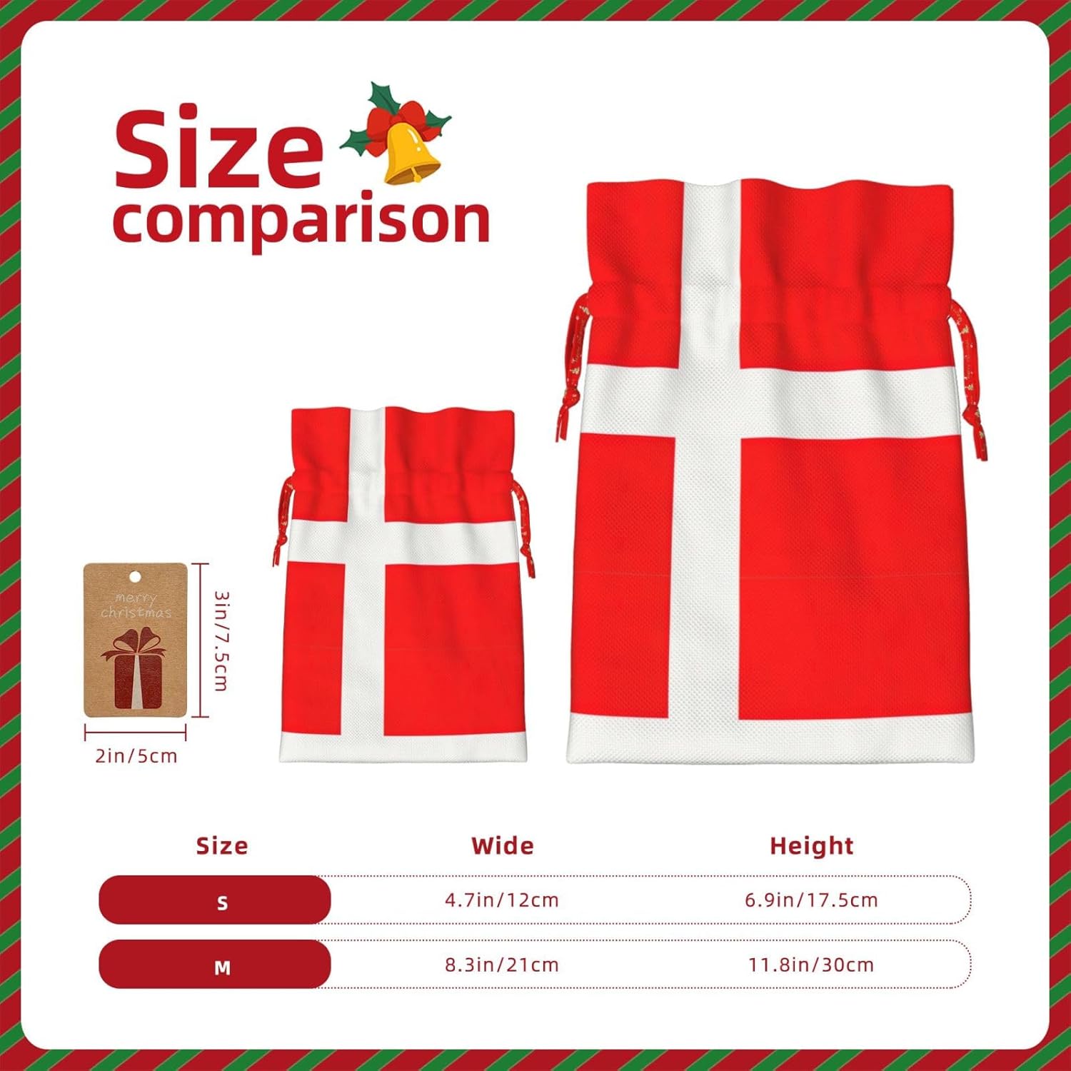 BORSE REGALO DI ALTO VALORE: la borsa con bandiera danese della Danimarca è dotata di sacchetti regalo con cordoncini colorati ed etichette. I sacchetti regalo sono aggiornati con un design con chiusura a coulisse, sacchetti regalo realizzati in poliestere, resistenti e riutilizzabili. Non si strappano come la carta, ottimi per incartare i regali. 10 secondi per incartare un regalo: il sacchetto con bandiera danese della Danimarca per confezionare facilmente i regali, è facile da usare, basta inserire il regalo nei sacchetti, far scorrere l'etichetta regalo attraverso il nastro, tirare il nastro, annodare un fiocco e il gioco è fatto. Puoi evitare il fastidio associato a carta da imballaggio, forbici, nastro adesivo e nastro, risparmiare tempo e molto conveniente. Dimensioni del sacchetto regalo: i sacchetti regalo in 2 dimensioni possono soddisfare le preferenze di diverse persone e sono sufficienti per l'uso quotidiano e la festa di Natale. La S misura 12 x 17,5 cm e la M misura 12 x 30 cm. Sacchetti regalo in formati assortiti sfusi, perfetti per confezionare regali di diverse dimensioni. REGALO IDEALE: questi sacchetti regalo con la bandiera danese della Danimarca possono essere riutilizzati più volte. Un set di sacchetti regalo riutilizzabili sarà un'aggiunta meravigliosa a qualsiasi regalo e migliorerà l'esperienza complessiva del regalo. Inoltre, abbiamo rinforzato il fondo per una maggiore stabilità e una struttura robusta con carichi pesanti. Non facile da rompere per un uso durevole e duraturo. Sacchetti regalo multifunzionali: questi sacchetti regalo natalizi con bandiera danese della Danimarca possono essere utilizzati per conservare regali di Natale, giocattoli, bambole, cappelli natalizi, caramelle e regali durante una festa di Natale. Conservare i regali in questa borsa darà ai bambini più sorprese perché non sanno cosa c'è dentro.