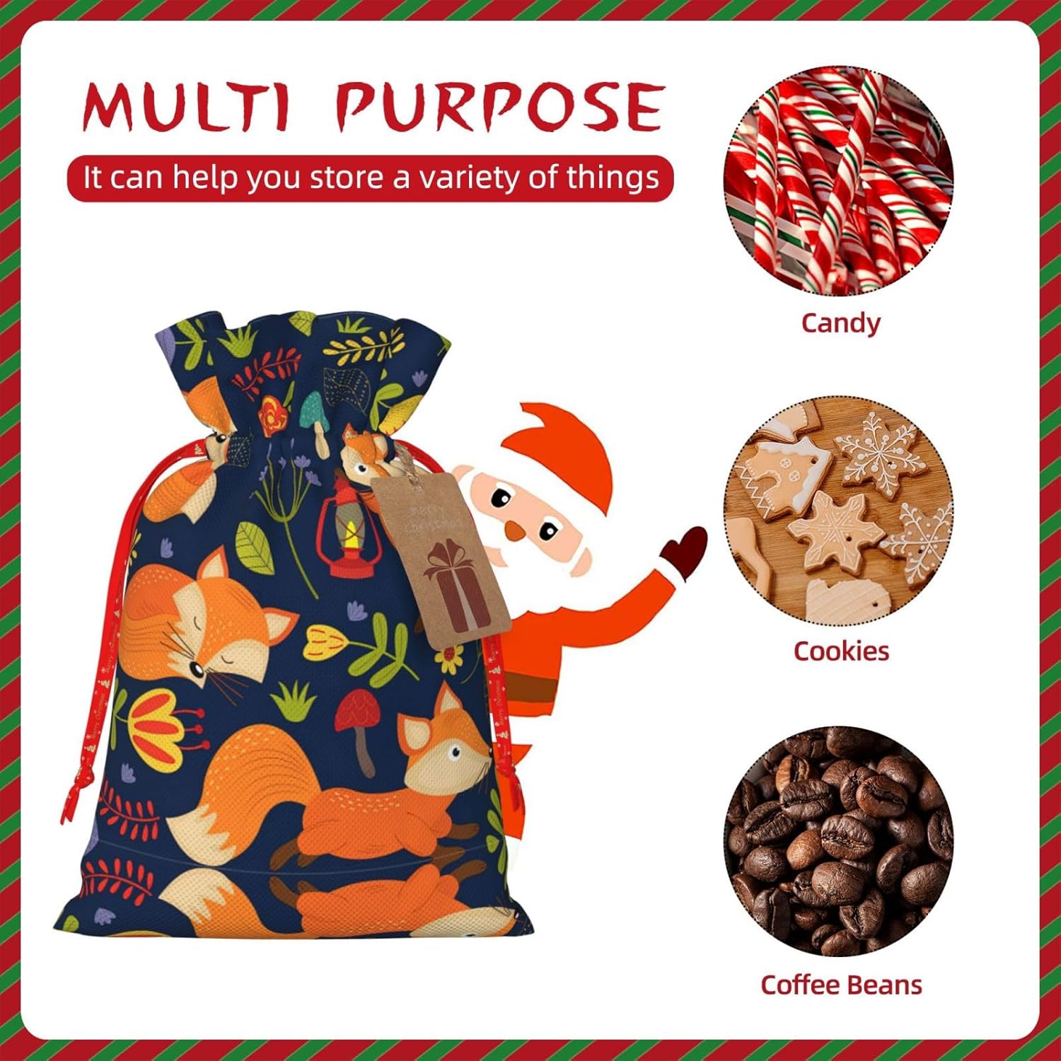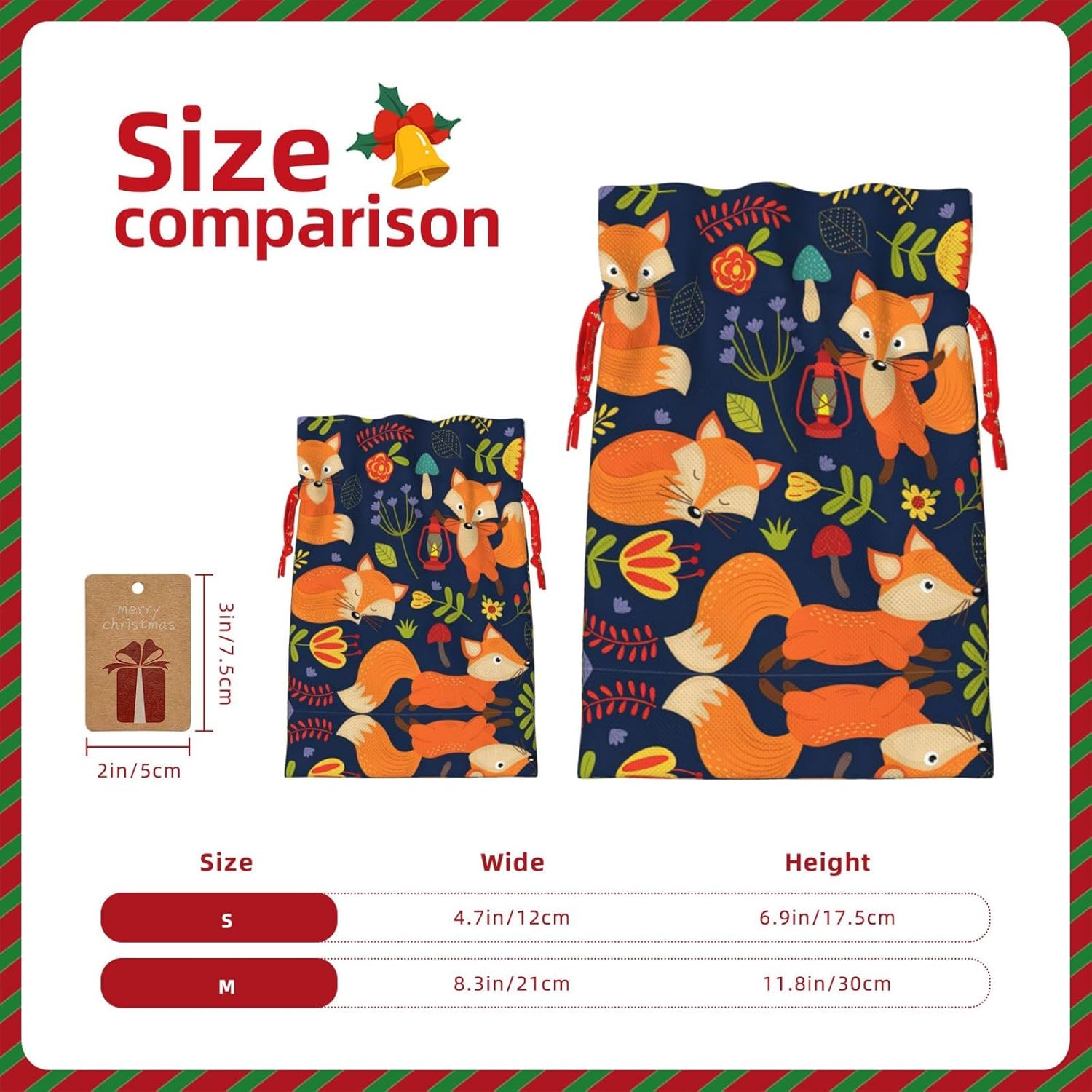 BORSE REGALO DI ALTO VALORE: la graziosa borsa a fiori con volpe è dotata di sacchetti regalo con cordoncini colorati ed etichette. I sacchetti regalo sono aggiornati con un design con chiusura a coulisse, sacchetti regalo realizzati in poliestere, resistenti e riutilizzabili. Non si strappano come la carta, ottimi per incartare i regali. 10 secondi per incartare un regalo: il simpatico sacchetto con animali e fiori di volpe per confezionare facilmente i regali, è facile da usare, basta inserire il regalo nei sacchetti, far scorrere l'etichetta regalo attraverso il nastro, tirare il nastro, annodare un fiocco e il gioco è fatto. Puoi evitare il fastidio associato a carta da imballaggio, forbici, nastro adesivo e nastro, risparmiare tempo e molto conveniente. Dimensioni del sacchetto regalo: i sacchetti regalo in 2 dimensioni possono soddisfare le preferenze di diverse persone e sono sufficienti per l'uso quotidiano e la festa di Natale. La S misura 12 x 17,5 cm e la M misura 12 x 30 cm. Sacchetti regalo in formati assortiti sfusi, perfetti per confezionare regali di diverse dimensioni. REGALO NEL REGALO: questi adorabili sacchetti regalo con volpe possono essere riutilizzati molte volte. Un set di sacchetti regalo riutilizzabili sarà un'aggiunta meravigliosa a qualsiasi regalo e migliorerà l'esperienza complessiva del regalo. Inoltre, abbiamo rinforzato il fondo per una maggiore stabilità e una struttura robusta con carichi pesanti. Non facile da rompere per un uso durevole e duraturo. Sacchetti regalo multifunzionali: questi simpatici sacchetti natalizi con volpe possono essere utilizzati per conservare regali di Natale, giocattoli, bambole, cappelli natalizi, caramelle e regali durante una festa di Natale. Conservare i regali in questa borsa darà ai bambini più sorprese perché non sanno cosa c'è dentro.