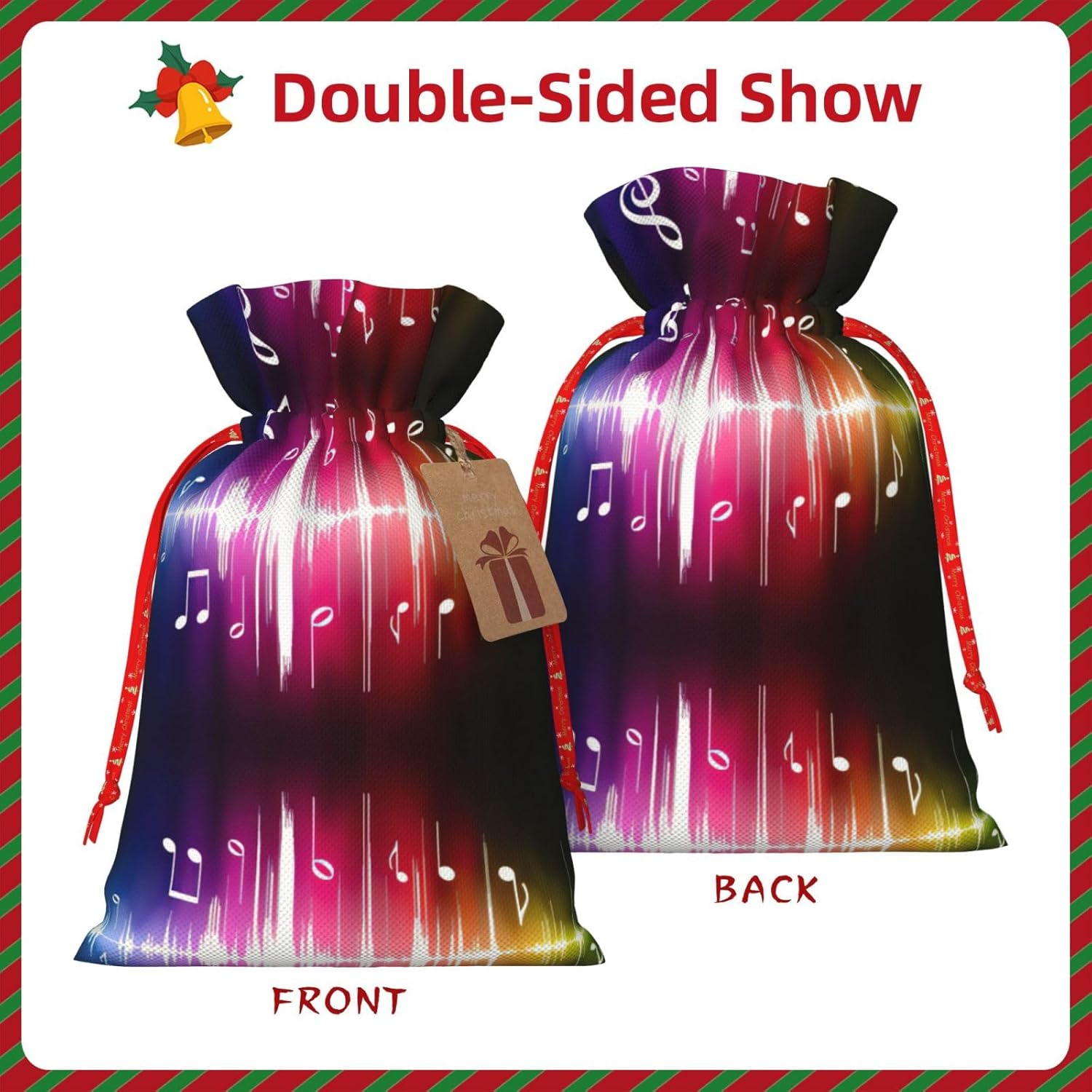 BORSE REGALO DI ALTO VALORE: la borsa per note musicali è dotata di sacchetti regalo con cordoncini colorati ed etichette. I sacchetti regalo sono aggiornati con un design con chiusura a coulisse, sacchetti regalo realizzati in poliestere, resistenti e riutilizzabili. Non si strappano come la carta, ottimi per incartare i regali. 10 secondi per incartare un regalo: il sacchetto per note musicali per confezionare facilmente i regali, è facile da usare, basta inserire il regalo nei sacchetti, far scorrere l'etichetta regalo attraverso il nastro, tirare il nastro, annodare un fiocco e il gioco è fatto. Puoi evitare il fastidio associato a carta da imballaggio, forbici, nastro adesivo e nastro, risparmiare tempo e molto conveniente. Dimensioni del sacchetto regalo: i sacchetti regalo in 2 dimensioni possono soddisfare le preferenze di diverse persone e sono sufficienti per l'uso quotidiano e la festa di Natale. La S misura 12 x 17,5 cm e la M misura 12 x 30 cm. Sacchetti regalo in formati assortiti sfusi, perfetti per confezionare regali di diverse dimensioni. REGALO NEL REGALO: questi sacchetti regalo con note musicali possono essere riutilizzati molte volte. Un set di sacchetti regalo riutilizzabili sarà un'aggiunta meravigliosa a qualsiasi regalo e migliorerà l'esperienza complessiva del regalo. Inoltre, abbiamo rinforzato il fondo per una maggiore stabilità e una struttura robusta con carichi pesanti. Non facile da rompere per un uso durevole e duraturo. Sacchetti regalo multifunzionali: questi sacchetti natalizi con note musicali possono essere utilizzati per conservare regali di Natale, giocattoli, bambole, cappelli natalizi, caramelle e regali durante una festa di Natale. Conservare i regali in questa borsa darà ai bambini più sorprese perché non sanno cosa c'è dentro.