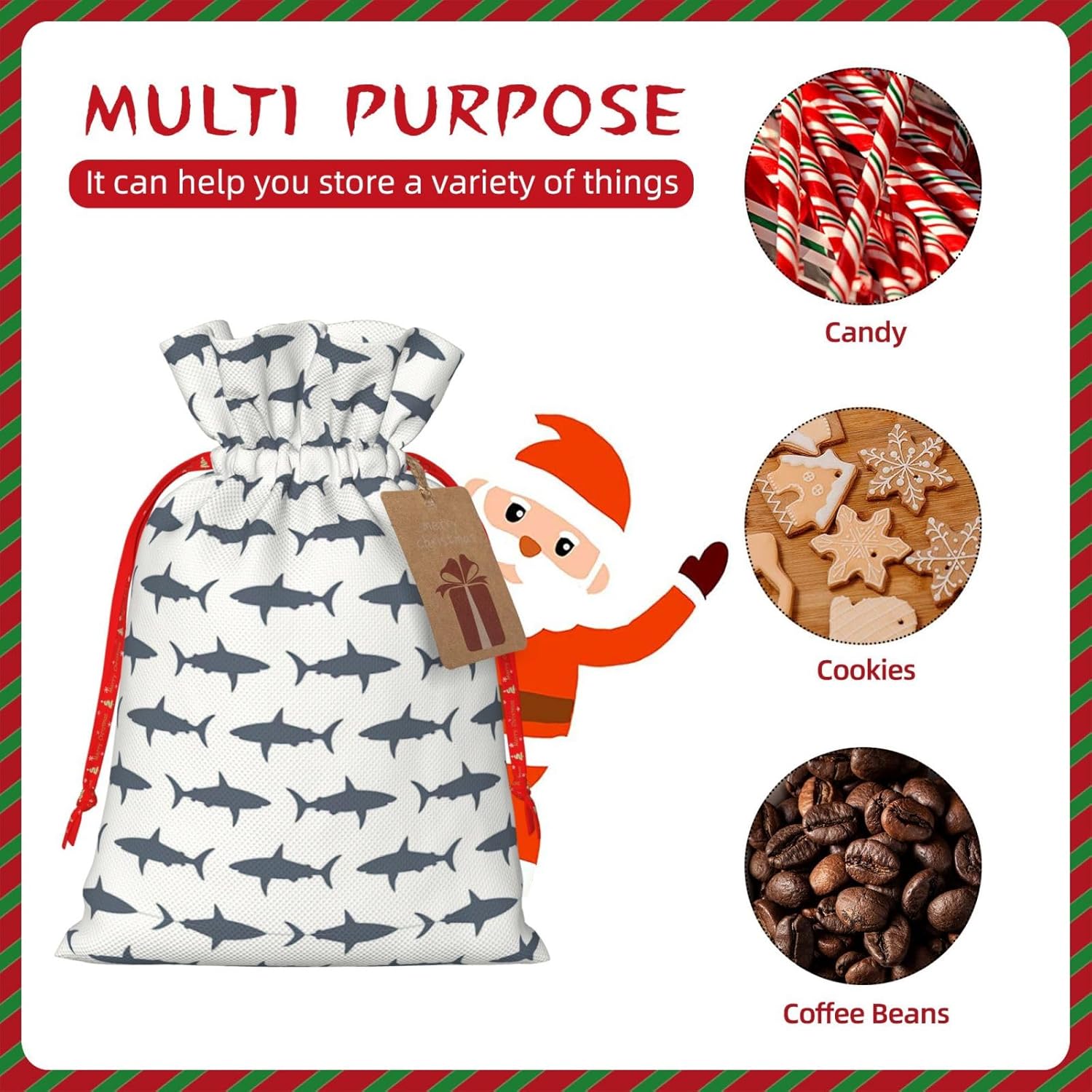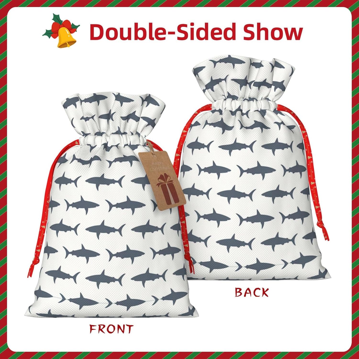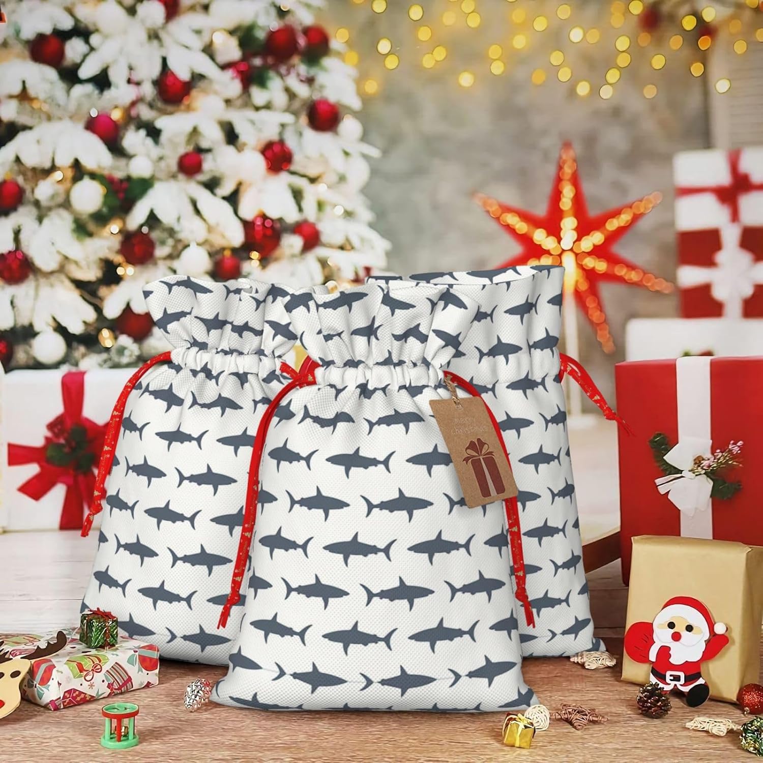 BORSE REGALO DI ALTO VALORE: la borsa con pesci e squali è dotata di sacchetti regalo con cordoncini colorati ed etichette. I sacchetti regalo sono aggiornati con un design con chiusura a coulisse, sacchetti regalo realizzati in poliestere, resistenti e riutilizzabili. Non si strappano come la carta, ottimi per incartare i regali. 10 secondi per incartare un regalo: il sacchetto con pesci e squali per confezionare facilmente i regali, è facile da usare, basta inserire il regalo nei sacchetti, far scorrere l'etichetta regalo attraverso il nastro, tirare il nastro, annodare un fiocco e il gioco è fatto. Puoi evitare il fastidio associato a carta da imballaggio, forbici, nastro adesivo e nastro, risparmiare tempo e molto conveniente. Dimensioni del sacchetto regalo: i sacchetti regalo in 2 dimensioni possono soddisfare le preferenze di diverse persone e sono sufficienti per l'uso quotidiano e la festa di Natale. La S misura 12 x 17,5 cm e la M misura 12 x 30 cm. Sacchetti regalo in formati assortiti sfusi, perfetti per confezionare regali di diverse dimensioni. REGALO IDEALE: questi sacchetti regalo con pesci e squali possono essere riutilizzati più volte. Un set di sacchetti regalo riutilizzabili sarà un'aggiunta meravigliosa a qualsiasi regalo e migliorerà l'esperienza complessiva del regalo. Inoltre, abbiamo rinforzato il fondo per una maggiore stabilità e una struttura robusta con carichi pesanti. Non facile da rompere per un uso durevole e duraturo. Sacchetti regalo multifunzionali: questi sacchetti natalizi con pesci e squali possono essere utilizzati per conservare regali di Natale, giocattoli, bambole, cappelli natalizi, caramelle e regali durante una festa di Natale. Conservare i regali in questa borsa darà ai bambini più sorprese perché non sanno cosa c'è dentro.
