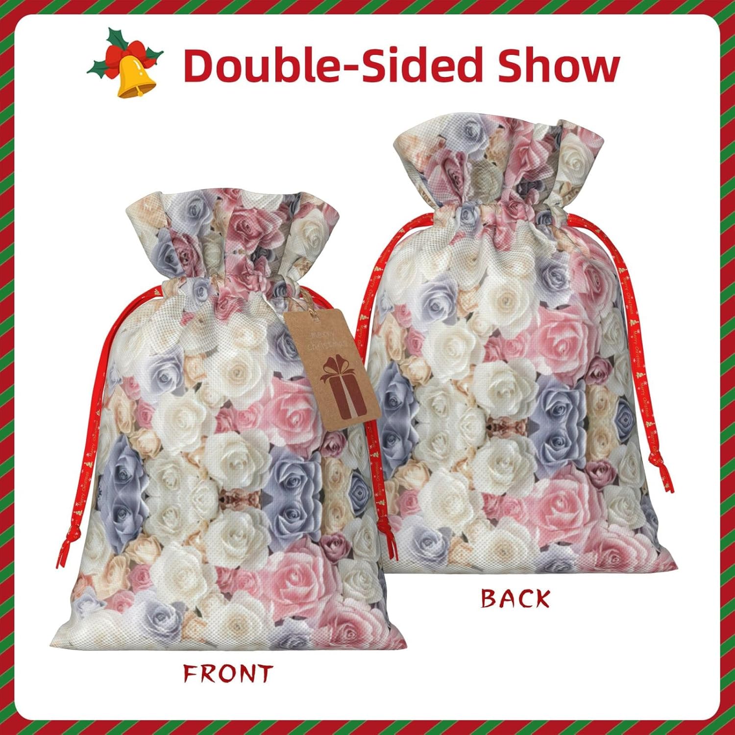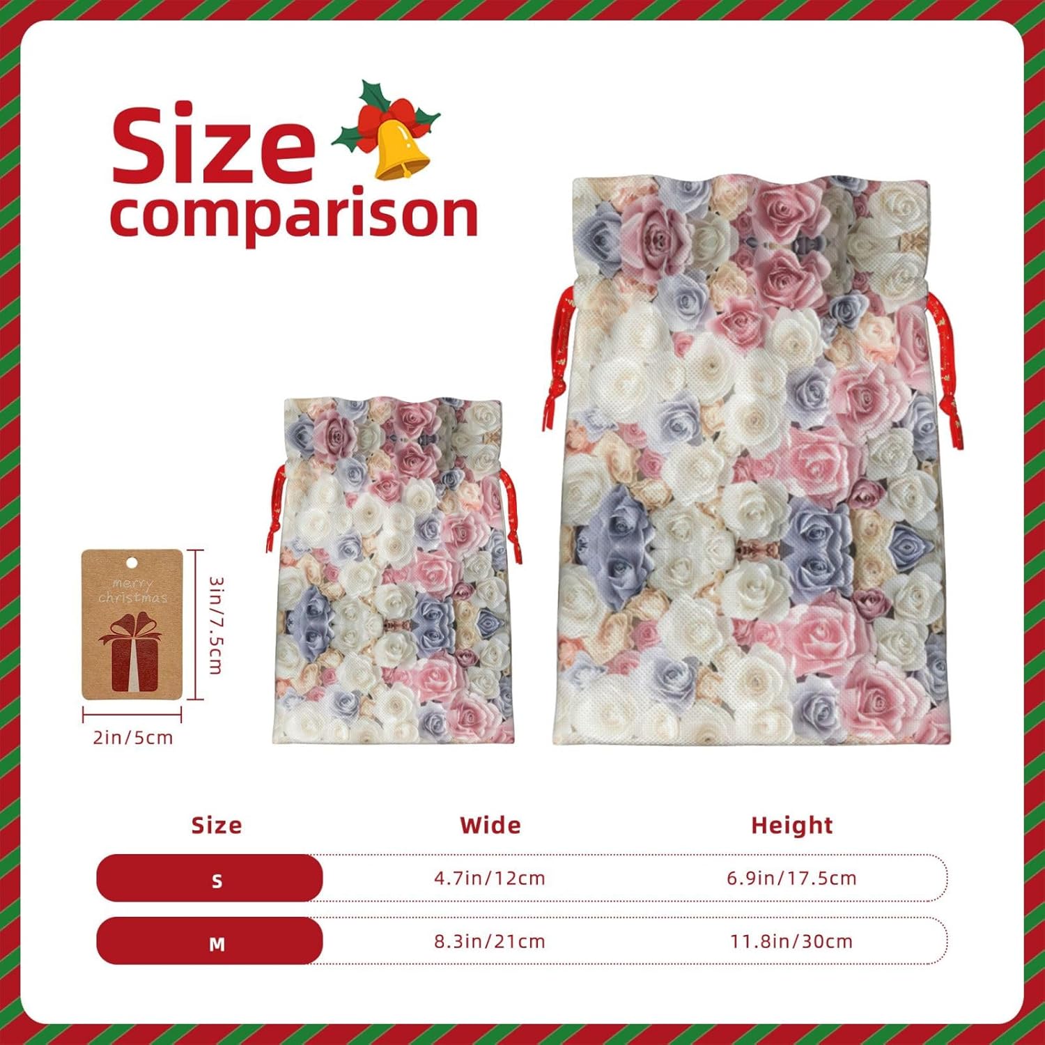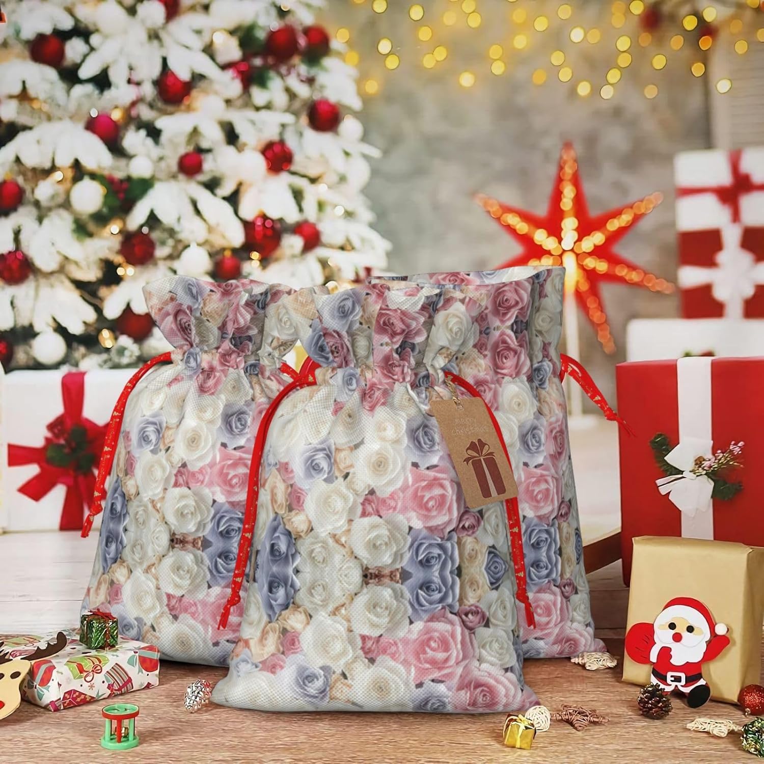 BORSE REGALO DI ALTO VALORE: la borsa con fiori di rosa è dotata di sacchetti regalo con cordoncini colorati ed etichette. I sacchetti regalo sono aggiornati con un design con chiusura a coulisse, sacchetti regalo realizzati in poliestere, resistenti e riutilizzabili. Non si strappano come la carta, ottimi per incartare i regali. 10 secondi per incartare un regalo: il sacchetto con rose floreali per confezionare facilmente i regali, è facile da usare, basta inserire il regalo nei sacchetti, far scorrere l'etichetta regalo attraverso il nastro, tirare il nastro, annodare un fiocco e il gioco è fatto. Puoi evitare il fastidio associato a carta da imballaggio, forbici, nastro adesivo e nastro, risparmiare tempo e molto conveniente. Dimensioni del sacchetto regalo: i sacchetti regalo in 2 dimensioni possono soddisfare le preferenze di diverse persone e sono sufficienti per l'uso quotidiano e la festa di Natale. La S misura 12 x 17,5 cm e la M misura 12 x 30 cm. Sacchetti regalo in formati assortiti sfusi, perfetti per confezionare regali di diverse dimensioni. REGALO NEL REGALO: questi sacchetti regalo floreali con rose possono essere riutilizzati molte volte. Un set di sacchetti regalo riutilizzabili sarà un'aggiunta meravigliosa a qualsiasi regalo e migliorerà l'esperienza complessiva del regalo. Inoltre, abbiamo rinforzato il fondo per una maggiore stabilità e una struttura robusta con carichi pesanti. Non facile da rompere per un uso durevole e duraturo. Sacchetti regalo multifunzionali: questi sacchetti con fiori rosa possono essere utilizzati per conservare regali di Natale, giocattoli, bambole, cappelli di Natale, caramelle e regali durante una festa di Natale. Conservare i regali in questa borsa darà ai bambini più sorprese perché non sanno cosa c'è dentro.