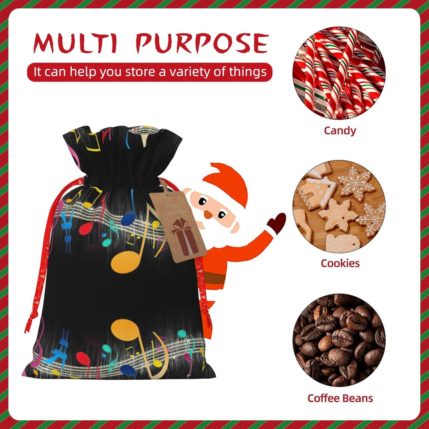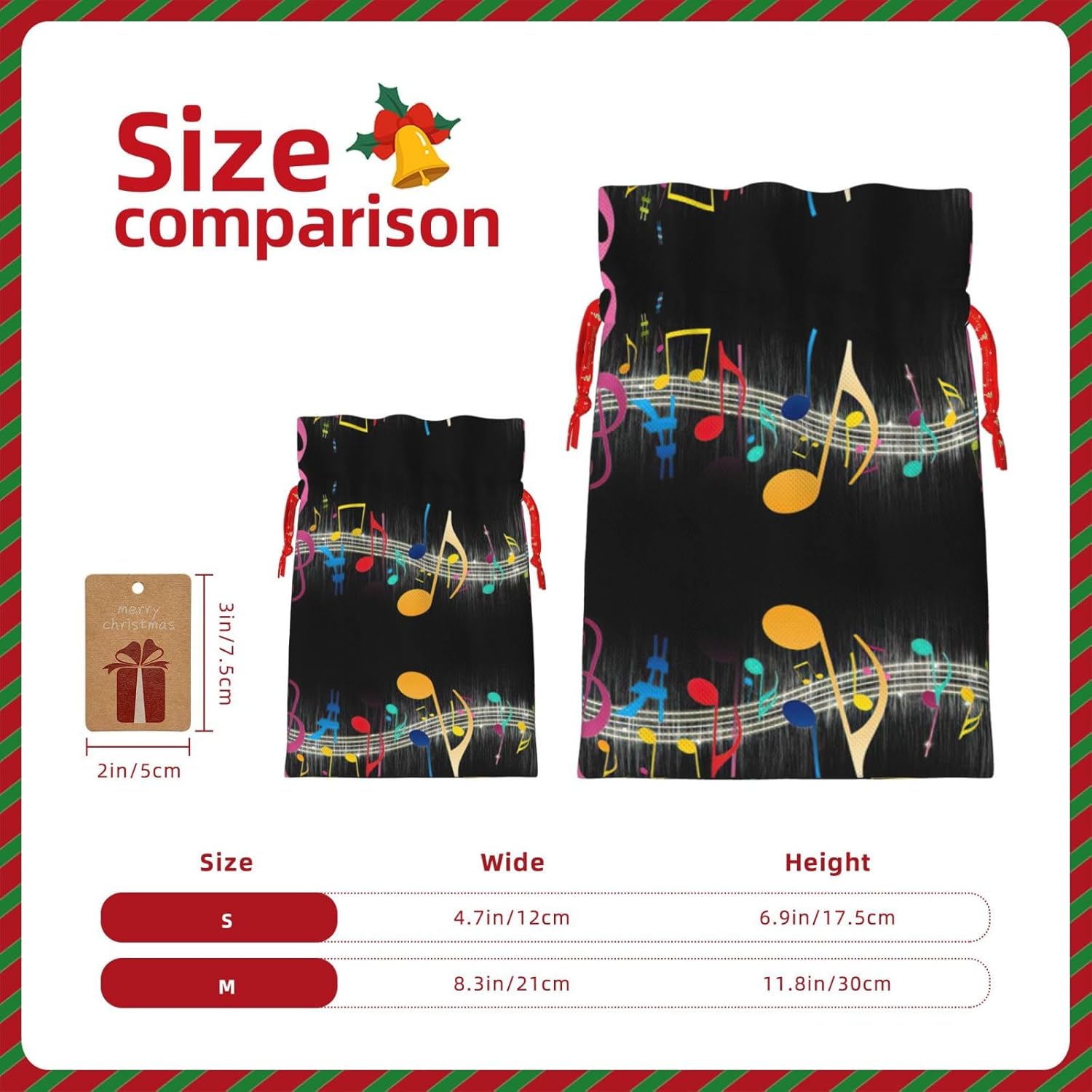 BORSE REGALO DI ALTO VALORE: la borsa colorata per note musicali è dotata di sacchetti regalo con cordoncini colorati ed etichette. I sacchetti regalo sono aggiornati con un design con chiusura a coulisse, sacchetti regalo realizzati in poliestere, resistenti e riutilizzabili. Non si strappano come la carta, ottimi per incartare i regali. 10 secondi per incartare un regalo: il colorato sacchetto per note musicali per confezionare facilmente i regali, è facile da usare, basta inserire il regalo nei sacchetti, far scorrere l'etichetta regalo attraverso il nastro, tirare il nastro, annodare un fiocco e il gioco è fatto. Puoi evitare il fastidio associato a carta da imballaggio, forbici, nastro adesivo e nastro, risparmiare tempo e molto conveniente. Dimensioni del sacchetto regalo: i sacchetti regalo in 2 dimensioni possono soddisfare le preferenze di diverse persone e sono sufficienti per l'uso quotidiano e la festa di Natale. La S misura 12 x 17,5 cm e la M misura 12 x 30 cm. Sacchetti regalo in formati assortiti sfusi, perfetti per confezionare regali di diverse dimensioni. REGALO IDEALE: questi sacchetti regalo colorati con note musicali possono essere riutilizzati molte volte. Un set di sacchetti regalo riutilizzabili sarà un'aggiunta meravigliosa a qualsiasi regalo e migliorerà l'esperienza complessiva del regalo. Inoltre, abbiamo rinforzato il fondo per una maggiore stabilità e una struttura robusta con carichi pesanti. Non facile da rompere per un uso durevole e duraturo. Sacchetti regalo multifunzionali: questi colorati sacchetti regalo di Natale possono essere utilizzati per conservare regali di Natale, giocattoli, bambole, cappelli di Natale, caramelle e regali durante una festa di Natale. Conservare i regali in questa borsa darà ai bambini più sorprese perché non sanno cosa c'è dentro.