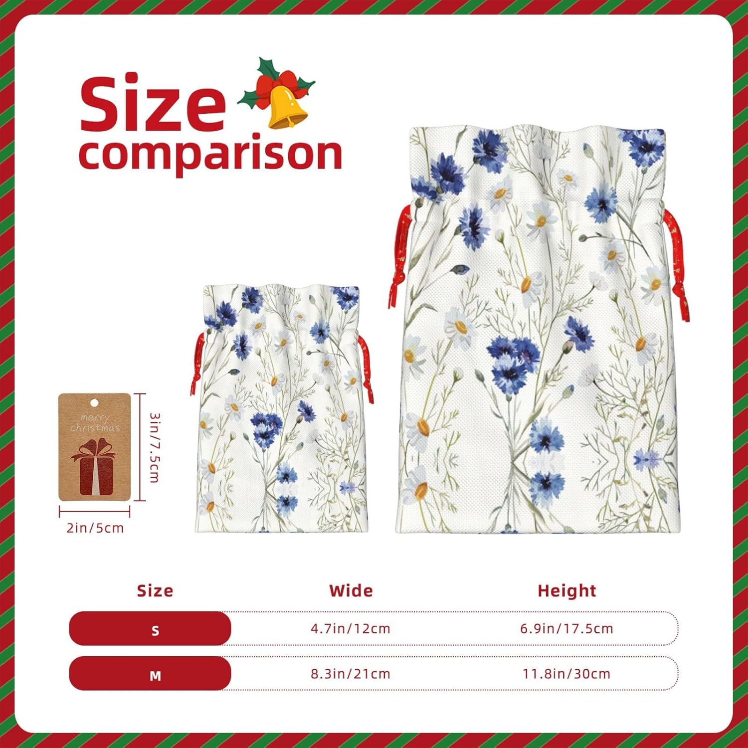 BORSE REGALO DI ALTO VALORE: la borsa con fiori e margherite è dotata di sacchetti regalo con cordoncini colorati ed etichette. I sacchetti regalo sono aggiornati con un design con chiusura a coulisse, sacchetti regalo realizzati in poliestere, resistenti e riutilizzabili. Non si strappano come la carta, ottimi per incartare i regali. 10 secondi per incartare un regalo: il sacchetto con fiori e margherite per incartare facilmente i regali, è facile da usare, basta inserire il regalo nei sacchetti, far scorrere l'etichetta regalo attraverso il nastro, tirare il nastro, annodare un fiocco e il gioco è fatto. Puoi evitare il fastidio associato a carta da imballaggio, forbici, nastro adesivo e nastro, risparmiare tempo e molto conveniente. Dimensioni del sacchetto regalo: i sacchetti regalo in 2 dimensioni possono soddisfare le preferenze di diverse persone e sono sufficienti per l'uso quotidiano e la festa di Natale. La S misura 12 x 17,5 cm e la M misura 12 x 30 cm. Sacchetti regalo in formati assortiti sfusi, perfetti per confezionare regali di diverse dimensioni. REGALO IDEALE: questi sacchetti regalo con fiori e margherite possono essere riutilizzati molte volte. Un set di sacchetti regalo riutilizzabili sarà un'aggiunta meravigliosa a qualsiasi regalo e migliorerà l'esperienza complessiva del regalo. Inoltre, abbiamo rinforzato il fondo per una maggiore stabilità e una struttura robusta con carichi pesanti. Non facile da rompere per un uso durevole e duraturo. Sacchetti regalo multifunzionali: questi sacchetti regalo natalizi con fiori e margherite possono essere utilizzati per conservare regali di Natale, giocattoli, bambole, cappelli natalizi, caramelle e regali durante una festa di Natale. Conservare i regali in questa borsa darà ai bambini più sorprese perché non sanno cosa c'è dentro.