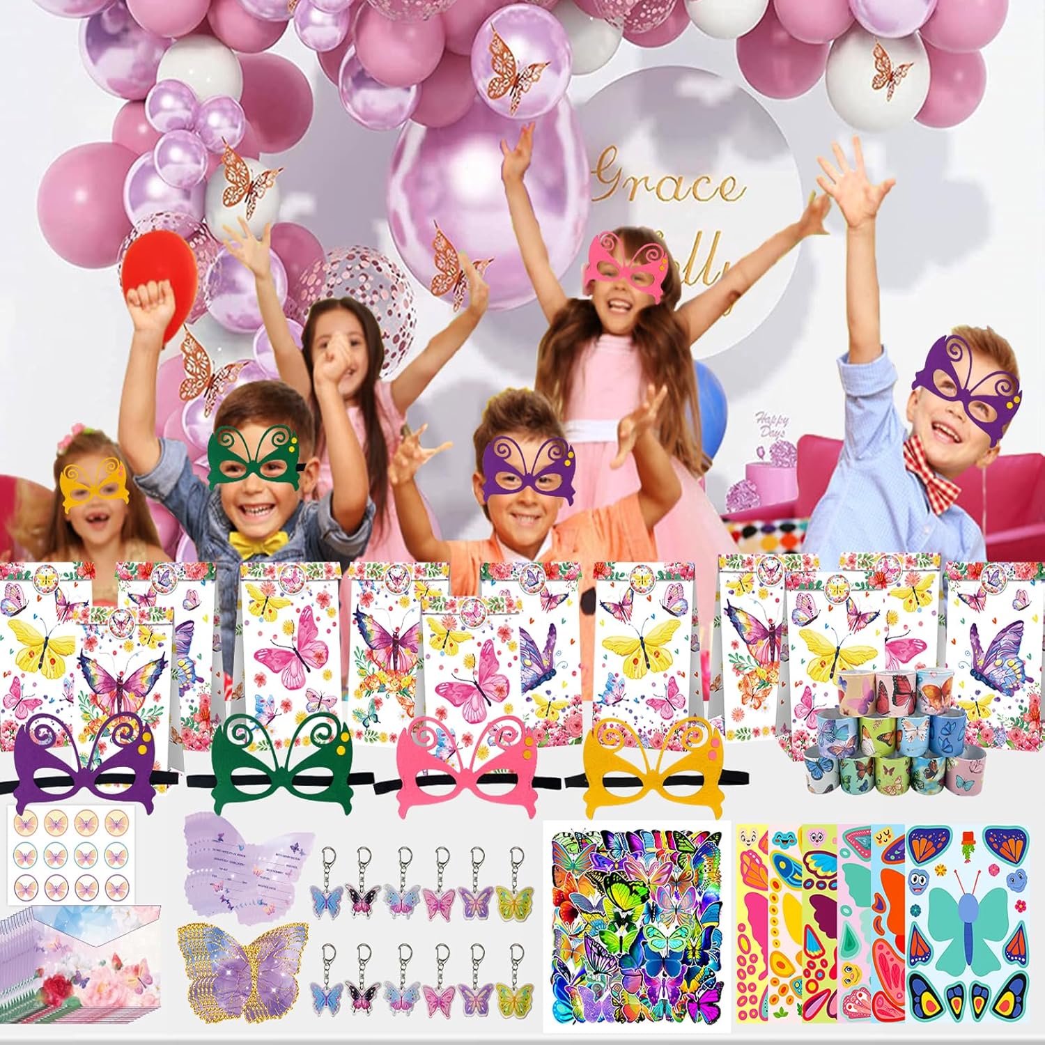 🦋【Borse da festa con farfalle】12 sacchetti regalo con farfalle, 12 portachiavi con farfalle, 12 adesivi con farfalle fai-da-te, 12 braccialetti con chiusura a farfalla, 12 maschere, 12 biglietti d'invito con farfalle + busta, 50 adesivi con farfalle. Il sacchetto per le feste è sufficiente per intrattenere 12 bambini e regalare ai tuoi bambini e ai loro amici una meravigliosa festa con farfalle. 🦋 【Borse per feste con farfalle per il compleanno dei bambini】 Il nostro set di borse per feste con farfalle è realizzato con materiali di alta qualità come carta, plastica e metallo per garantire il comfort dei bambini. Questo set di farfalle per decorazioni di compleanno è perfetto per feste di compleanno di ragazze, feste per bambini, feste di principesse, feste di farfalle, feste estive e primaverili. 🦋【Giocattoli con farfalle】Le nostre decorazioni di compleanno per bambini con farfalle sono perfette per stimolare l'immaginazione e la creatività dei bambini. Puoi anche realizzare adesivi farfalla fai-da-te unici con i tuoi bambini e goderti un meraviglioso momento genitore-figlio. Naturalmente, questo è anche un regalo perfetto per i bambini che vanno a scuola, all'aperto o a fare escursioni. 🦋【Regali con farfalle】Le ragazze regalo con farfalle fai-da-te possono promuovere la creatività e le abilità pratiche dei bambini. Sono molto adatti per ragazze e ragazzi a cui piace dipingere e fare mestieri da soli. Sono regali di farfalle adatti per ragazze di 4, 5, 6, 7, 8, 9, 10, 11 e 12 anni. Sono un ottimo regalo per compleanni, Natale, Ringraziamento, Pasqua, Festa dei bambini, rientro a scuola, diploma di scuola elementare, San Valentino, ecc. 🦋【Servizio】Siamo specializzati in set di decorazioni per compleanni, il che significa che otterrai una qualità migliore. Se c'è un problema con il sacchetto delle feste che hai ricevuto, ad es. mancante/danneggiato ecc., contattaci e lo rimborseremo o lo sostituiremo immediatamente
