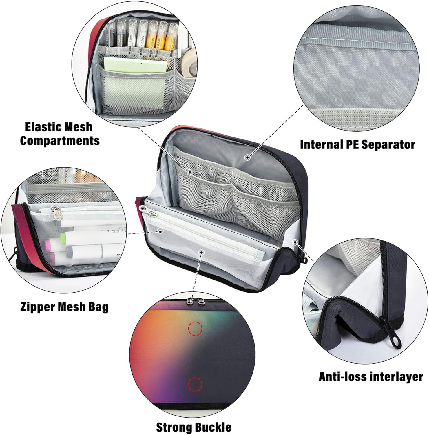 Design intelligente della struttura: l'organizer per matite scolastiche si trasforma in un supporto con chiusura magnetica quando piegato, offrendo una visione chiara e un facile accesso alle tue forniture Qualità che puoi sentire: il nylon resistente conferisce alla custodia con cerniera una struttura leggera ma resistente, mantenendo il contenuto al sicuro rendendo la pulizia semplice e senza problemi Design versatile con scomparti: l'astuccio estetico ti aiuta a rimanere organizzato con un interno spazioso con aree distinte per tutti i tuoi articoli di cancelleria, strumenti o cosmetici Ideale per varie impostazioni: utilizza l'organizzazione e lo stoccaggio in aula per riporre oggetti artistici, oggetti personali o strumenti da ufficio, ideale per studenti, pendolari, artisti o chiunque sia in viaggio Elegante e personalizzato: l'astuccio estetico si distingue per stampe divertenti e caratteristiche personalizzabili, rendendolo adatto per regali premurosi in ogni occasione