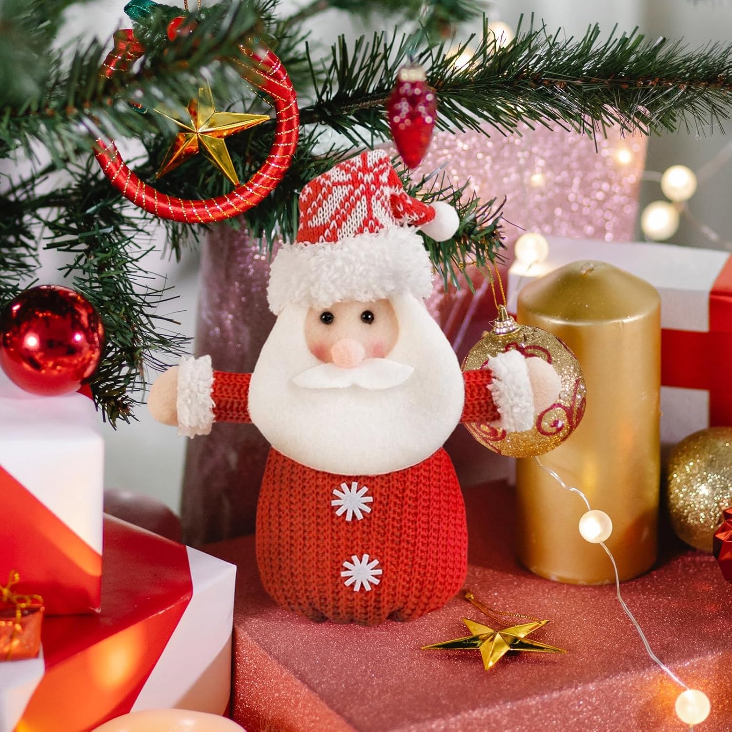 Design salvaspazio: questa borsa per bambole di Natale offre spazio di archiviazione ottimizzato grazie alle sue dimensioni compatte e chiusura con coulisse per organizzare più facilmente gli oggetti con opzioni di posizionamento flessibili in qualsiasi stanza. Design a maglia ecologico: materiale ecologico che conferisce a queste borse per bambole una qualità duratura. Miglioreranno le tue celebrazioni natalizie per anni senza compromettere lo stile o la praticità di conservazione delle decorazioni natalizie. Sacchetti di caramelle riutilizzabili: migliora la tua esperienza natalizia con comodi sacchetti per caramelle e regali. Consente interazioni divertenti, offre un'alternativa sostenibile alle borse usa e getta con una lunga durata. Compagno sicuro per le vacanze: dotate di bordi morbidi e struttura a prova di bambino, queste borse per bambole sono il regalo di Natale perfetto. Offrono ai bambini un modo sicuro e coinvolgente per giocare in modo fantasioso. Ciò renderà ogni occasione festiva più creativa ed emozionante durante tutto l'anno. Amplificatore dell'atmosfera natalizia: con colori classici e Babbo Natale o disegni affascinanti, il look lavorato a maglia esalta l'atmosfera festosa – un must per la decorazione natalizia.