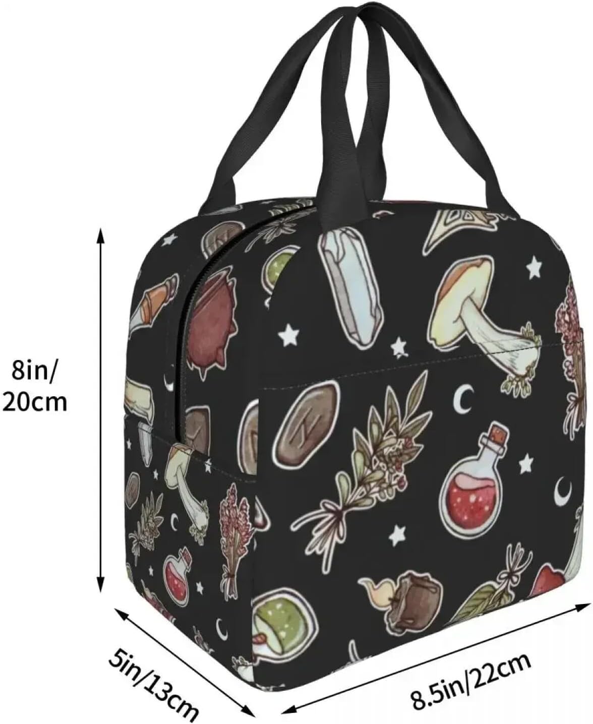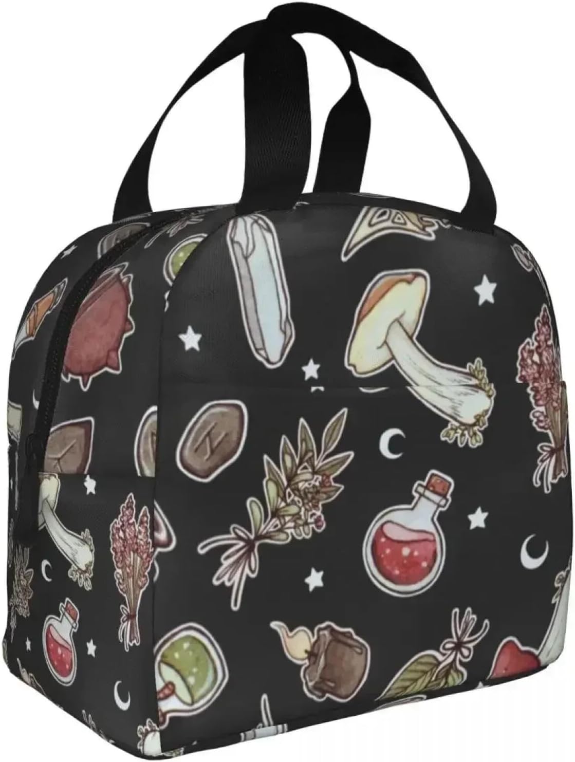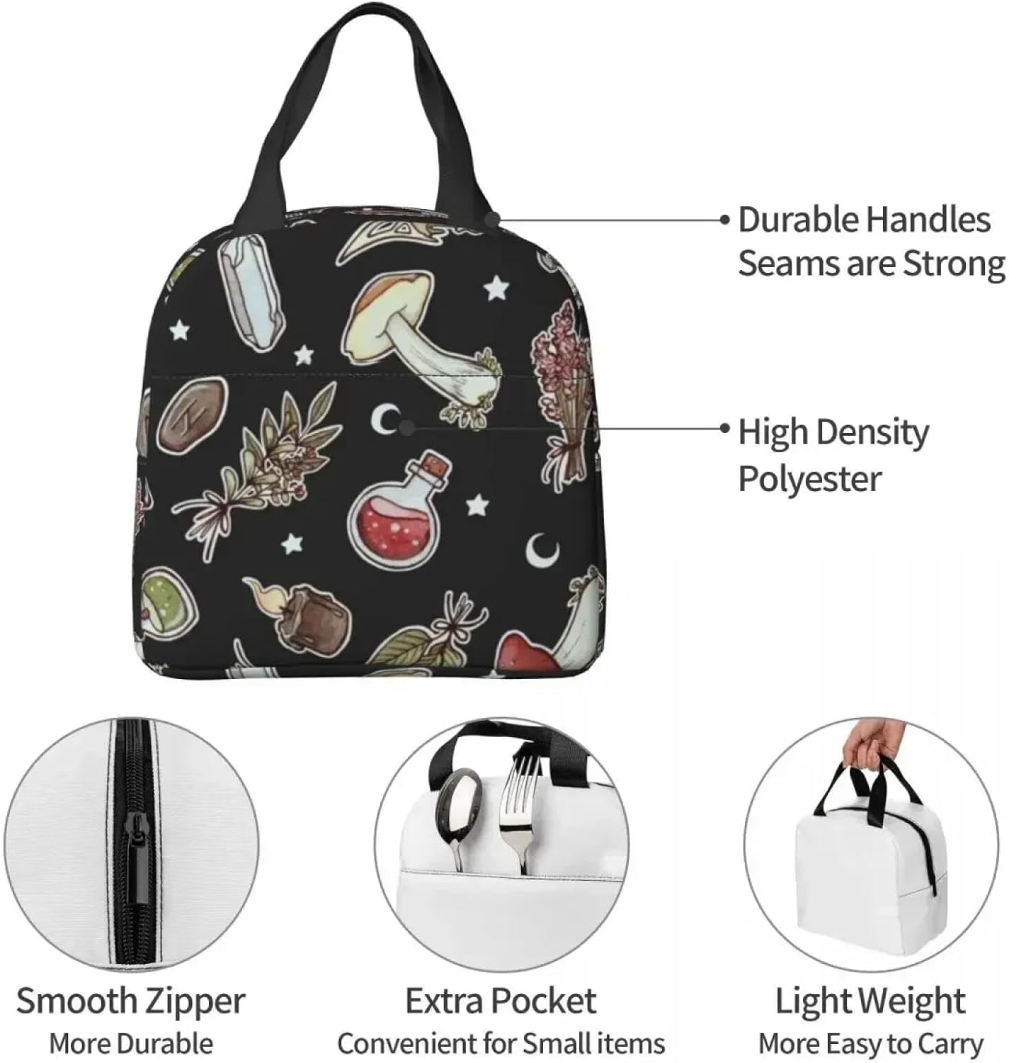 Borse per Il Pranzo per Le Donne Bambini Witchy Pattern Dark Mushroom Thermal Cooler Scuola Portatile Psichedelico Oxford Tote Food Bag