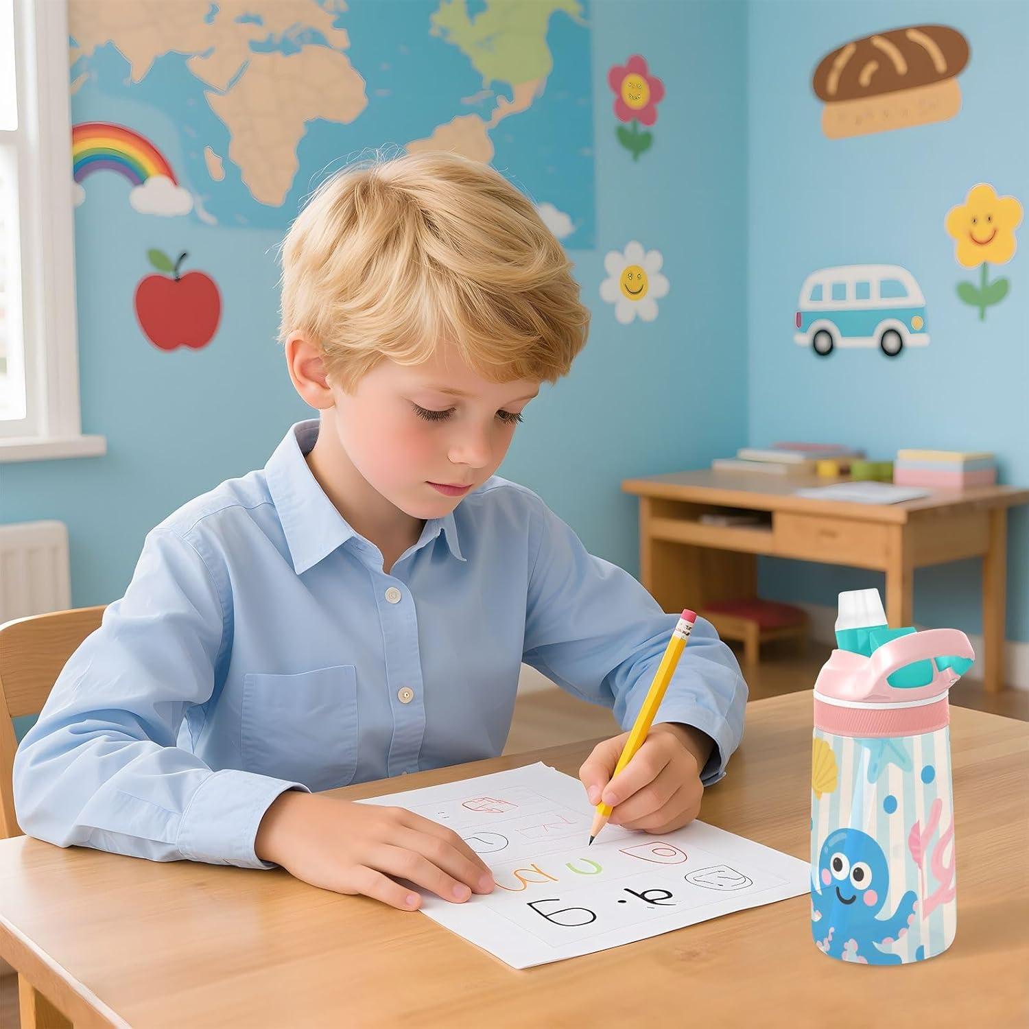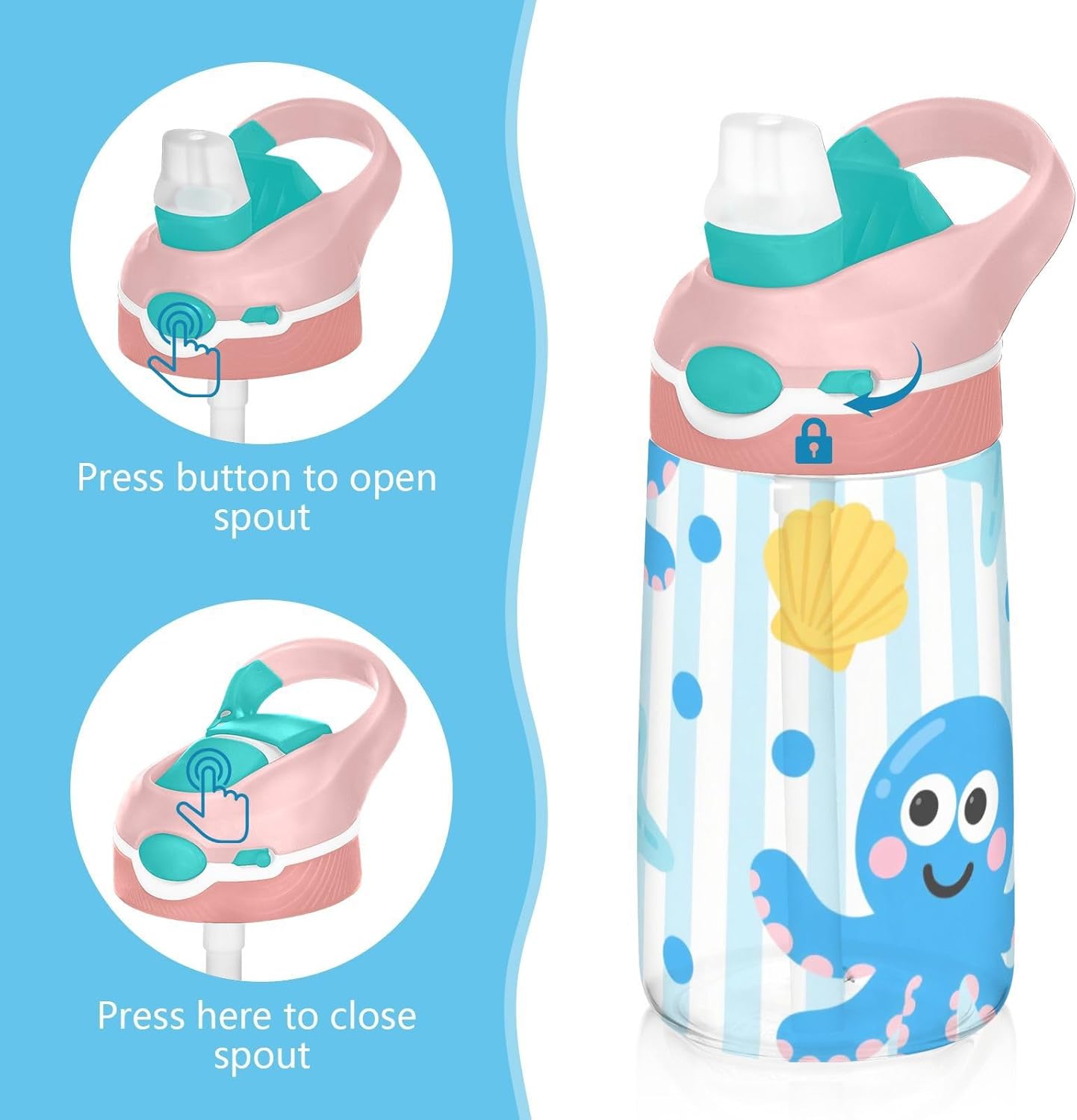 Materiali di qualità: le borracce sportive (16 x 7,5 cm) utilizzano tritan e silicone alimentare. Ideale per pratica sportiva o picnic. Non adatta a bambini di età inferiore ai 3 anni Comoda da trasportare: con un ampio manico per mani piccole e un gancio sul coperchio, la borraccia per bambini può essere appesa agli zaini. I bambini non faranno fatica a trasportarla durante le gite sul campo o le attività post-scuola. Funzionamento con una sola mano: il becco d'anatra si adatta alla bocca dei bambini, con una copertura antipolvere. L'interruttore a pulsante delle bottiglie d'acqua sportive è semplice da usare con una sola mano, in modo che i bambini possano bere mentre tengono una palla o un notebook. Blocco per evitare fuoriuscite: il pulsante di blocco della borraccia sportiva impedisce al becco d'anatra di fuoriuscire per errore. Niente più fuoriuscite negli zaini, mantenendo il pranzo e i libri asciutti. Pulizia semplice: le parti completamente rimovibili evitano l'accumulo di sporco. Pulire con detergente neutro e acqua calda: facile per i genitori mantenere pulita la borraccia sportiva per l'uso quotidiano.