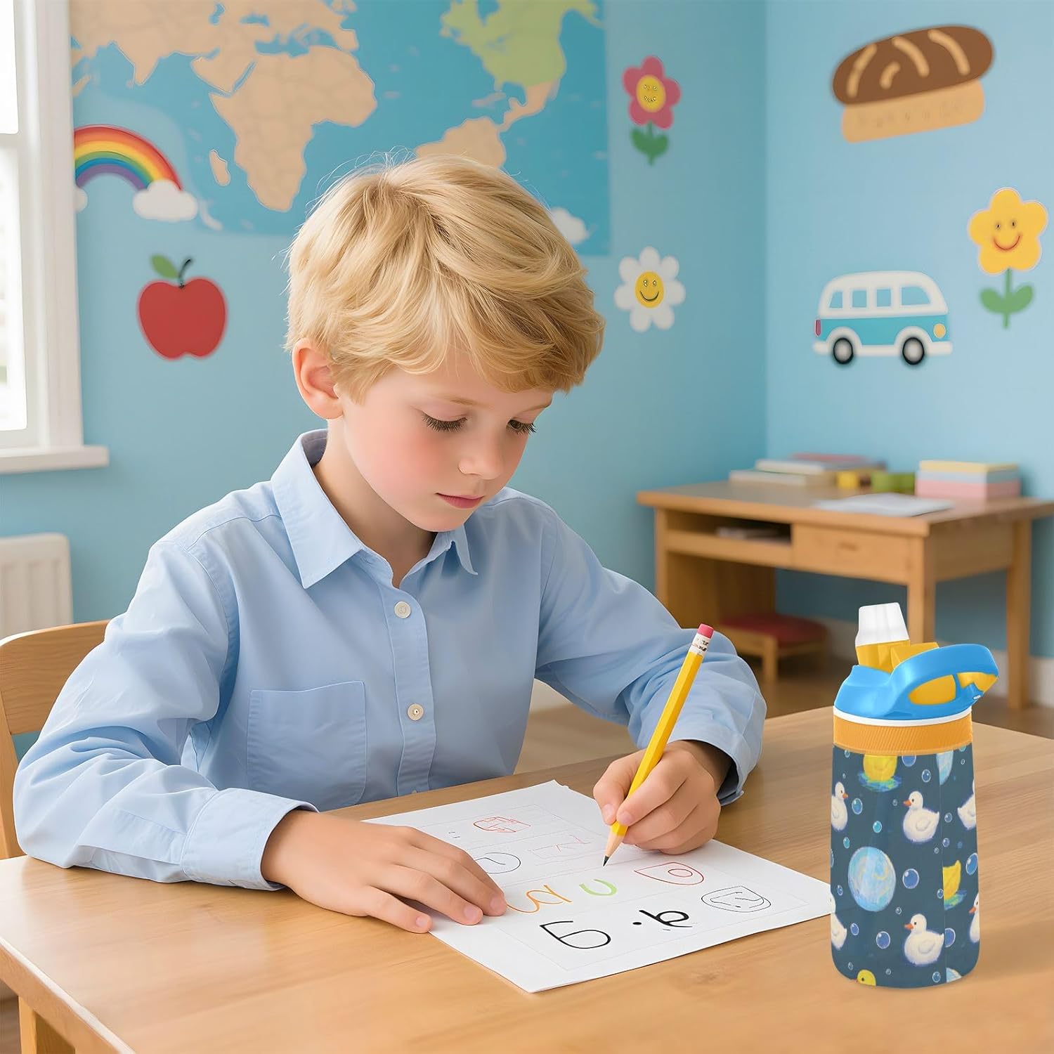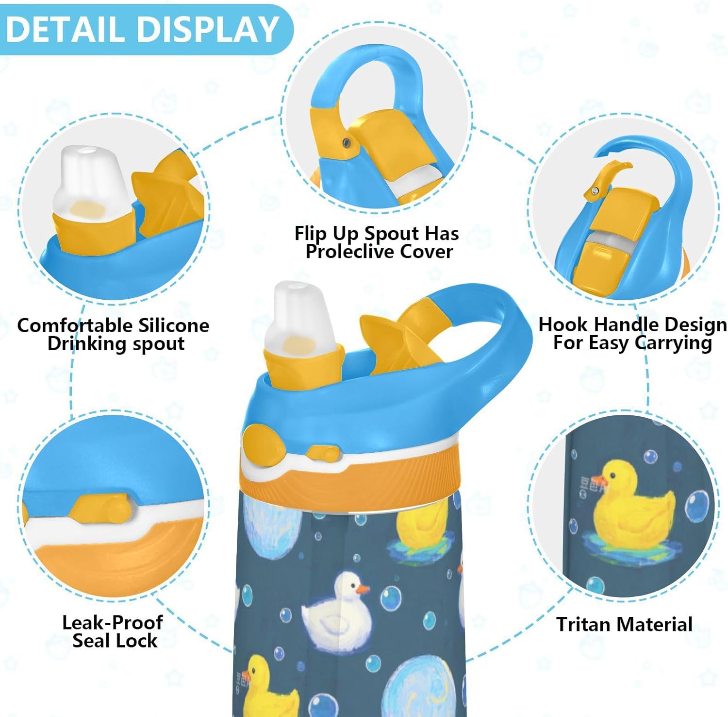 Materiale di sicurezza: il corpo in Tritan e il beccuccio in silicone alimentare garantiscono durata e sicurezza. Contiene 480 ml di acqua, perfetto per l'idratazione quotidiana. Non adatto a bambini di età inferiore ai 3 anni Design portatile: l'ampio manico e il gancio per coperchio rendono la borraccia per bambini facile da trasportare. I bambini possono appenderlo alle loro borse, evitando il fastidio di cadere durante la ricreazione o i viaggi in autobus. Funzionamento amichevole: il becco d'anatra si adatta bene, con una copertura antipolvere. L'interruttore a pulsante della borraccia per bambini consente l'uso con una sola mano, in modo che i bambini possano idratarsi senza mettere giù i loro giocattoli o attrezzi sportivi. Previene le perdite: il blocco a pulsante blocca l'apertura accidentale del becco d'anatra. Mantiene le bevande all'interno, proteggendo zaini e vestiti durante i pendolari o il gioco. Facile da pulire: tutte le parti delle borracce sportive possono essere smontate per evitare l'accumulo di sporco. Pulire con detergente neutro e acqua calda.