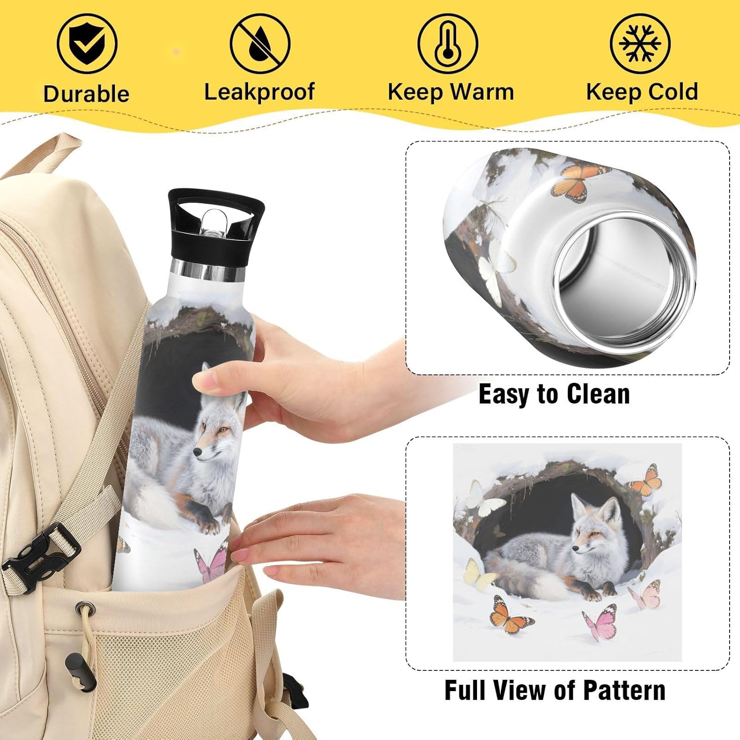 Isolamento premium: questa borraccia presenta una struttura sottovuoto a doppia parete. Lo strato esterno in acciaio inox per uso alimentare e il rivestimento interno con uno strato termoisolante e blocco sottovuoto offrono una grande ritenzione di calore e freddo. Dite addio alle bevande tiepide! Coperchio versatile 2 in 1: dotato di una cannuccia per sorseggiare facilmente e di un beccuccio per versare o sbuffare senza sforzo; semplifica l'accesso alle bevande sia che si tratti di un caffè caldo o di una bevanda fredda. Design del coperchio: l'esclusiva valvola di rilascio dell'aria consente un flusso regolare durante le corse intense, senza scomode inclinazioni o rischi di soffocamento. Ideale per le pause di idratazione durante le lezioni Grande capacità: con una grande capacità di 590 ml, questa borraccia è perfetta per rimanere idratati durante lunghi allenamenti o attività all'aperto. Leggero e portatile: viene fornito con una maniglia per un facile fissaggio. Il design sottile si adatta alla maggior parte delle tasche delle borse e dei portabicchieri. Porta questa borraccia termica sportiva ovunque per rimanere idratato.