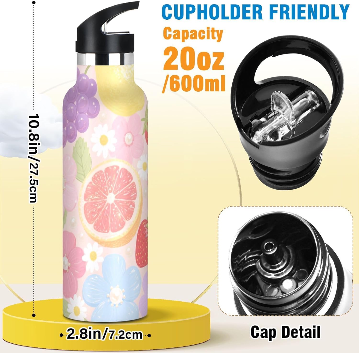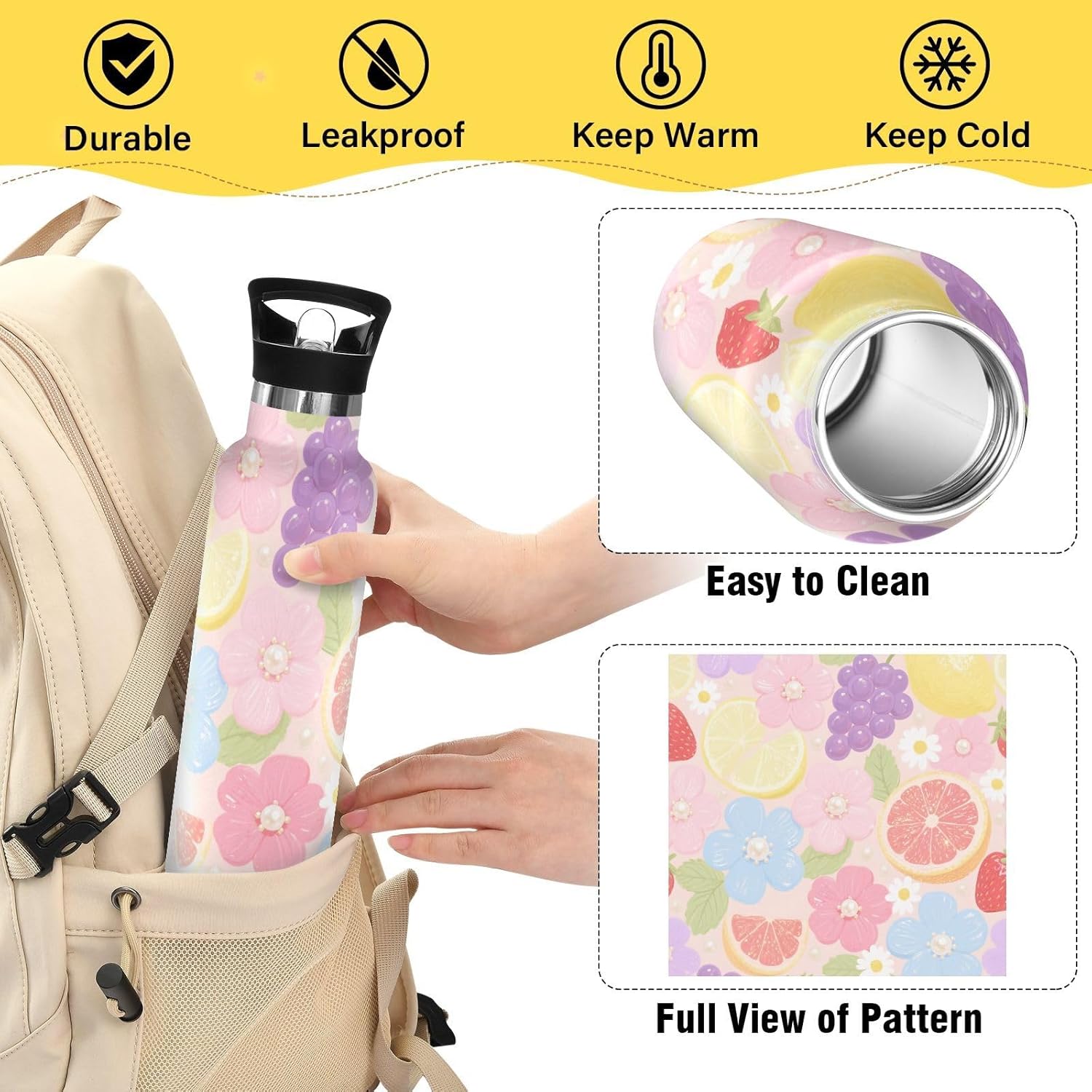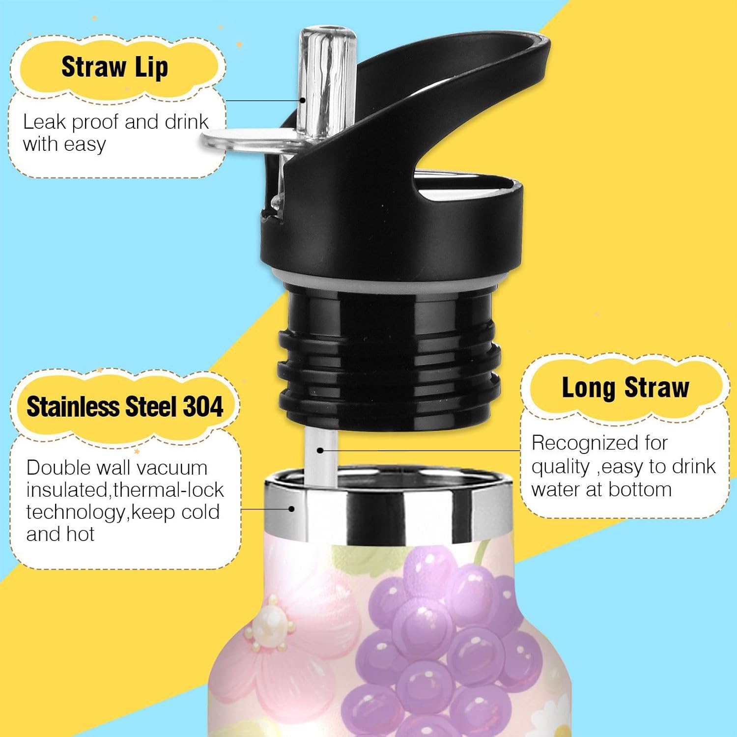 Resistenza isolata sottovuoto: realizzata con acciaio inossidabile a doppio strato e tecnologia sottovuoto, questa borraccia termica sportiva mantiene le bevande ghiacciate per 24 ore o calde per 12 ore, perfetta per maratone, escursioni o giornate impegnative in ufficio. Dite addio all'acqua tiepida durante gli allenamenti! Coperchio 2 in 1: i due coperchi possono essere cambiati in qualsiasi momento: la cannuccia per sorseggiare facilmente o un coperchio girevole per una rapida idratazione. A tenuta stagna Avventura Ready: meccanismo Twist-lock e guarnizioni in silicone rinforzato impediscono fuoriuscite anche capovolte negli zaini. Affidati per gite in kayak o metropolitane affollate. Grande capacità: con una grande capacità di 590 ml, questa borraccia per bambini è perfetta per rimanere idratati durante lunghi allenamenti o attività all'aperto. Dimensione perfetta per viaggiare: questa borraccia termica sportiva si adatta alla maggior parte dei portabicchieri e alla tasca laterale di uno zaino. Comodo da portare in giro con un manico ergonomico a bordo largo. È ideale da portare a scuola, palestra, campeggio o viaggi su strada.