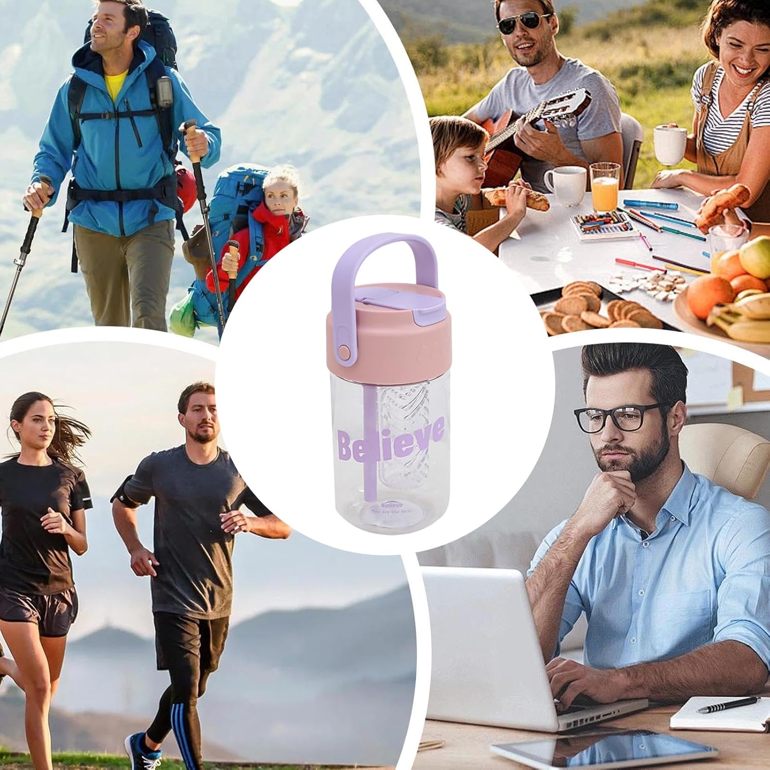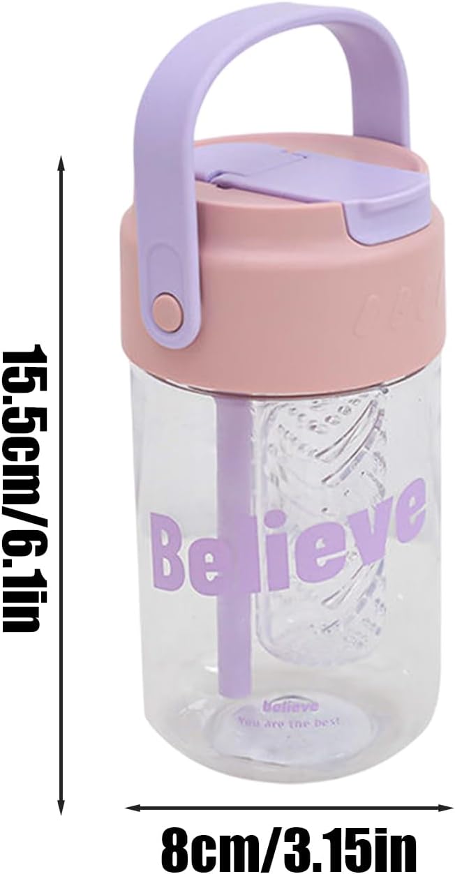 Grande capacità: con una capacità di 600 ml, questa tazza con cannuccia è adatta per l'uso quotidiano, il fitness, i viaggi e altre occasioni, garantendoti di soddisfare il tuo fabbisogno idrico durante il giorno. Facile da trasportare: dotata di un comodo design con maniglia, questa bottiglia d'acqua è facile da trasportare in palestra, al lavoro o nelle attività all'aperto, consentendo ai bambini di riempire l'acqua in qualsiasi momento. La tazza è facile da trasportare e offre un'eccellente portabilità. Garanzia a prova di perdite: proteggi i tuoi effetti personali dai danni causati dall'umidità con la struttura a prova di perdite della nostra bottiglia d'acqua per bambini. Non devi preoccuparti di perdite durante il trasporto poiché il design infallibile garantisce che non ci siano fuoriuscite. Accessori per bere alla moda: con una combinazione di colori armoniosa e un design della tazza alla moda, questa bottiglia d'acqua è l'accessorio di moda perfetto per chiunque voglia aggiungere un po' di stile alla propria vita quotidiana. L'allegro disegno del testo sulla parte anteriore promuove un atteggiamento positivo nei confronti della vita. Facile da pulire: elimina l'accumulo di sostanze nocive con la cannuccia rimovibile e il coperchio della tazza di questa bottiglia d'acqua per bambini, facilitando la pulizia e garantendo acqua potabile sicura e igienica per i bambini