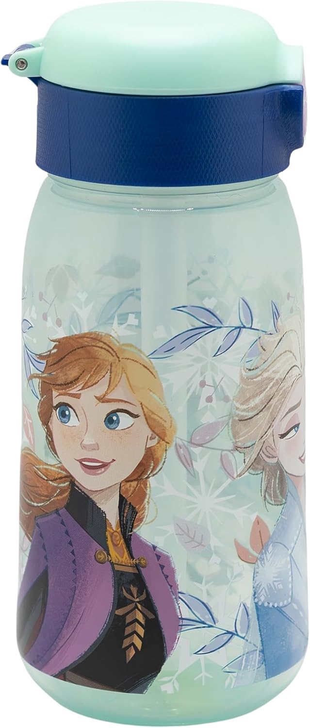 Botella de agua reutilizable de plástico, decorada con diseños basados en las principales licencias. Dispone de una práctica pajita para facilitar su uso y tiene tapón con botón que evitará derrames y salpicaduras accidentales. - Capacidad: 510 ml - Tapón anti goteo con botón y pajita incorporada - Libre de BPA
