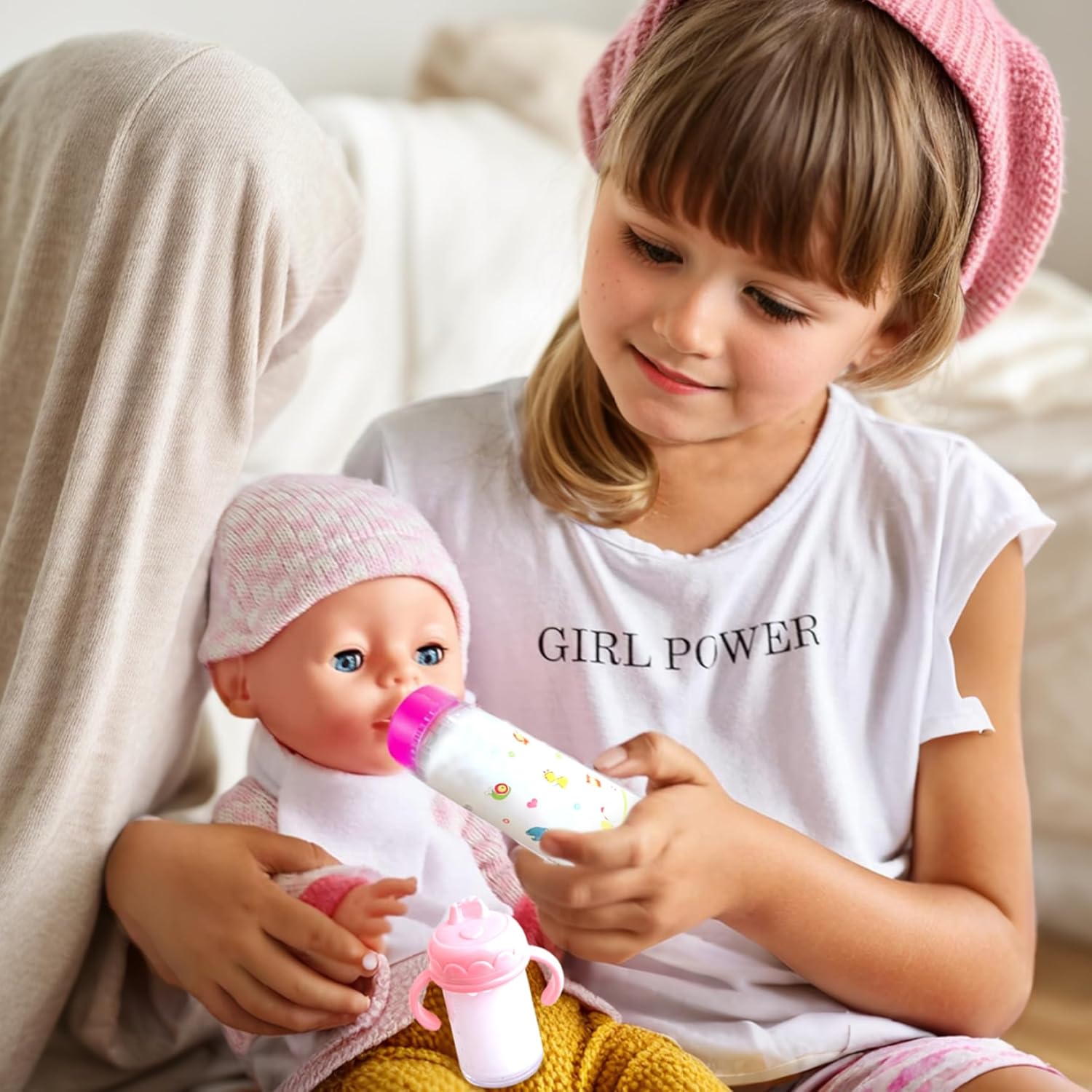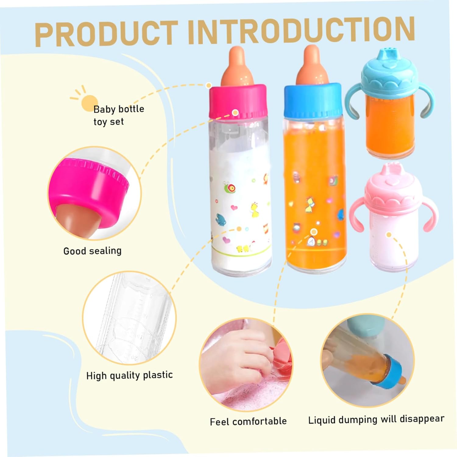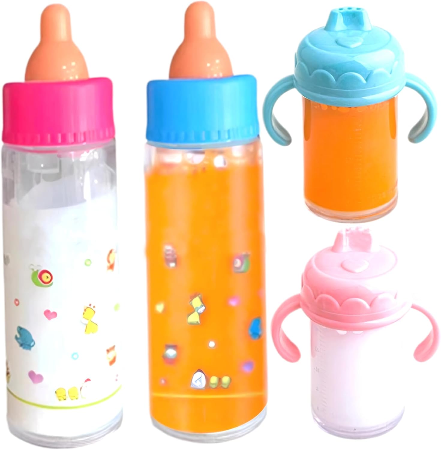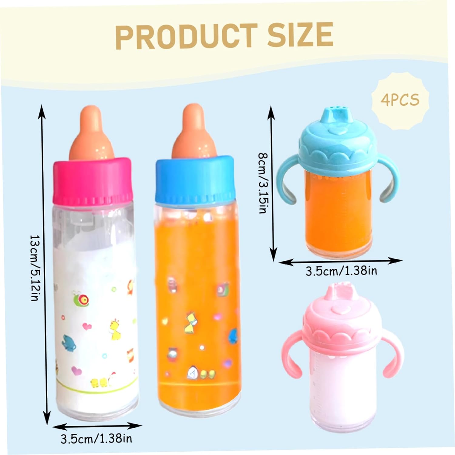 Materiale sicuro: realizzati con materiale PP non tossico, queste bottiglie di bambole per bambini sono sicure per i bambini e costruite per durare, dando ai genitori tranquillità mentre incoraggiano il gioco immaginativo. Esperienza di gioco realistica: queste bottiglie di bambole per bambini sono progettate per imitare l'azione di bere della vita reale..Mentre inclini la bottiglia, il succo o il latte all'interno scompare, creando un'esperienza realistica per tuo figlio..Se posizionato in posizione verticale, il liquido riappare magicamente, aggiungendo elementi di sorpresa al tempo di gioco. Set completo: il set include 2 bottiglie regolari con stampe carine casuali e 2 bottiglie con manici, rendendolo perfetto per la condivisione con fratelli o amici..Questi diversi design migliorano il divertimento e mantengono i bambini impegnati. Opzioni di gioco versatili: queste bottiglie sono ideali per una varietà di scenari, dalle bambole nutritive a scherzi giocosi, rendendole un eccellente che incoraggia la creatività e il divertimento senza fine. Dimensioni perfette per piccole mani: le bottiglie sono appositamente progettate per le mani piccole, con doppie maniglie per le orecchie che le rendono facili da tenere, perfette per le attività di gioco e di gioco di ruolo.