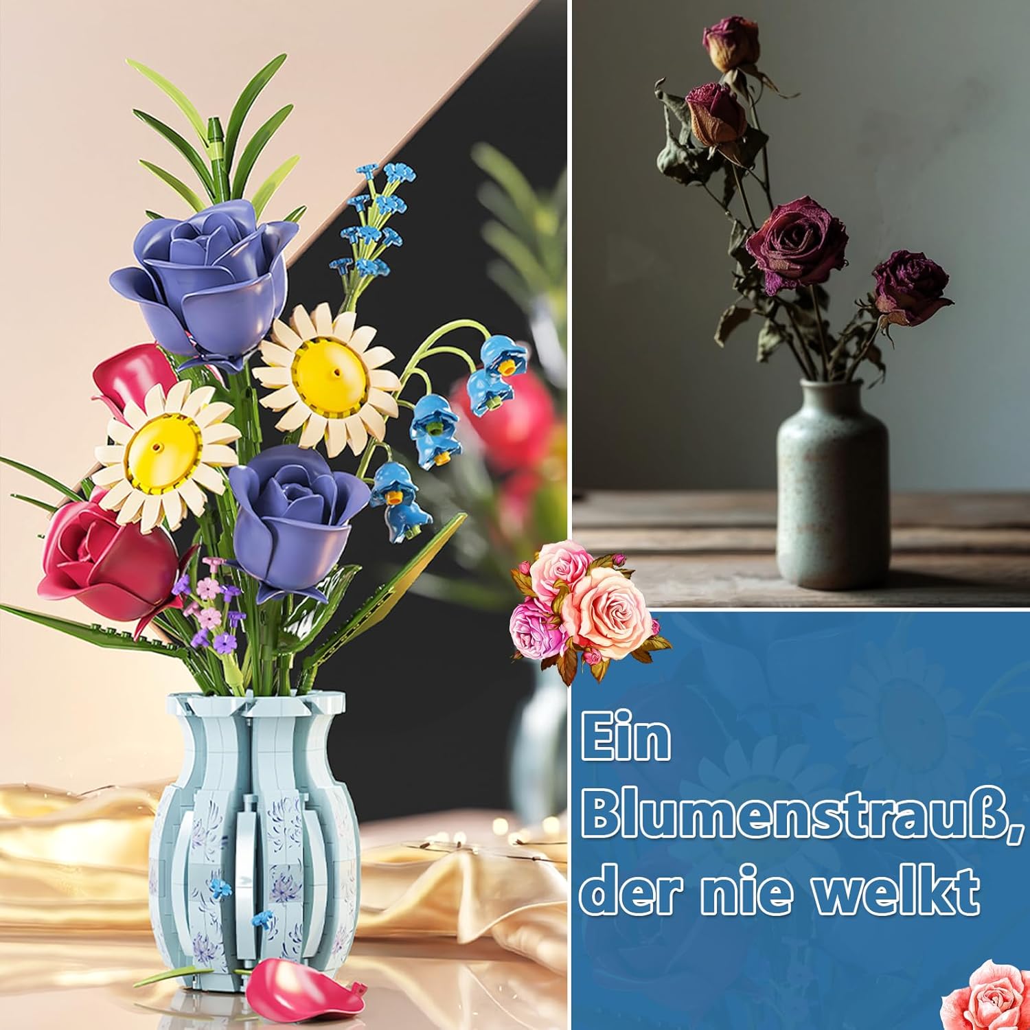 Scatena la tua creatività con il bouquet di mattoncini fai da te: crea bellissimi bouquet fai da te con rose, girasoli e mughetti. Ogni fiore è progettato con dettagli realistici e squisiti per soddisfare le tue esigenze artistiche floreali. 【Vaso in stile porcellana】 A differenza della maggior parte dei bouquet in mattoni, questo set include un esclusivo vaso in stile porcellana, che ti consente di disporre i fiori come un fiorista professionista. Il bouquet trasuda eleganza e raffinatezza. Include istruzioni dettagliate ed è perfetto per attività familiari e attività con bambini. 【Materiali di alta qualità, durevoli e durevoli】 Realizzato in materiale ABS di alta qualità, questo set botanico è robusto, durevole e resistente allo sbiadimento. Senza sbavature e antideformazione, è ideale per adulti, adolescenti, fidanzate, mamme, ragazzi e ragazze dai 12 anni in su. 【Fiori decorativi per la casa】 Questo set floreale dona colore e vitalità alla tua casa o al tuo ufficio, garantendo una bellezza duratura. Nessun appassimento: questi fiori eterni diventeranno un elemento decorativo unico e affascinante. 【Un regalo ideale con sentimenti sinceri】 Questo set fai-da-te è un regalo perfetto per i tuoi amici, familiari o persone care, ideale per occasioni come la festa della mamma, San Valentino, fidanzamento, matrimonio, compleanno, Natale, ecc. Con una confezione elegante e un design unico, è un regalo premuroso che esprime desideri sinceri.