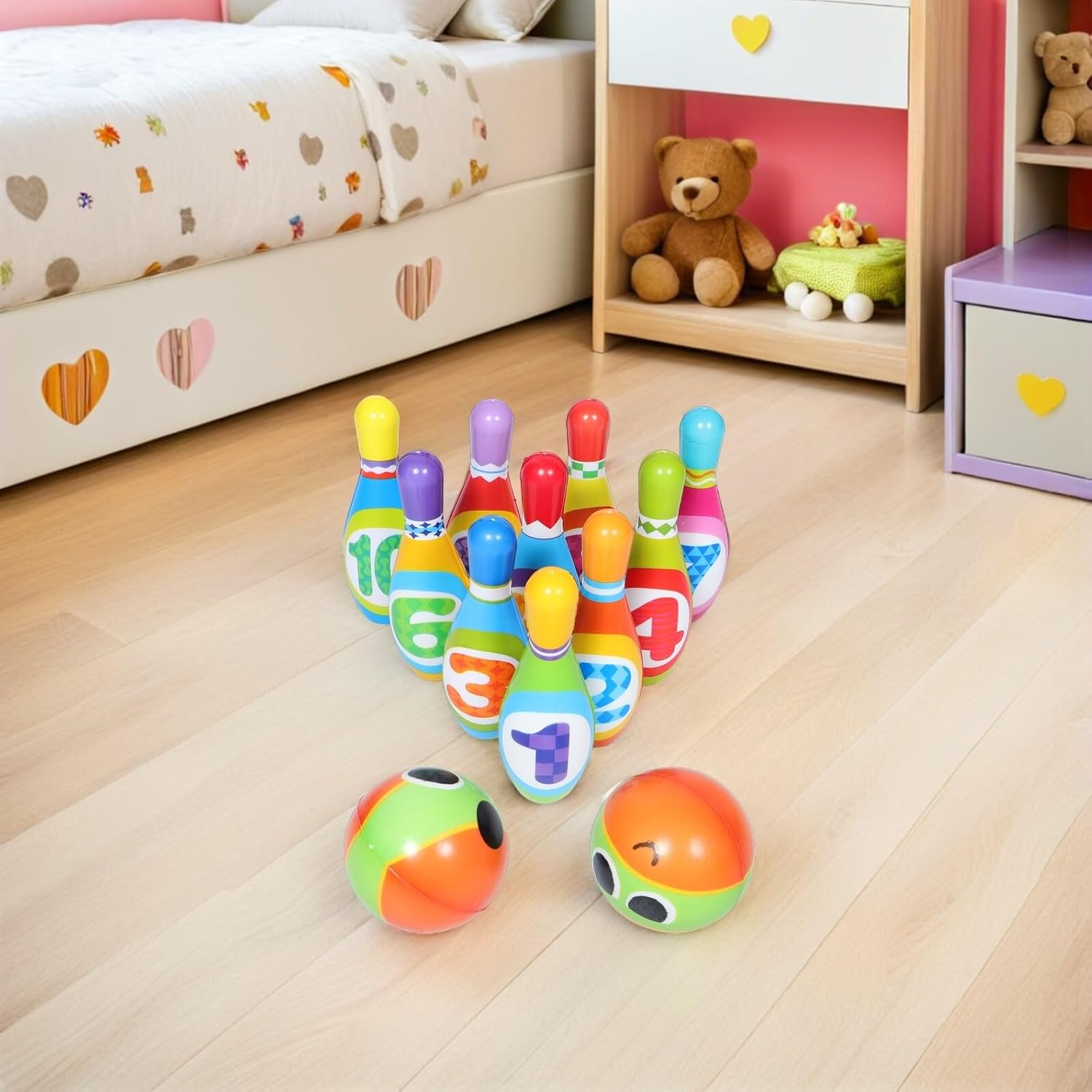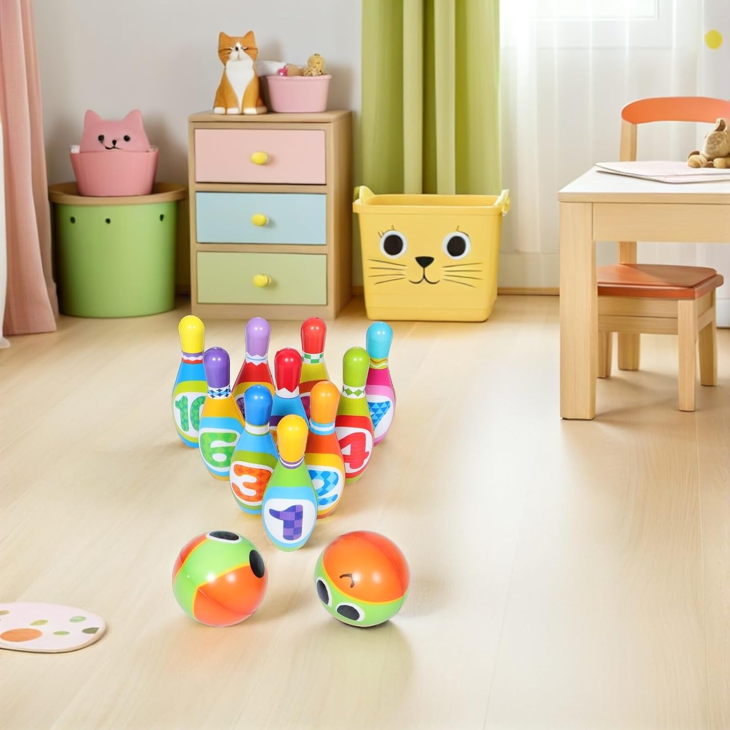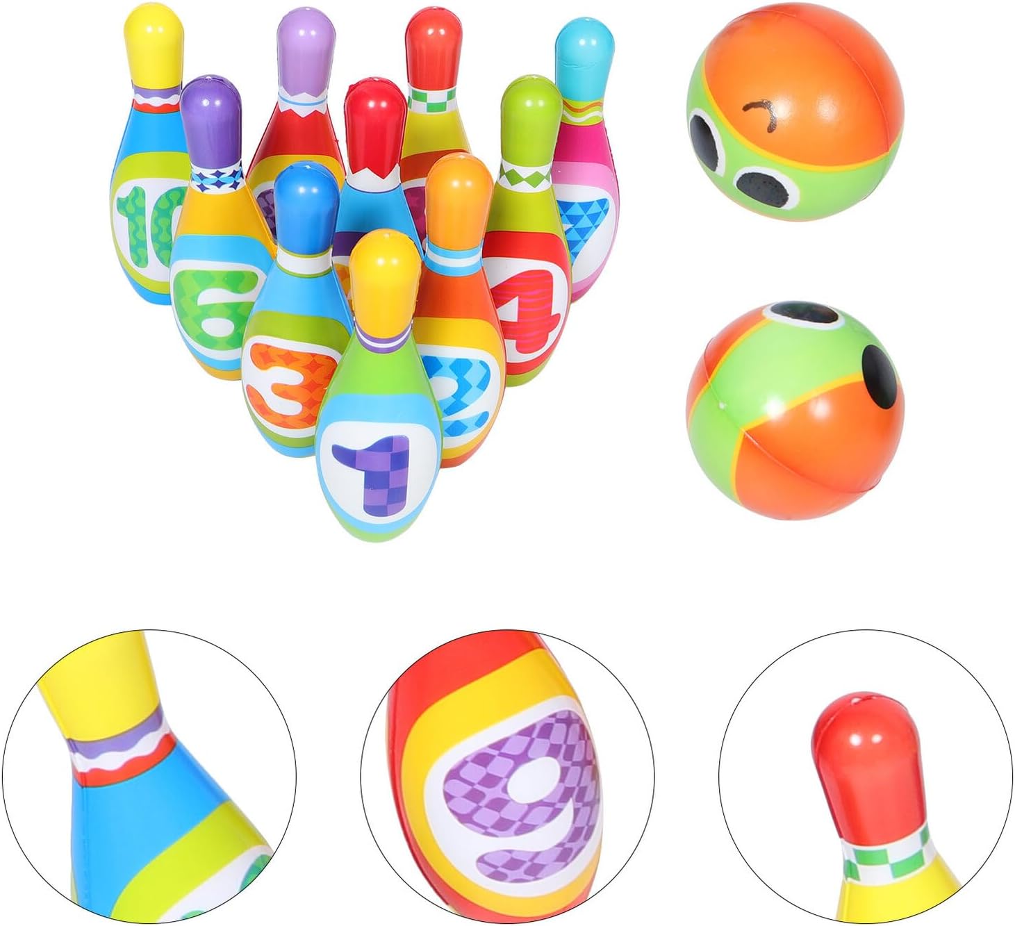 Progettato per le mani piccole: le dimensioni ridotte e il design leggero facilitano la presa e il rotolamento da parte dei bambini, incoraggiando l'interesse precoce per lo sport. giocattoli per attività di bowling per bambini piccoli, giocattoli per feste di bowling Palline facili da tenere: palline da bowling leggere e piccole sono adatte alle mani piccole e aiutano i bambini a costruire fiducia in se stessi e ad affinare le proprie capacità motorie. Palle da bowling in PU per bambini, mini gioco da bowling da tavolo Legame genitore-figlio: goditi del tempo di qualità con i tuoi piccoli attraverso questo gioco di bowling interattivo che promuove ricordi più forti e gioiosi, palle da bowling all'aperto per bambini piccoli, set da gioco con attività di bowling per divertimento interattivo in famiglia: rafforza il bowling per le capacità motorie dei bambini con questo coinvolgente set di giochi da bowling adatto per attività genitore-figlio e crea momenti di gioco indimenticabili in casa e set da gioco da bowling all'aperto per bambini sicuri materiali: questo set è realizzato in morbido materiale PU ed è sicuro per bambini da maneggiare e utilizzare. offre divertimento ai genitori. Giocattoli da bowling in PU per feste, giochi di abilità di bowling per bambini piccoli