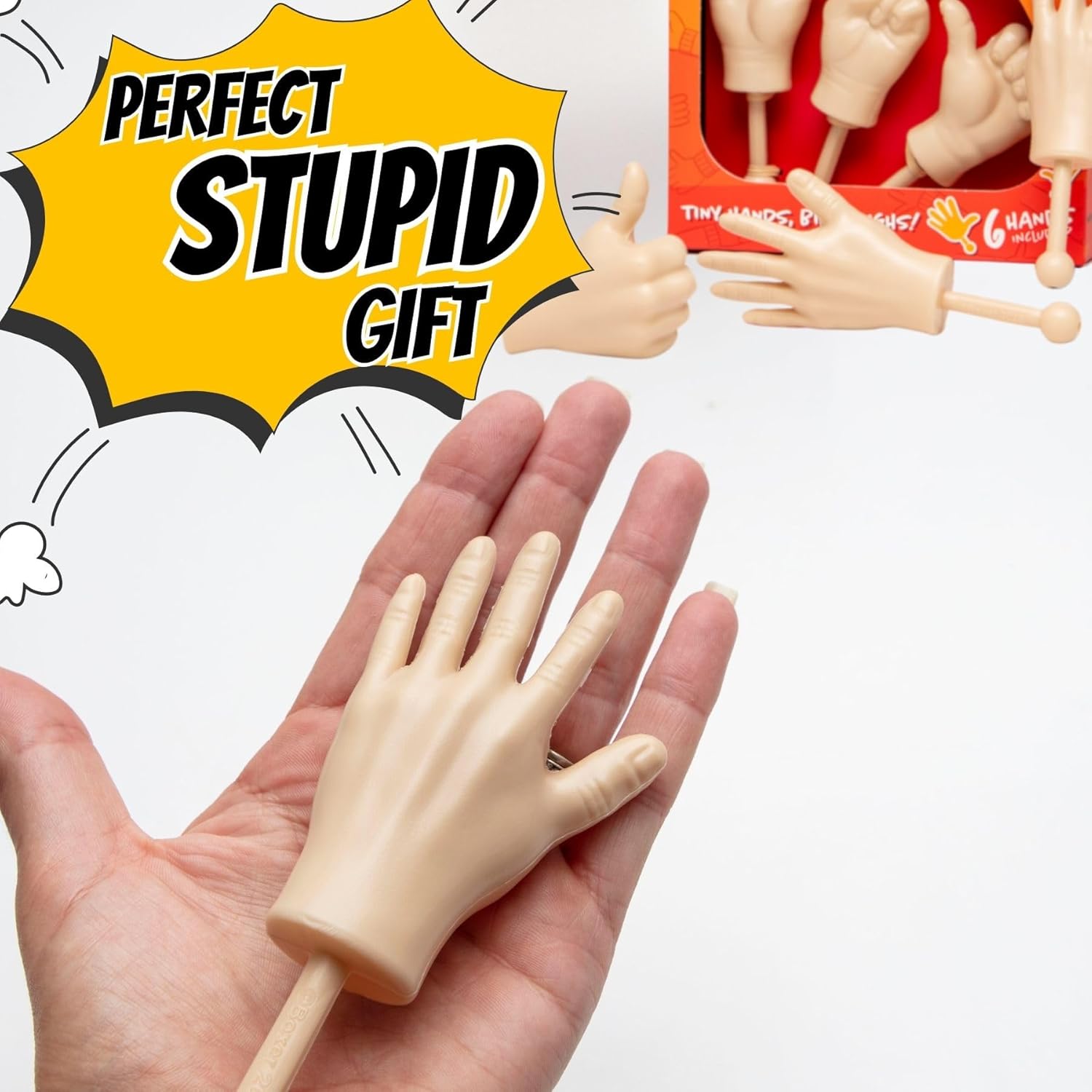 PICCOLE MA POTENTI (ISH) - Con una scelta di pace, pollice in su e agitando, queste piccole mani sono qui per scioccare amici e familiari e migliorare ogni singola foto che scatti. Regalo stupido, risate serie: inganna le persone a pensare di avere piccole mani con questo regalo novità che garantisce una risatina e probabilmente una doppia ripresa! Scherzi resi facili: infila queste mini mani e diventa il re di scherzi divertenti: nessuna configurazione, nessuna preparazione, solo puro divertimento caotico! Mani finte, vero divertimento: ideale per gli appassionati di cose strane, scherzi o semplicemente buone battute vecchio stile. Realizzati in plastica, sono facili da pulire con acqua calda e sapone. Il regalo perfetto per stupidi: dai regali scherzosi ai regali sciocchi, questi sono i piccoli strumenti per grandi risate. Piccole mani ma potenziali per Natale, compleanni, Babbo Natale segreto e feste!