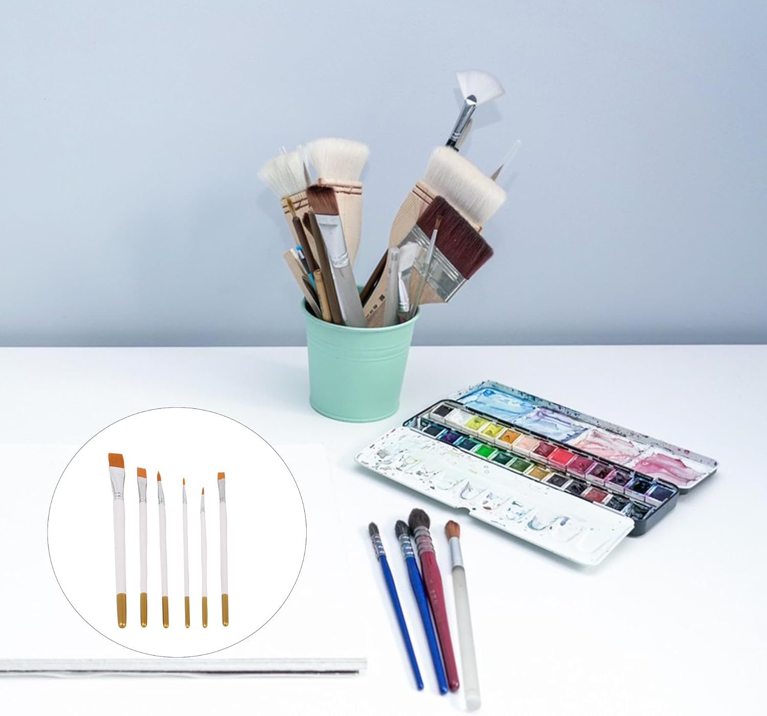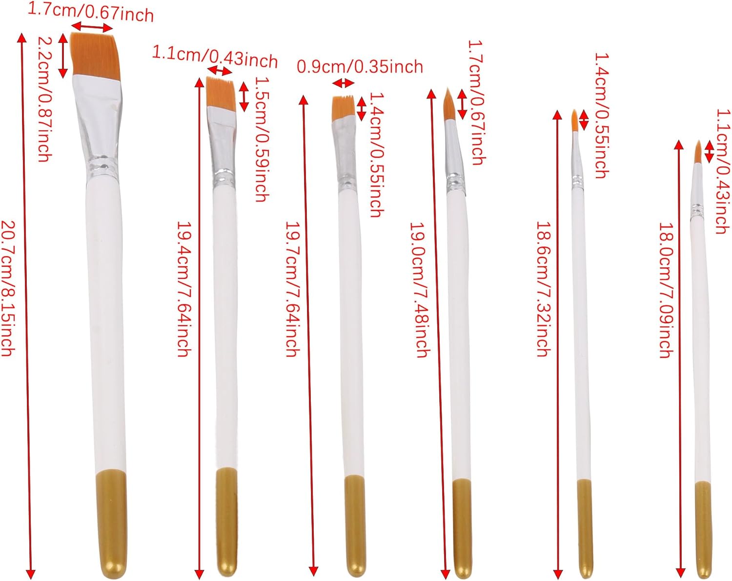 BQLZR 6 pennelli con setole in nylon, colore bianco, per creazioni artistiche, pittura artistica
