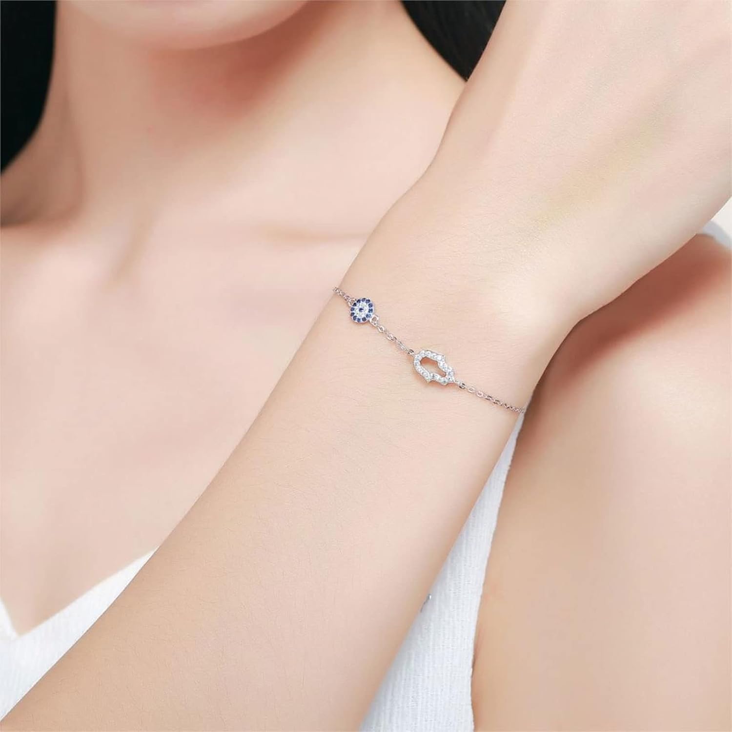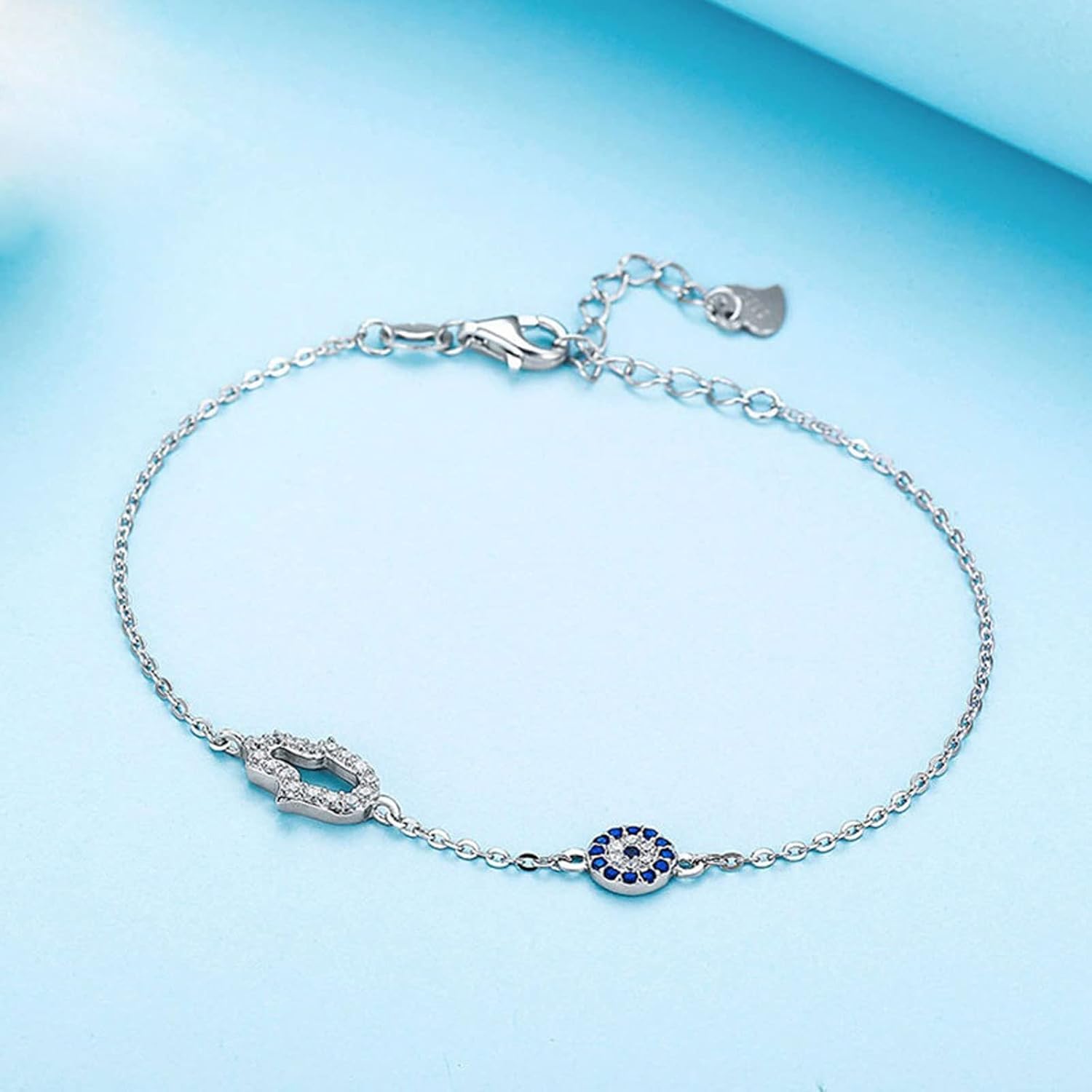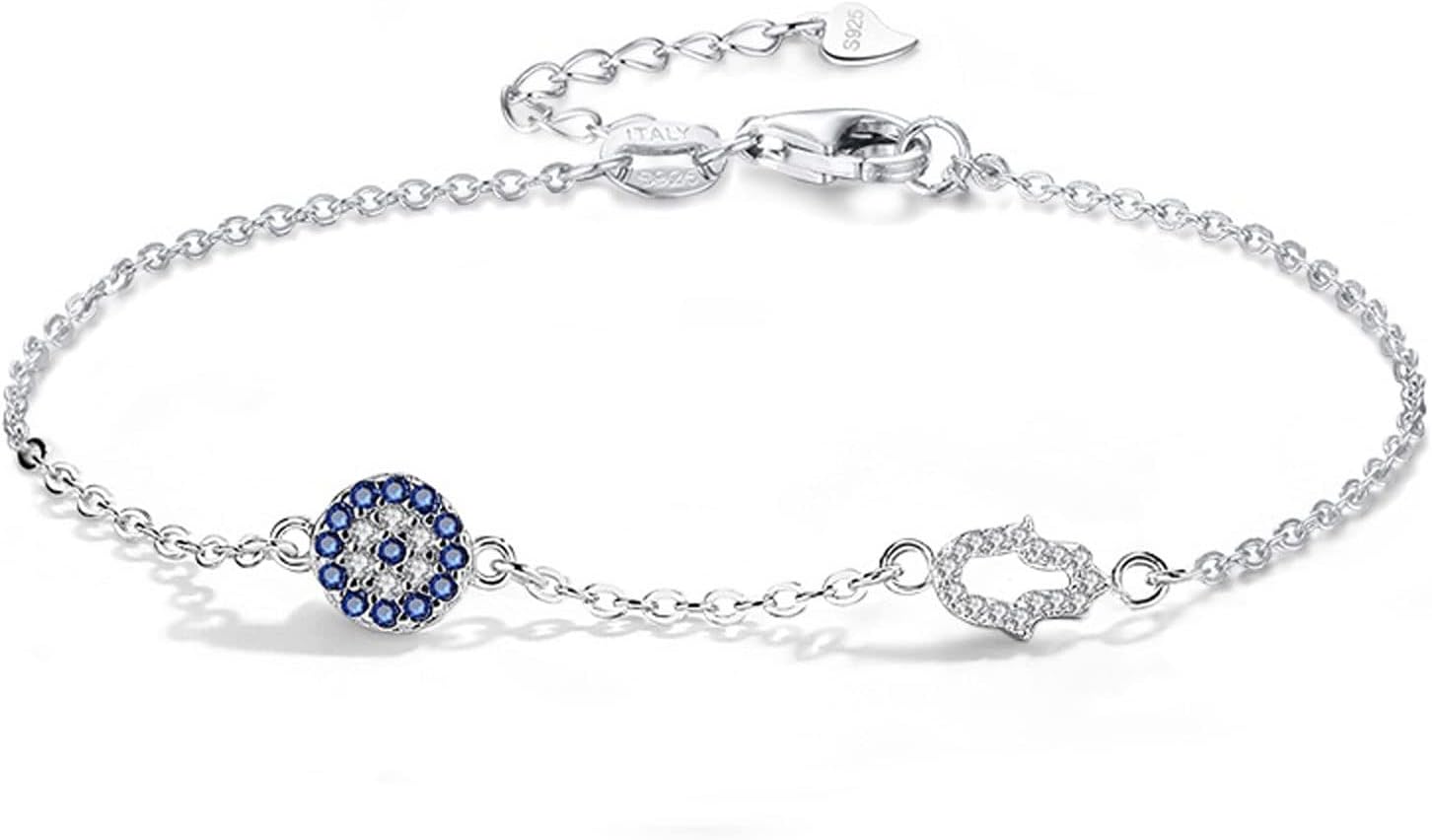 Bracciale Bracciali Occhio for Donna Bracciale Fortunato in Argento Sterling Occhio Azzurro Mano di Hamsa Gioielli Mano
