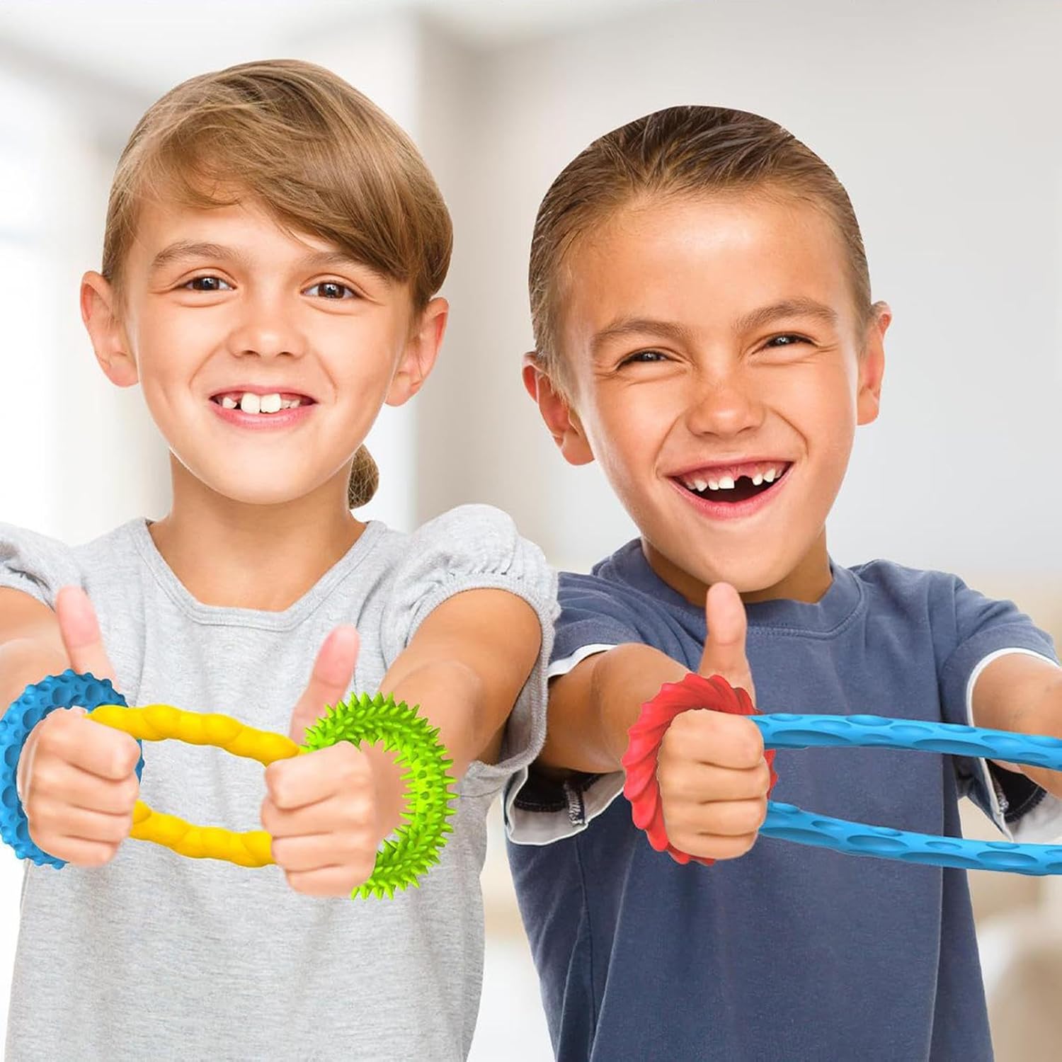 Giocattolo versatile: i braccialetti indossabili con trame creative e colori vivaci sono ideali per lezioni scolastiche o lunghi viaggi, offrendo intrattenimento senza sforzo per i bambini in ogni occasione. Elasticità a prova di bambino: realizzato in eccellente gomma elastica, questo braccialetto fidget è forte, elastico e delicato sulla pelle sensibile. Offre ai bambini il piacere tattile in modo completamente sicuro e senza preoccupazioni. Divertente accessorio calmante: ideale come ricompensa di classe, riempitivo per borse e aggiunta per calze festive. Perfetto per cesti pasquali, premi di carnevale e regali di compleanno. Aiuta a rilassare i bambini in modo giocoso e fornisce un effetto calmante attraverso il coinvolgimento sensoriale. Effetto calmante: questo braccialetto agitato è progettato per creare un effetto calmante che promuove l'attenzione e il rilassamento dei bambini. Soddisfa le preferenze creative dei bambini speciali che cercano strumenti stimolanti ma allo stesso tempo rilassanti, ideali per l'uso quotidiano. Esperienza sensoriale soddisfacente: la lavorazione di alta qualità con texture intense e colori vivaci promuove la percezione sensoriale e offre discretamente una riduzione dello stress equilibrante sul polso