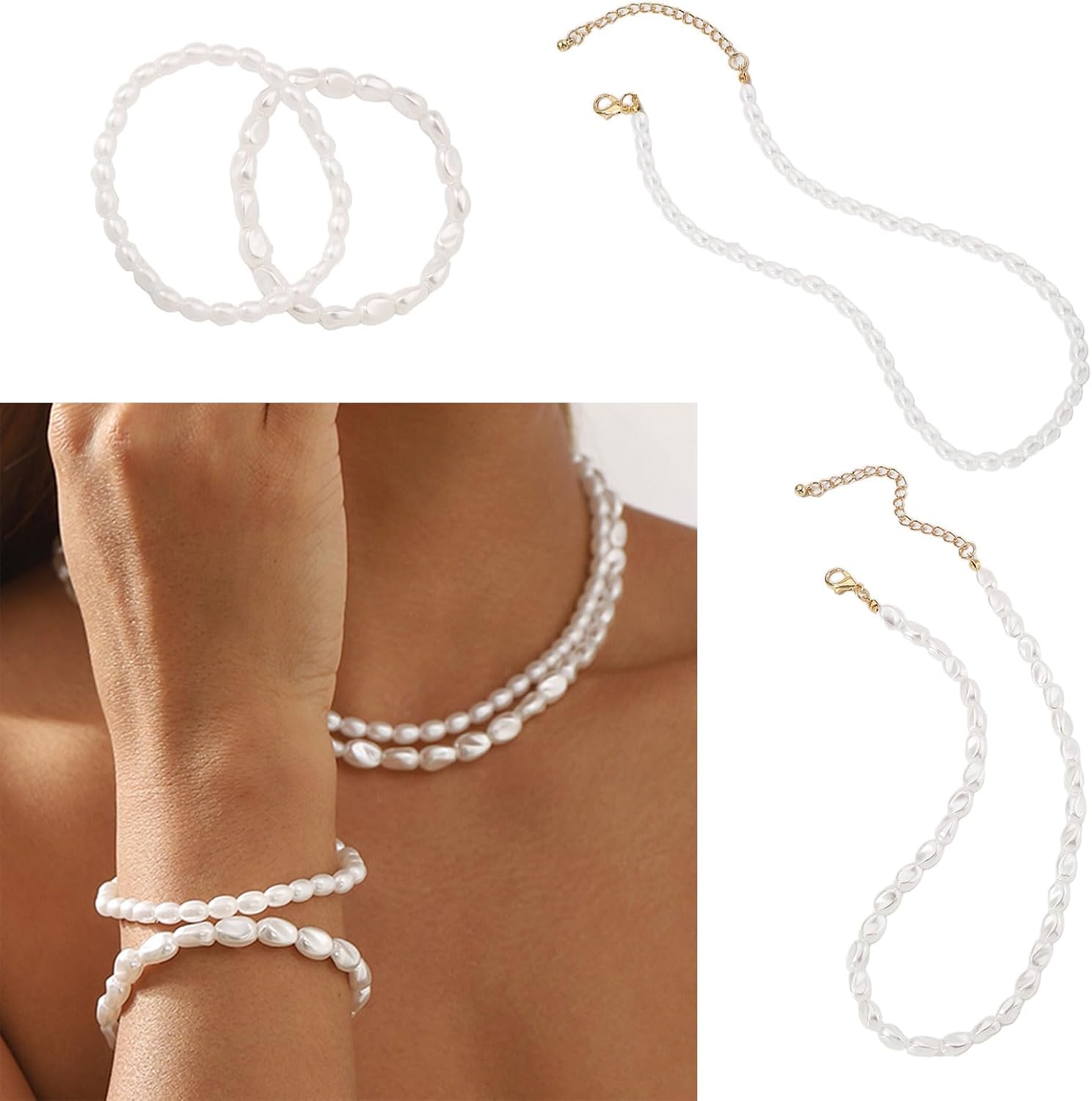 Bracciale perle e collana combinata con cattura degli occhi per perle collana per perle set catena polso elegante e ornamento del collo Caratteristiche: Abbraccia la sostanza della grazia vintage francese con nostro braccialetto e la collana retrò francese per perle e collana, delicata aggiunta alla tua collezione gioielli. Ogni accessorio è realizzato con perle lucenti che offrono un fronte liscio, integrato dalla lega per usura duratura senza offuscamento. Progettato per le donne in avanti che apprezzano l'estetica rilassata francese, questo set è prova per stili sofisticati. Adatto a varie occasioni, dagli incontri casuali ai matrimoni, questo set versatile può elevare qualsiasi outfit, che tratti abbigliamento casual, abbigliamento formale o abito da Regola la lunghezza per adattarsi perfettamente polso o collo e lascia che questo set perle i centrotavola che mettono insieme tuo look con fascino. Specifiche: Componente: ABS Dimensione del braccialetto: 5 cm/1,97 pollici Dimensione della collana: 38 ~ 45,5 cm/14,9 ~ 17,9 pollici pacchetto include: 1SET RETRO FRANCH LAZY STYLES BRACELETTORE E CACCOLA Nota: prega consentire l'errore 1-2 cm a causa della misurazione manuale. Assicurati non preoccuparti prima un'offerta. A causa della differenza tra diversi monitor, l'immagine potrebbe non riflettere colore effettivo articolo Grazie!