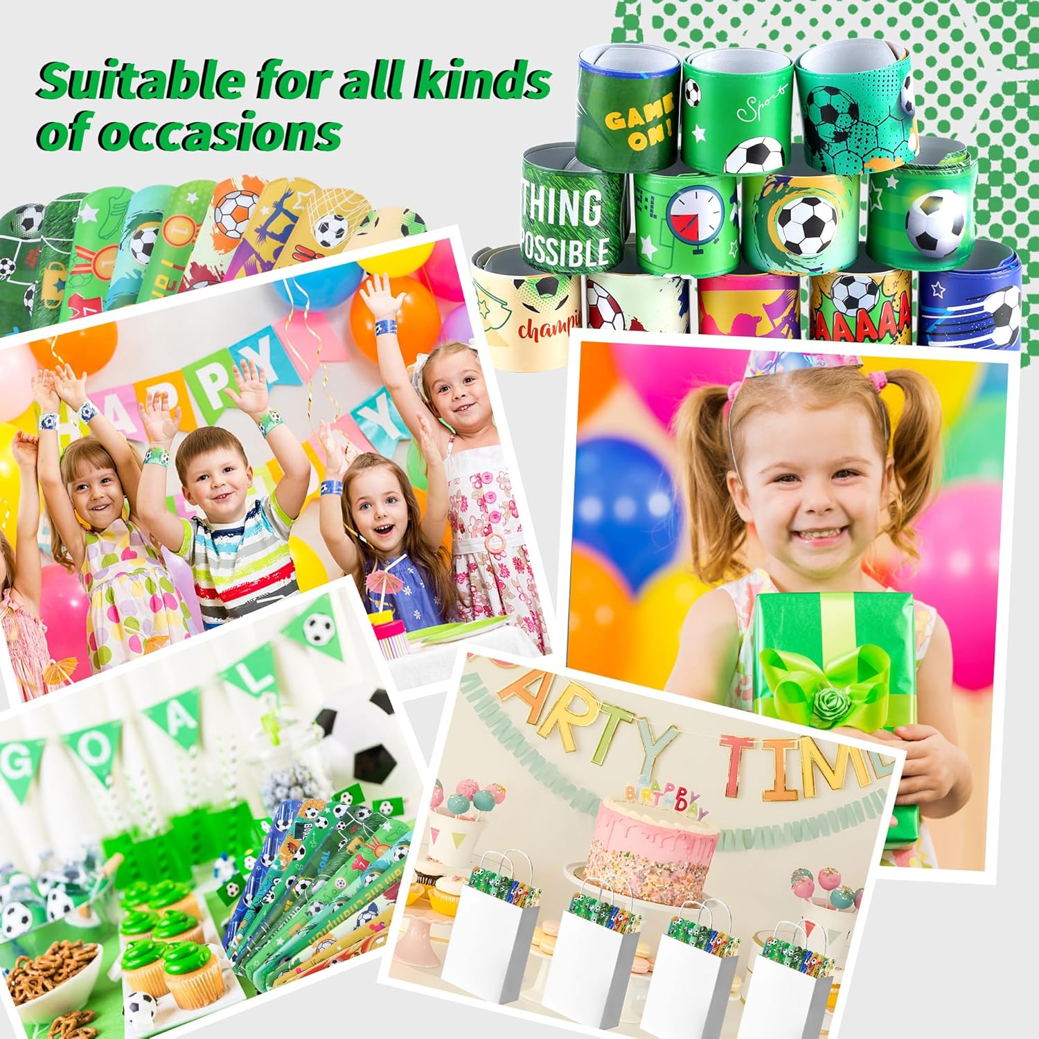 Caratteristiche: I braccialetti sono costituiti da un robusto nucleo metallico ricoperto da uno strato esterno in morbido PVC, che li rende meno soggetti a rotture o deformazioni, e quindi facili e sicuri da indossare. Il bracciale è leggero e compatto e si adatta comodamente al polso. Basta premerlo per indossarlo facilmente al polso, alla caviglia, al braccio, ecc. Feste di compleanno, regali con regali, costumi di tutti i giorni, giochi a premi, giochi di ruolo, regali di Natale e altro ancora. Specifiche: Materiale: PVC; lamiera di acciaio Dimensioni: 22*3 cm/8,7*1,2 pollici Contenuto della confezione: 48 x braccialetti colorati Nota: 1. Se l'interno del braccialetto passa attraverso la pelle di plastica, non lasciare che i bambini ci giochino! 2. Questo prodotto è adatto solo a bambini dai 3 anni in su. I bambini devono giocare sotto la supervisione di un adulto. 2. Se avete domande sui nostri prodotti, non esitate a contattarci. Ti risponderemo entro 24 ore. Il nostro obiettivo è la tua completa soddisfazione.