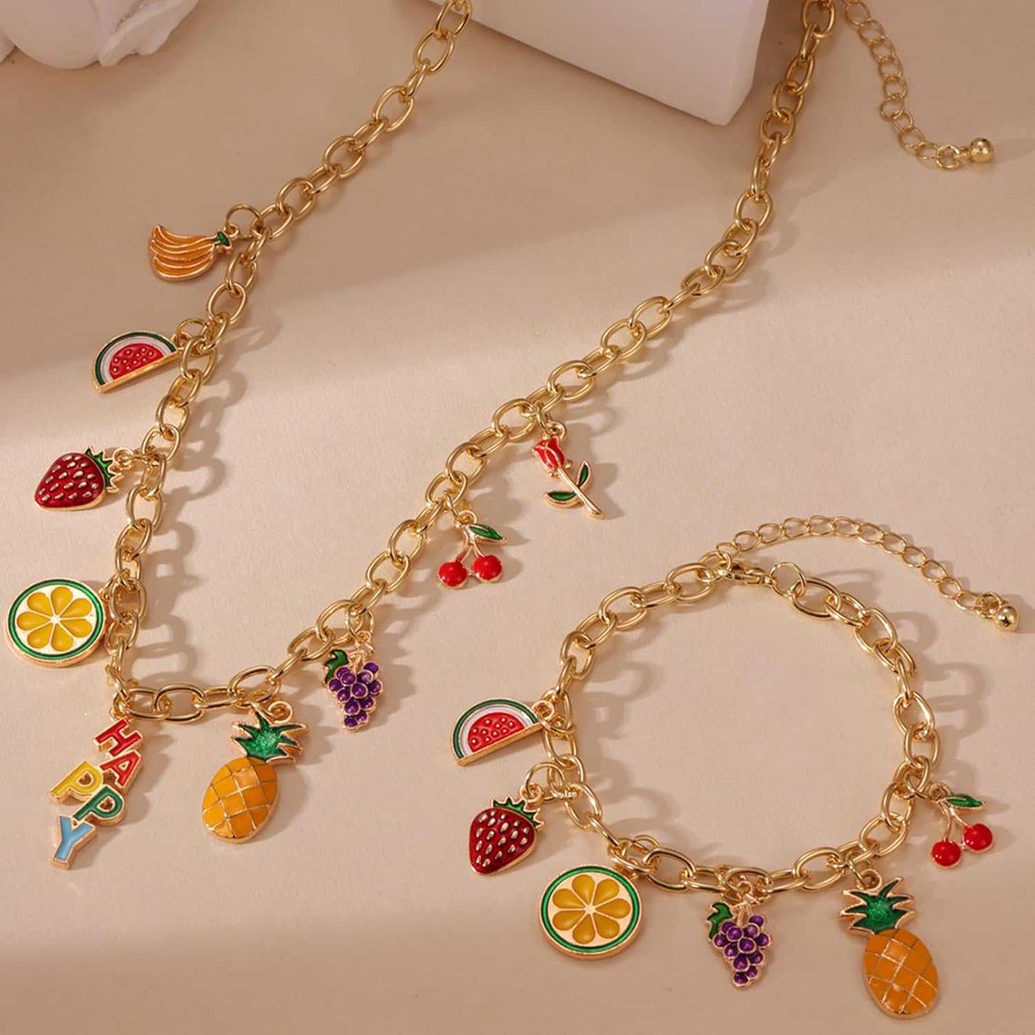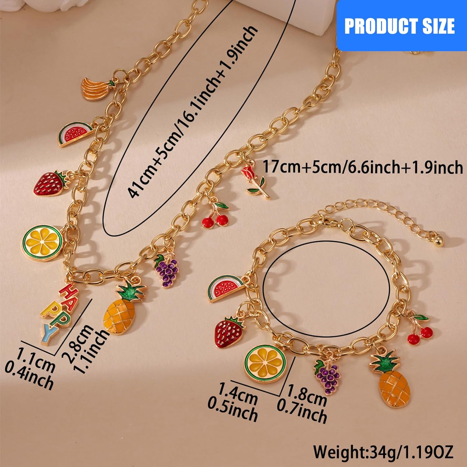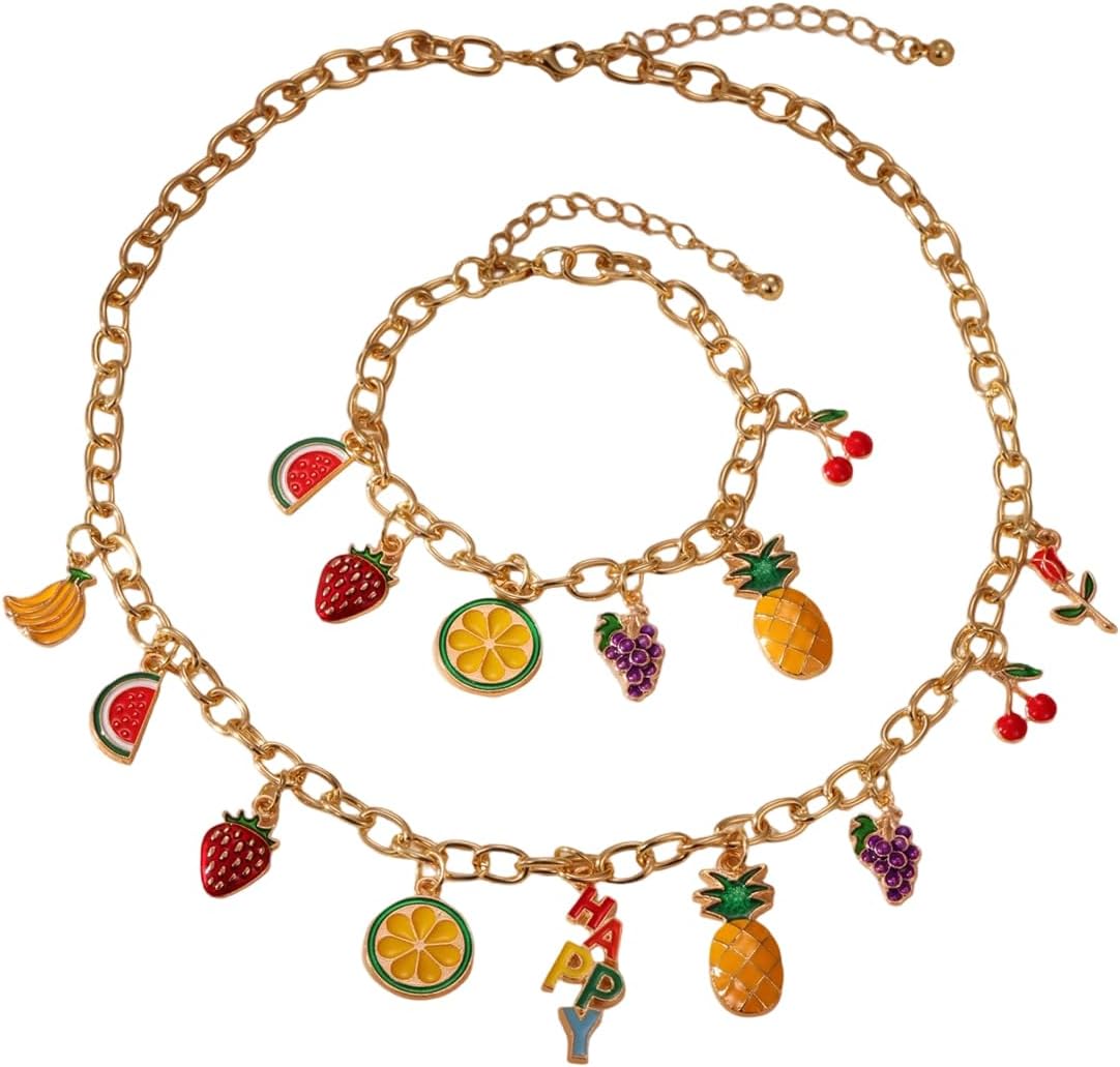 Bracciale unico con frutta, collana, catena, gioielli, struttura in acciaio inossidabile, braccialetto regolabile, da indossare e tutti i giorni Caratteristiche: Vivace set gioielli a tema frutta con motivi anguria, fragola e ciliegie, realizzati in acciaio inossidabile per lucentezza e comfort duraturi. Catene regolabili per collana e bracciale con finitura che garantisce l'usura, adattandosi facilmente a varie dimensioni polsi e collo. Progettato per trend setter e persone in cerca regali che amano accessori giocosi e accattivanti per valorizzare outfit casual o look da festa. Abbina questo set gioielli con frutta a vestiti, giacche o abiti da festival per mostrare la tua vivace personalità. La struttura leggera robusta in acciaio inossidabile lo rende un accessorio quotidiano o un regalo affascinante per compleanni e anniversari. Specifiche: Componente: acciaio inossidabile Dimensioni della collana: 16,1+1,9 pollici (41+5 cm) Misura del braccialetto: 6,6+1,9 pollici (17+5 cm) La confezione include: 1x collana 1x braccialetto Nota: prega consentire errori 1-2 cm dovuti alla misurazione manuale. A causa delle differenze tra i diversi monitor, l'immagine potrebbe non riflettere colore effettivo articolo