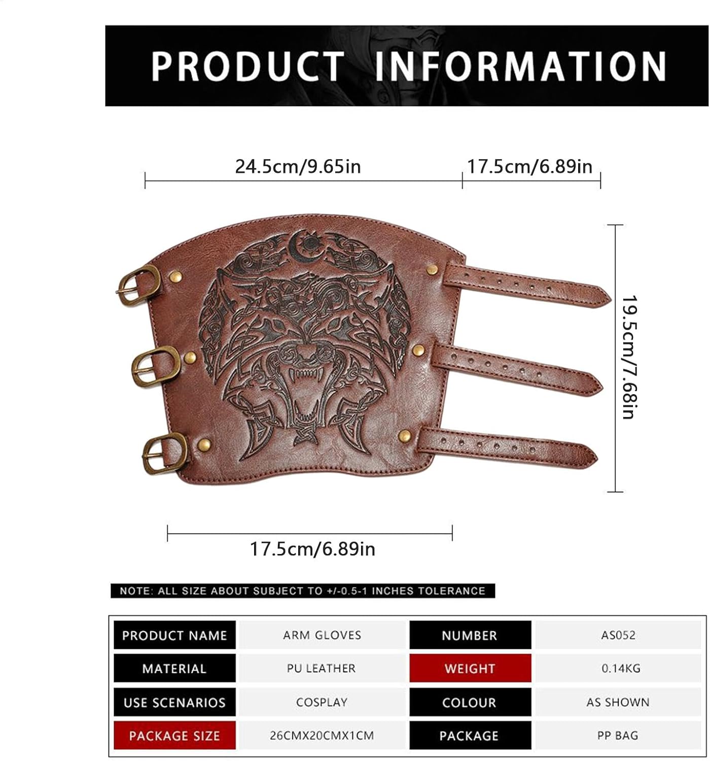 Braccialetto per cosplay maschile per adulti, guardia del braccio medievale, 1 paio di bracciali notturni medievali per cosplay, larghezza regolabile, in rilievo, per costume rinascimentale Migliora il tuo look medievale con i nostri squisiti braccialetti in rilievo. È comodo e adatto a una varietà di dimensioni del polso e fornisce una forte protezione dell'avambraccio per ogni fase della performance e dell'evento. Specifiche: Materiale: poliuretano. Dimensioni del prodotto: circa 24,5 x 19,5 cm. Lunghezza della cinghia: circa 17,5 cm. Peso: 140 g per pezzo. Colore: Nero, Caffè Contenuto della confezione: 2 protezioni per il polso. Nota: A causa delle differenze di illuminazione e dello schermo, il colore dell'articolo potrebbe essere leggermente diverso dall'immagine. Si prega di consentire 1-2 cm di dimensioni a causa della misurazione manuale.