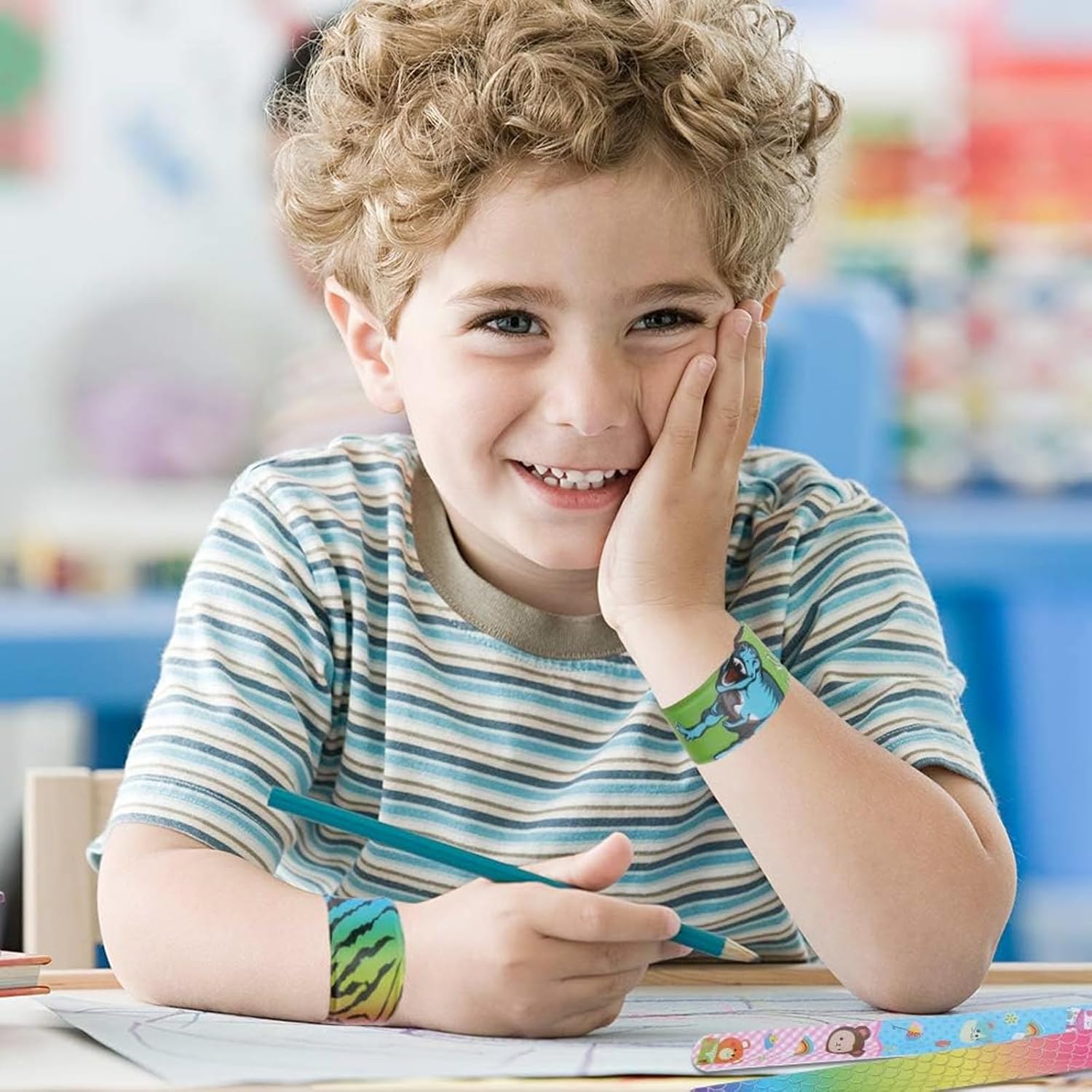 J’ai eu l’occasion de tester ces bracelets à claquement pour enfants, et ils sont vraiment adorables ! Avec leur design coloré sur le thème sirène et licorne, ils plaisent énormément aux petites filles. Chaque bracelet est différent, ce qui permet de varier les styles, et ils sont très simples à utiliser : un petit coup sur le poignet, et ils s’enroulent automatiquement grâce à leur âme métallique. La longueur de 22 cm et la largeur de 3 cm conviennent parfaitement aux enfants à partir de 3 ans. Ils sont idéals comme petits cadeaux ou pour remplir des pochettes surprises lors d’un anniversaire. C’est un produit amusant et économique qui fait son effet lors des fêtes. J’espère que mon avis vous sera utile !