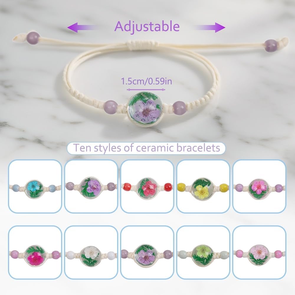 " 🌸Specifiche: Nome: braccialetti amicizia bambine regolabile Materiale: Corda di cotone + corda di canapa + sfera di vetro con fiori secchi Quantità: 10 pezzi Colore: Multicolore, 10 design diversi Dimensioni: regolabile ca. 8–26 cm Peso: ca. 55 g 🌈Contenuto della confezione: 10 × braccialetto regolabile bambina (colori e motivi assortiti) ✨Note: A causa delle impostazioni di luce e schermo, i colori possono variare leggermente. Piccole differenze sono possibili a causa della misurazione manuale. Ogni braccialetto è fatto a mano ed è quindi unico. 🎁Caratteristiche: – Regolabile da 8 a 26 cm, adatto a bambini, adolescenti e adulti. – 10 colori diversi con motivi floreali, ideali da condividere con gli amici o da abbinare agli outfit. – Realizzati a mano con corda di cotone e canapa resistente, combinati con sfere di vetro cristallo. – Perfetta idea regalo per compleanni, San Valentino, Festa della Mamma, Natale o come piccolo pensiero. – Versatile, da indossare ogni giorno, a feste, in spiaggia, ai festival o come braccialetto dell’amicizia o di coppia. "