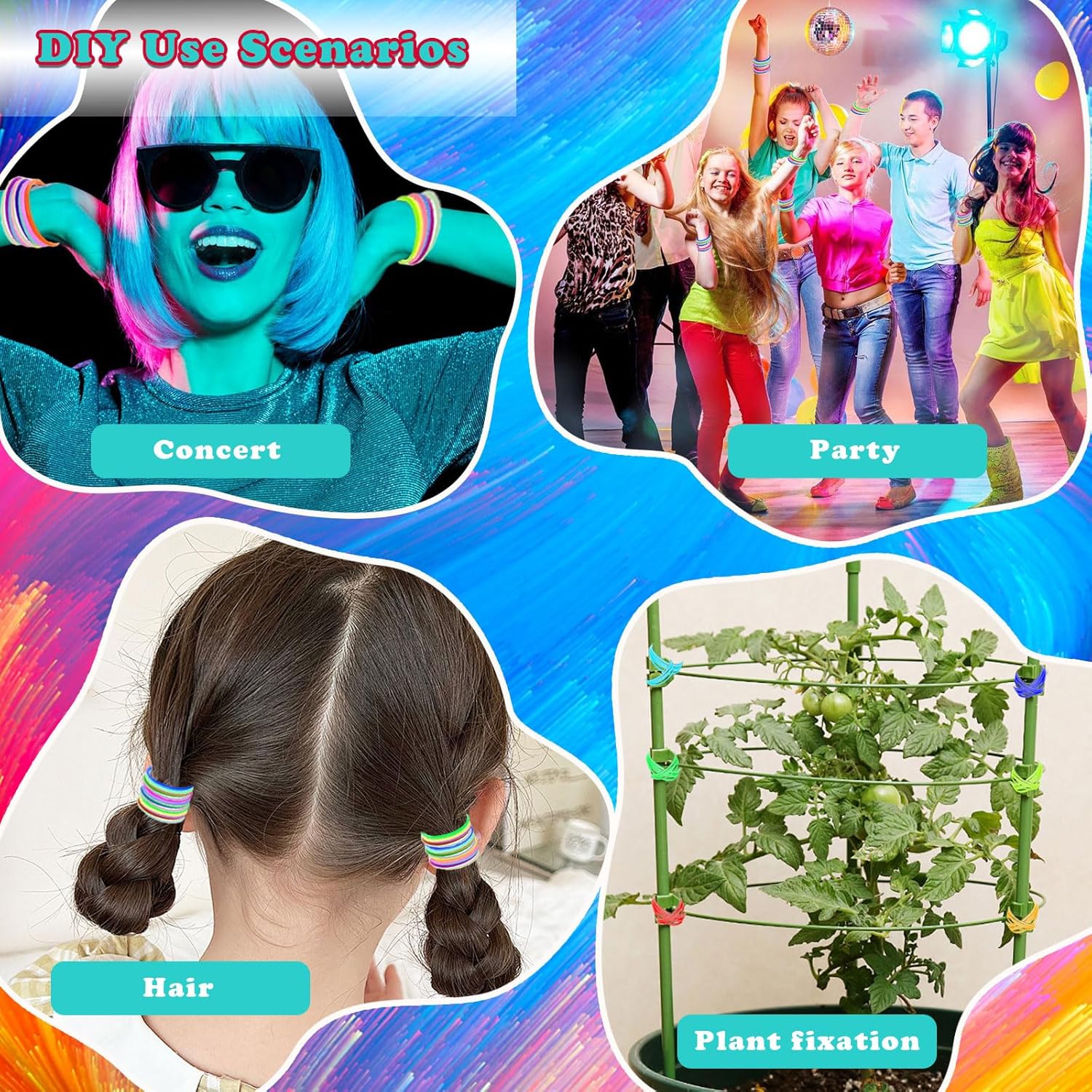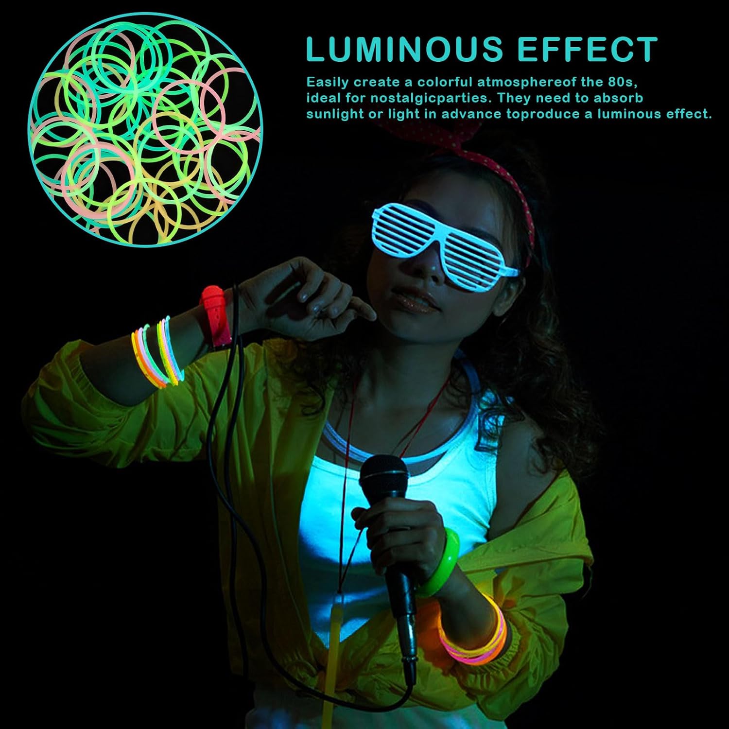 🌈 Colori colorati: ogni confezione contiene 60 braccialetti di gelatina di silicone multicolore in sei colori vivaci: rosa, viola, arancione, giallo, giallo-verde e blu turchese - 5 pezzi ciascuno. Design unisex, ideale per feste retrò anni '80 ed eventi colorati. ✨ Morbido ed elastico - molto comodo da indossare: braccialetti al neon realizzati in morbido silicone di alta qualità - lisci al tatto e allo stesso tempo robusti. Con una circonferenza di circa 18,7 cm (7,36 pollici), i braccialetti si adattano comodamente alle mani di bambini e adulti, perfetti da indossare tutto il giorno. 🌙 Effetto luminoso al buio: i braccialetti luminosi assorbono la luce del giorno o artificiale e si illuminano leggermente al buio - ideali per club, campeggio, corse notturne o per contrassegnare tende e picchetti. Per una migliore visibilità e sicurezza notturna. 🎉 Perfetto per gli outfit da festa: il braccialetto elastico in silicone combinato con guanti in rete o abiti fluo rendono facile ricreare i classici look anni '80/'90. Ideale per feste a tema, festival, compleanni, corse di colori e altro ancora: attirerà sicuramente l'attenzione! 🎁 Versatile: i braccialetti in silicone colorati non sono solo accessori alla moda, ma possono anche essere usati come elastici per capelli, ausili per il campeggio, materiali fai-da-te o regali per le feste. Offrono un utilizzo pratico e un divertimento colorato in molte situazioni.