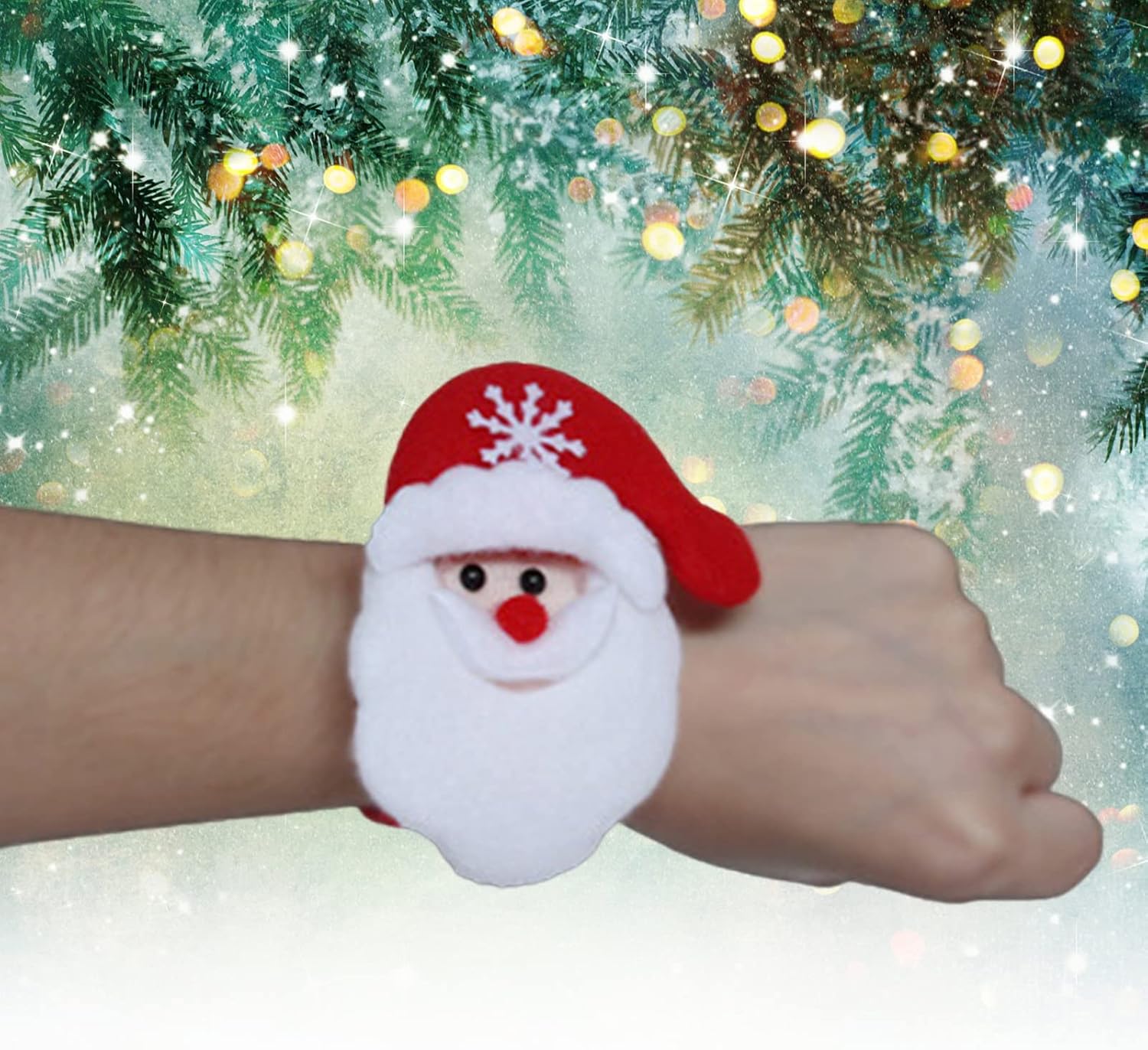 Avvolto in morbido pile, questo cerchio pieghevole è cucito saldamente sui bordi, comodo da indossare, sicuro per evitare graffi e adatto ai bambini con cui giocare. Progettato con graziosi elementi classici natalizi come Babbo Natale, pupazzi di neve e cervi, questo divertente braccialetto a cerchio è un fantastico travestimento natalizio e un divertente giocattolo per attirare l'attenzione di un bambino. È realizzato in materiale di acciaio inossidabile. La lunghezza di questo prodotto è di 22 cm e la larghezza è di 8 cm. Dimensioni: 22 cm x 8 cm/8,66 I braccialetti natalizi sono una decorazione per il polso o la caviglia. È adatto per feste di compleanno di Natale e tutti i tipi di festival, che possono essere usati come regalo a sorpresa per amici o bambini. Puoi anche vestirti da solo, questi braccialetti natalizi possono farti sentire l'atmosfera festosa e portarti più divertimento. (La confezione include: 1 braccialetto circolare pieghevole)