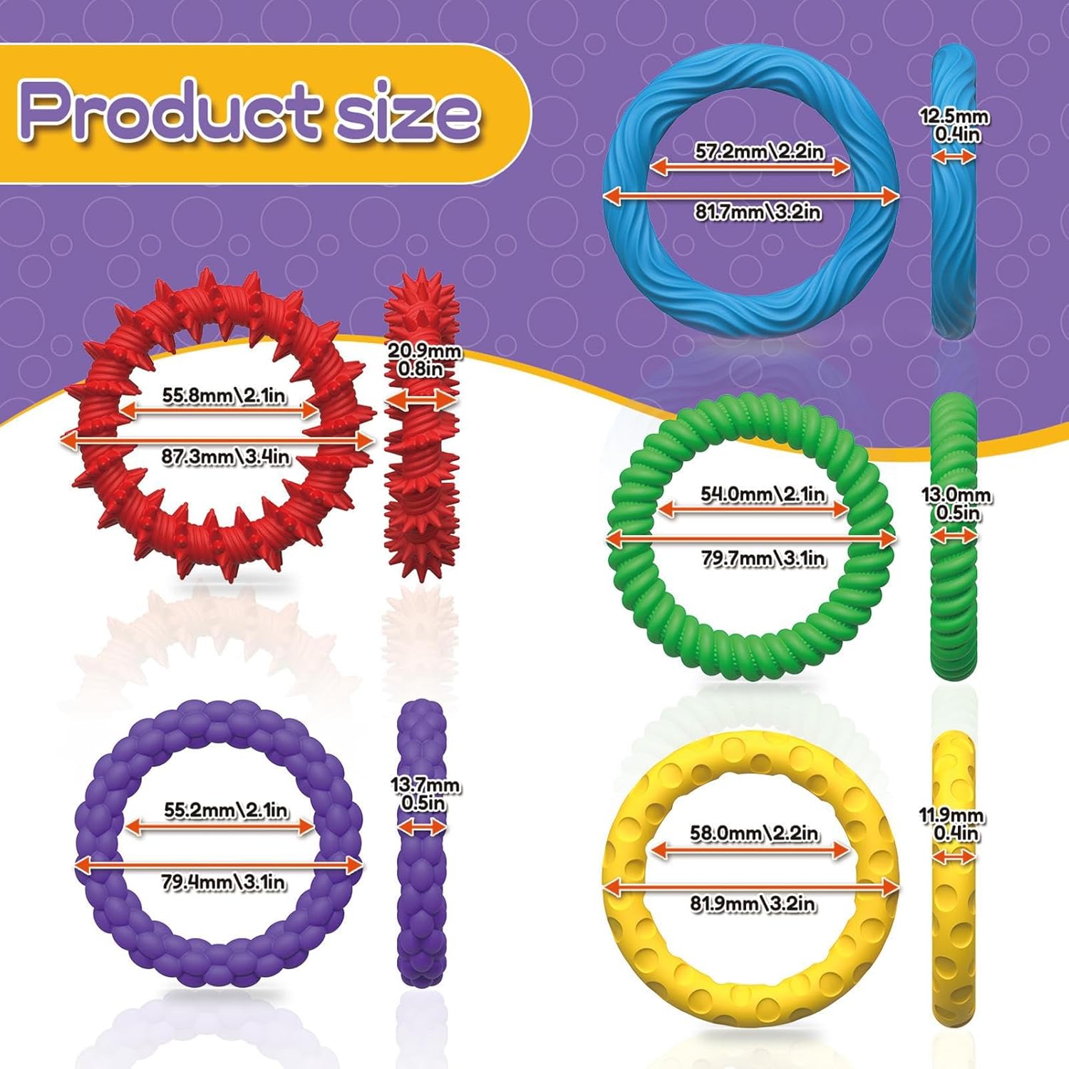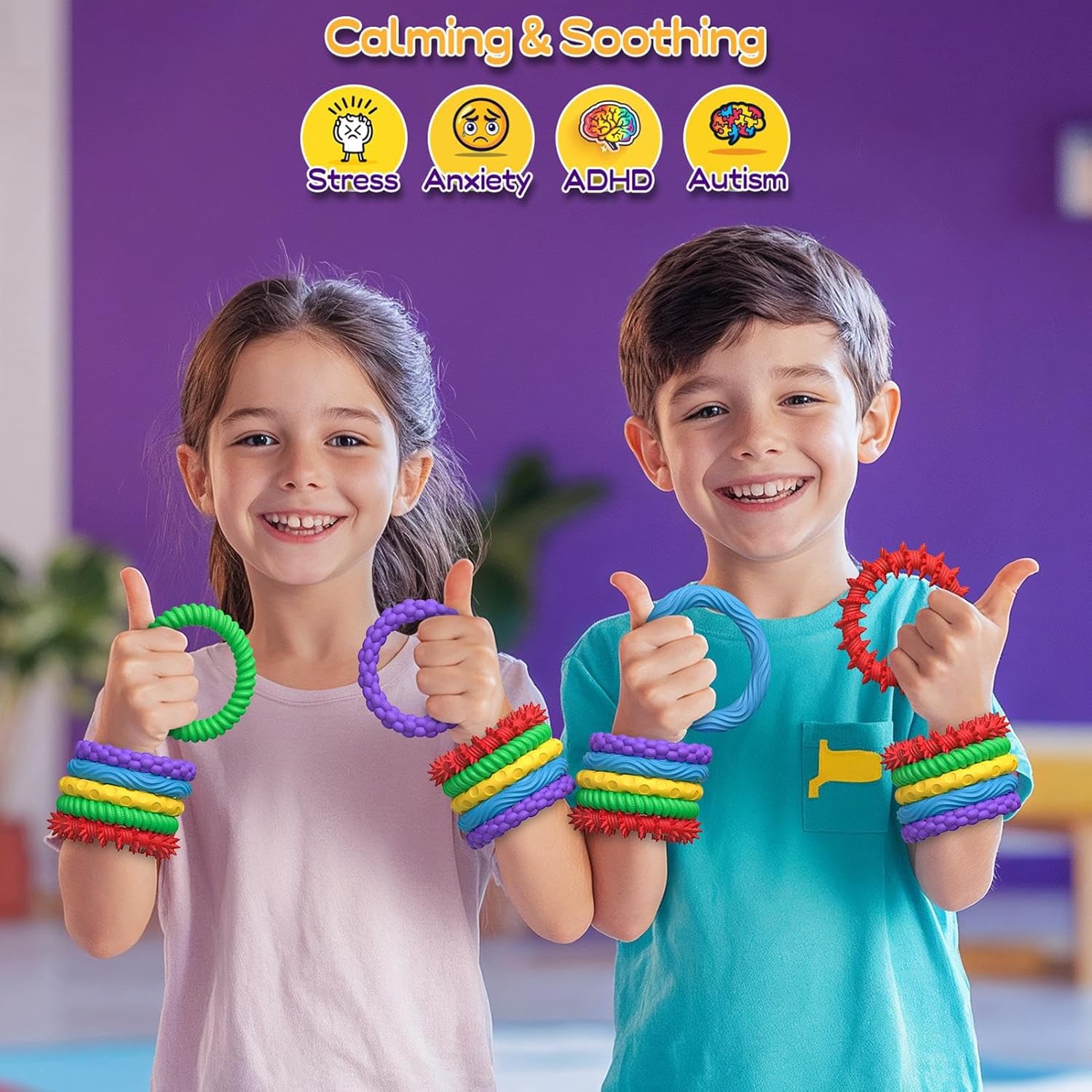 Stile alla moda: texture diverse e colori vivaci nel design di ciascun braccialetto forniscono un supporto ottimale per le esigenze di concentrazione e relax, perfetto per l'umore e i tentativi di energia della mente Costruzione stabile: progettate in ottimo silicone, queste corde flessibili ed elastiche non sono facili da deformare per garantire durata per un uso ripetuto e progettate per essere morbide ma robuste per un'esperienza confortevole Concentrazione sensoriale migliorata: corde elastiche che forniscono un'esperienza sensoriale rilassante, calmano i nervi e migliorano la concentrazione in modo silenzioso. Goditi un'esperienza morbida e confortevole con indumenti durevoli Scena applicabile: supporta abitudini di agitazione continua e offre ai bambini uno sbocco soddisfacente per rimanere concentrati e impegnati durante il giorno per promuovere l'apprendimento e il gioco produttivi. Regalo premuroso: corde elastiche versatili per incoraggiare il gioco e il relax; Una scelta fantasiosa per premi in classe, giocattoli da scrivania e riempitivi per borse. Perfetto per sorprese nelle calze e nei cestini pasquali