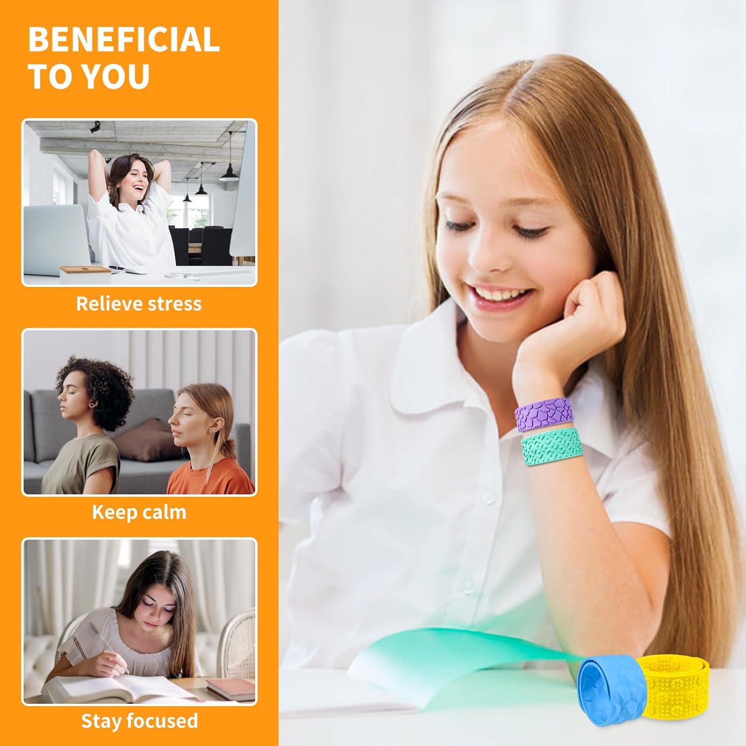 Man erhält 6 Fidget Armbänder in unterschiedlichen Farben mit unterschiedlichen und wirklich schönen Strukturen. Die Farben sind kräftig und ansprechend, das Material und die Verarbeitung machen einen guten Eindruck, der Schnappmechanismus funktioniert. Das Produkt ist geruchsneutral. Was mir nicht so gut gefällt ist, dass ich statt der Strukturen den Schnappmechanismus am Handgelenk spüre. Das ist aber nur ein persönlicher Eindruck, der bei anderen ganz anders sein kann. Alles in allem ist das ein solides und funktionierendes Produkt.