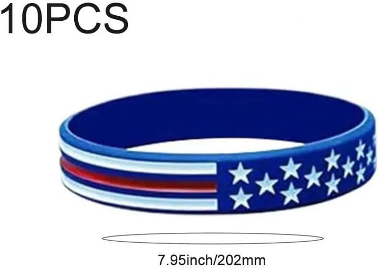 Vivaci disegni patriottici: presenta stampe colorate a tema bandiera americana che rendono il tavolo della festa, i sacchetti regalo o gli abiti ancora più festosi. DIVERTIMENTO PER ETÀ - Design taglia unica adatto a bambini, adolescenti e adulti, perfetto per scuole, sfilate o festival patriottici. Materiale durevole e confortevole: realizzato in morbido silicone elastico, leggero, impermeabile e comodo da indossare. Perfetto per le feste - Include 10 braccialetti, perfetti per bomboniere, bomboniere per eventi, attività in classe o riunioni di famiglia. Perfetto per le celebrazioni patriottiche: mostra il tuo orgoglio americano con i braccialetti in silicone rosso, ideali per il Giorno dell'Indipendenza, il Giorno della Memoria e altro ancora.