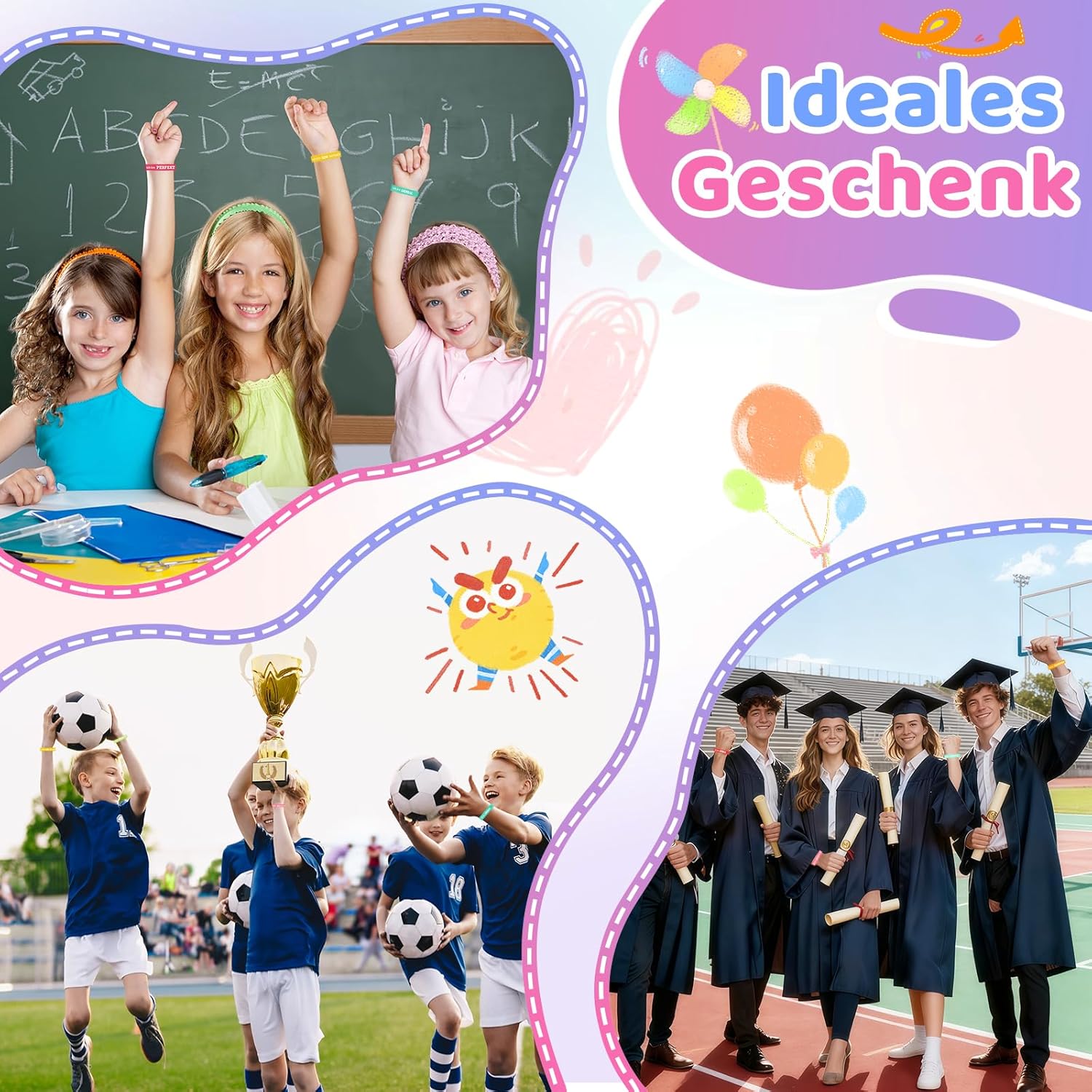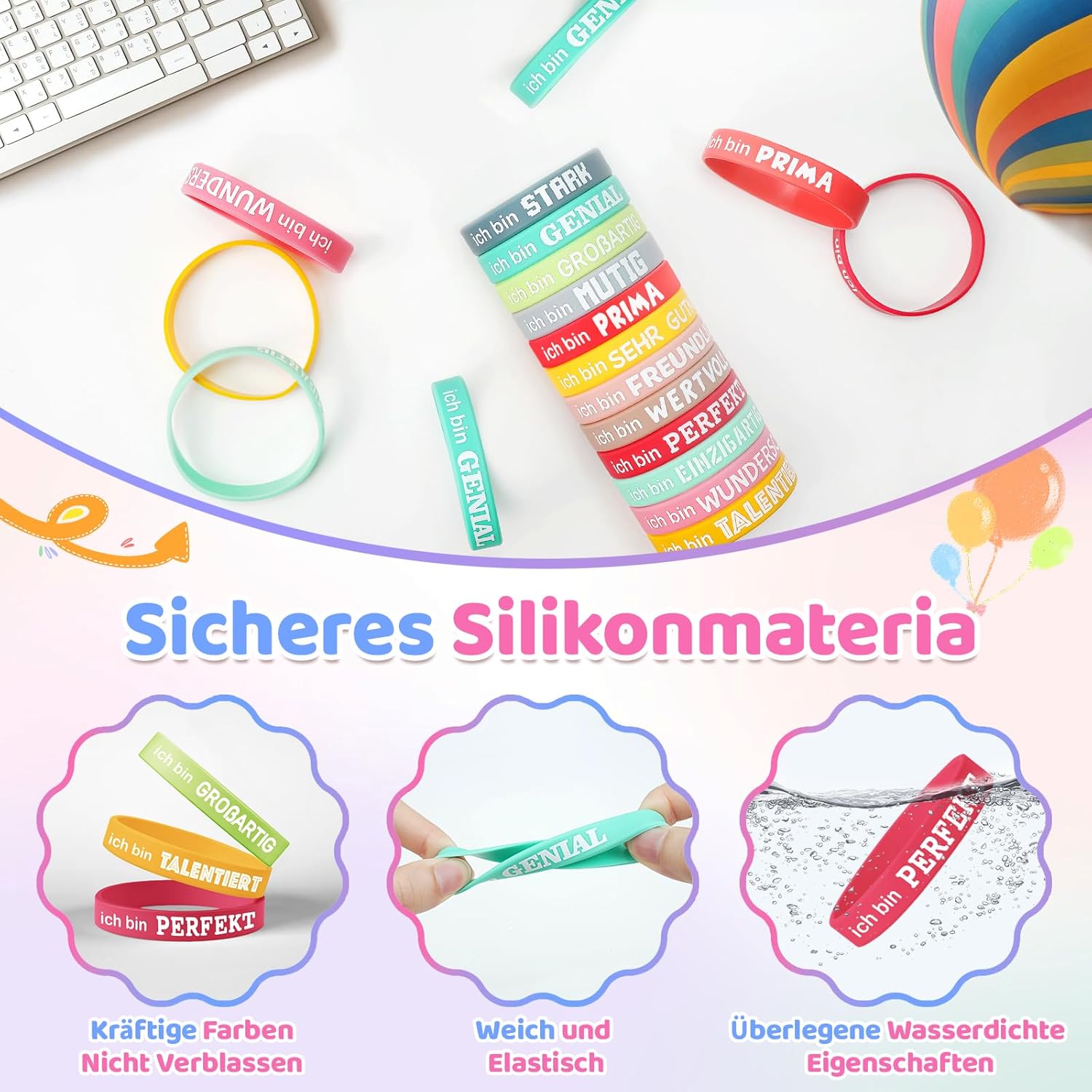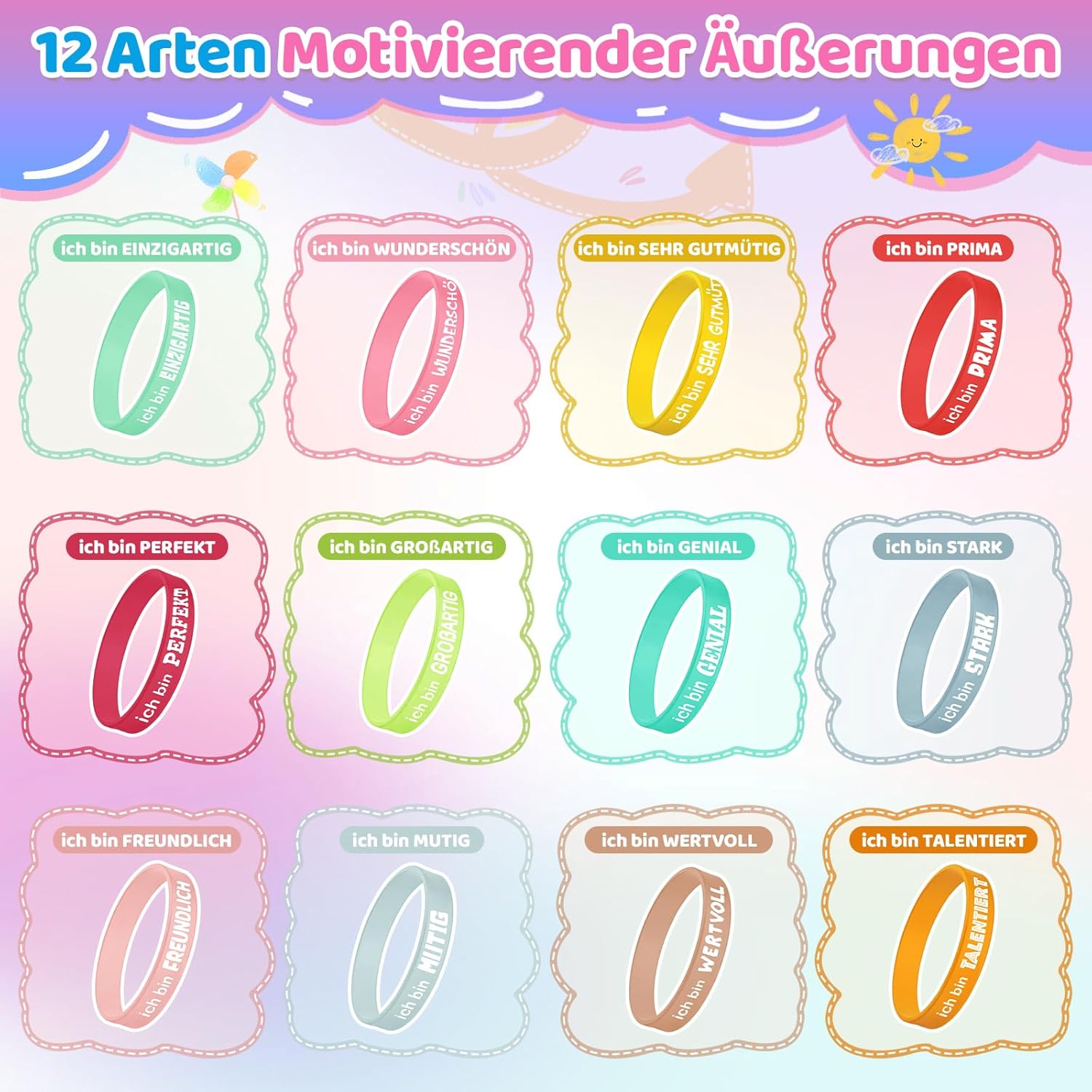 Questi braccialetti motivazionali colorati sono il regalo perfetto per bambini, adolescenti e persino adulti. Il set contiene 36 braccialetti in silicone di alta qualità, con frasi ispiratrici e incoraggianti. Ogni bracciale porta un messaggio positivo che accompagna lo indossa durante la giornata e aumenta la fiducia in se stessi. I braccialetti sono ideali come regalo per feste di compleanno dei bambini, come ricompensa in classe o come regalo motivante per dipendenti e colleghi. I cinturini elastici in silicone sono comodi da indossare e si adattano perfettamente a qualsiasi polso. Sono ottimi come coraggiatori in situazioni difficili come esami o presentazioni importanti. I diversi colori e frasi rendono ogni bracciale un accessorio unico che porterà gioia e diffonde energia positiva. Un ottimo modo per inviare un messaggio di incoraggiamento agli altri o per motivare se stessi ogni giorno.