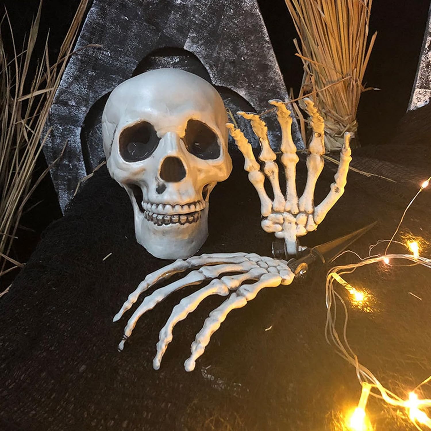 3. Materiale durevole: realizzati in plastica di alta qualità, questi oggetti di scena sono robusti e resistenti alle intemperie, garantendo un uso duraturo sia all'interno che all'esterno. 1. Design realistico: il nostro set di puntelli per scheletro di Halloween presenta una cornice scheletro in plastica realistica con un inserto a terra, creando un'atmosfera per le tue decorazioni di Halloween. 2. Versatile: utilizzare questi oggetti di scena scheletro come scenario decorativo o ornamenti per feste di Halloween, case o esposizioni in cortile. Sono perfetti per creare un osso.