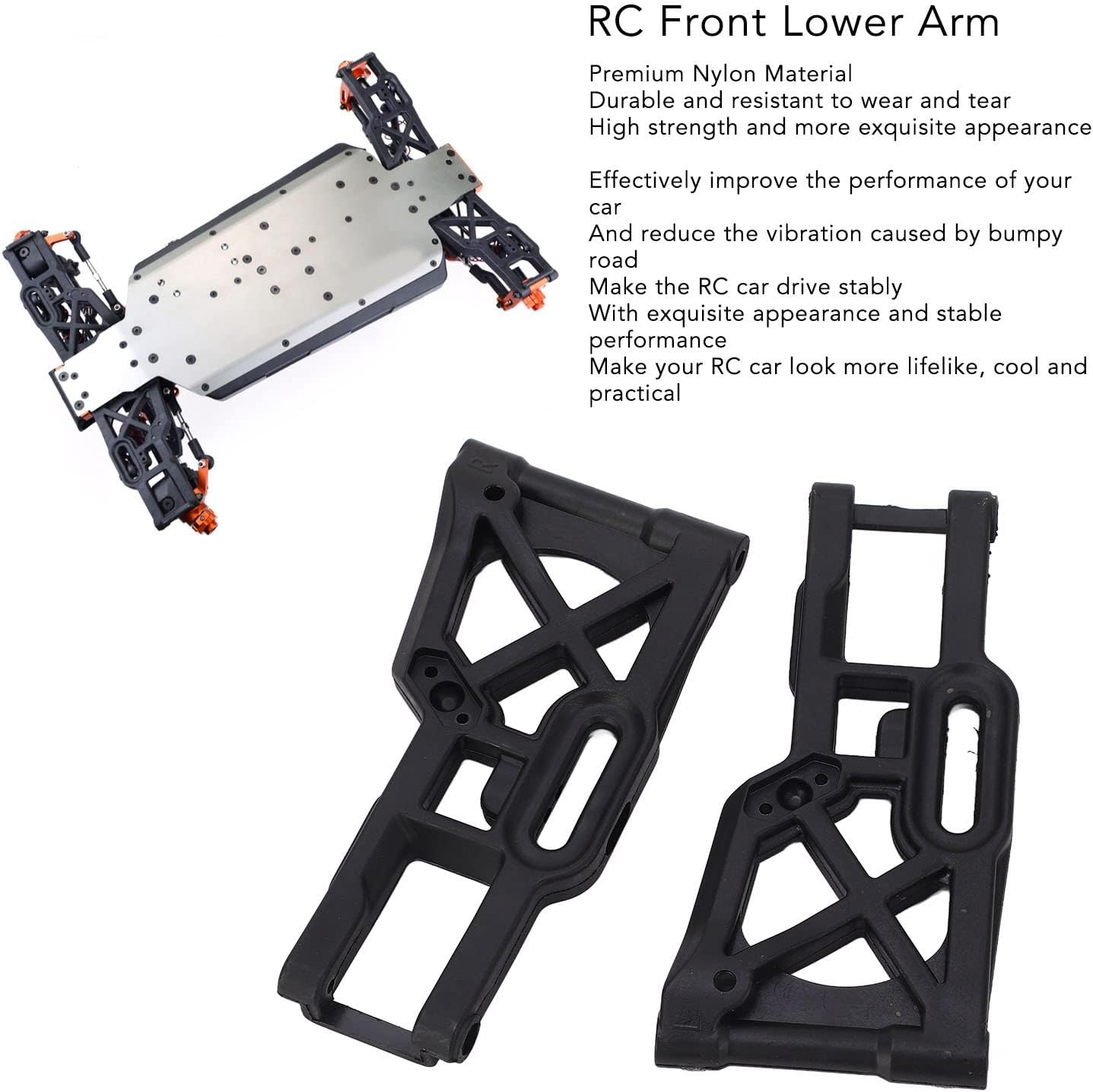 [Materiale in nylon di alta qualità] Realizzato in nylon di alta qualità, questo braccio oscillante inferiore anteriore RC offre eccezionale durata e resistenza all'usura. La sua costruzione ad alta resistenza garantisce prestazioni di lunga durata pur mantenendo un aspetto raffinato. Il materiale robusto può resistere a condizioni fuoristrada intense, rendendolo un aggiornamento affidabile per la tua auto RC. [Stabilità e controllo migliorati] Sperimenta corse più fluide con vibrazioni ridotte su terreni accidentati. Questo avambraccio anteriore RC migliora notevolmente la manovrabilità e la stabilità della tua auto, garantendo un controllo accurato anche su superfici sconnesse. Il design ottimizzato riduce al minimo gli urti e offre agli appassionati di RC un'esperienza di guida più stabile e confortevole. [Leggero ma resistente] Progettato per essere leggero senza compromettere la resistenza, non aggiunge ingombro inutile alla tua auto RC. La struttura solida resiste alla deformazione sotto stress e offre un equilibrio tra prestazioni e durata. Ideale per modelli da corsa ZD come 9116, 9020, 9072 e altre auto RC in scala 1/8. [Design elegante e funzionale] Trasforma la tua auto RC con questo elegante braccio di sospensione nero che combina fascino estetico e funzionalità pratica. Il design moderno conferisce al tuo veicolo un aspetto più realistico e aggressivo e garantisce un'eccellente integrità strutturale. per gli hobbisti che apprezzano sia le prestazioni che l'impatto visivo. [Processo di installazione semplice] Questi bracci sospesi possono essere installati rapidamente senza strumenti speciali per una sostituzione senza problemi. Sostituisci semplicemente le parti vecchie o danneggiate con questi aggiornamenti più potenti. Il design diretto garantisce la compatibilità con i componenti originali e ti fa risparmiare tempo migliorando al tempo stesso le prestazioni generali della tua auto RC.