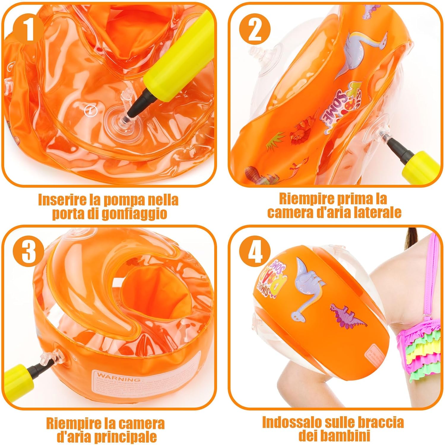 Massima Sicurezza-VGMANNTA braccioli bambini 2 anni sono realizzati in materiale PVC ispessito, i braccioli sono atossici e innocui, hanno una buona elasticità, un'elevata galleggiabilità e non sbiadiscono facilmente. Il materiale interno è molto morbido e il materiale dei braccioli, delicato sulla pelle, garantisce una migliore protezione per la pelle sensibile del tuo bambino. Testato TÜV-GS e privo di plastificanti secondo EN13138. I braccioli rendono l'apprendimento del nuoto più divertente Aiuti per il Nuoto- Aiuti per il nuoto per bambini da 10 a 25 kg, braccioli bambini 3 anni è pronto per l'uso dopo il gonfiaggio, 2 doppie camere d'aria extra-large (volume 40%:60%) con valvole di sicurezza indipendenti offrono la massima sicurezza, garantiscono elevata stabilità e una sensazione di sicurezza. Grazie al design trasparente, il bambino può godere dell'intero campo visivo in acqua senza essere disturbato. COMPATTO e pratico dopo lo sgonfiaggio. Sicuro ed Elegante- I nostri braccioli bambini 1 anno sono dotati di un innovativo sistema a tre camere, composto da una camera d'aria principale e due camere d'aria ausiliarie, che garantiscono una perfetta galleggiabilità e stabilità grazie a camere d'aria extra-large, per offrire al tuo bambino un ambiente di nuoto sicuro. Campo visivo libero grazie al design trasparente, accattivante giallo neon per la massima sicurezza e stile. Adatto anche per braccioli bambini 5 anni. Divertiti Nuotando - I migliori accessori per piscina. I nostri braccioli bambini 3 anni sono progettati ergonomicamente per i più piccoli, consentendo maggiore libertà di movimento e promuovendo non solo la sicurezza, ma anche la fiducia e la gioia di imparare a nuotare. Ideale per l'uso in piscina, vasca da bagno, ma anche al lago e al mare, può essere utilizzato con un noodle piscina per imparare a nuotare in modo rapido e sicuro, molto popolare come regalo di valore per i bambini. Ali da Nuoto per Bambini- Facili da usare e riporre. Durante l'uso, si consiglia di gonfiare il braccioli bambina al 70-80% per un utilizzo più confortevole. Quando non viene utilizzato, il telo può essere sgonfiato, senza occupare spazio. La combinazione di massima sicurezza + design sofisticato + aspetto gradevole + praticità nel trasporto garantisce tanto divertimento e motivazione in acqua. Per qualsiasi domanda, contattate il nostro team post-vendita.