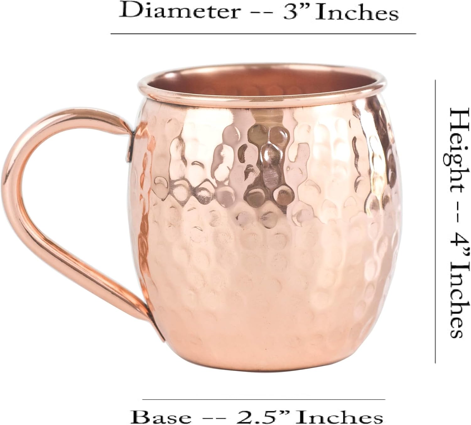 Dimensioni approssimative - Tazza - Altezza: 10 cm; Diametro: 7,6 cm; Base: 6,3 cm; Peso: 150 g Contenuto della confezione: set di bicchieri in rame P.S.: il colore del prodotto potrebbe variare leggermente a seconda della fotocamera e delle impostazioni del monitor. Colore: Marrone; Materiale: Rame Bicchieri in rame con decoro indiano. Ottimi per acqua, succhi e altri liquidi. Ideali per servire bevande ai vostri ospiti in qualsiasi occasione e festa. Ottimi per decorare la tavola. Un regalo perfetto per familiari, amici e colleghi.