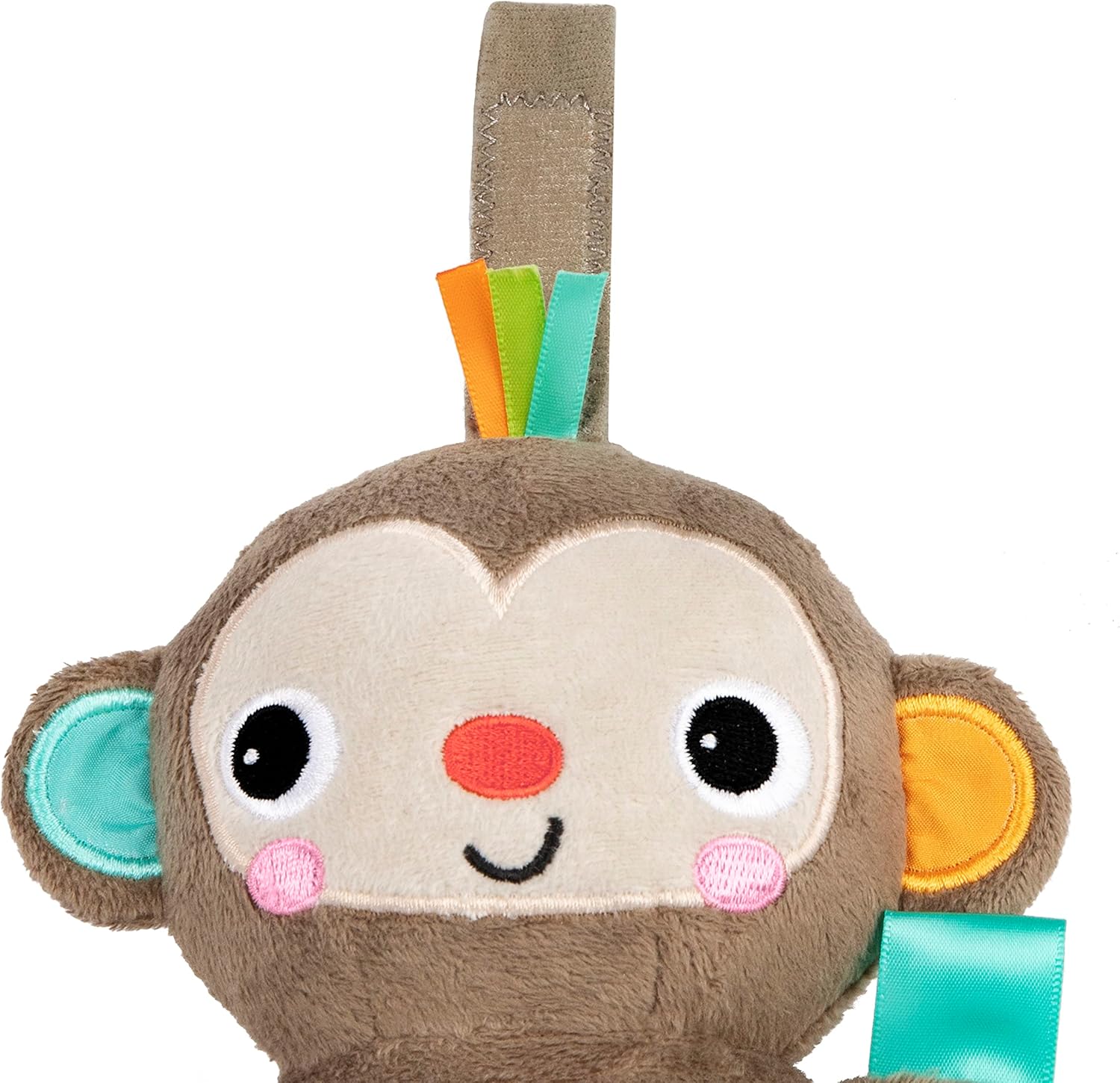 Tira dolcemente la foglia del Pull, Play ’n Boogie e guarda il corpo della scimmia espandersi e contrarsi lentamente mentre suona una melodia gioiosa di 60 secondi per far ridere il bambino e introdurlo alla musica Realizzato con tessuti misti morbidi al tatto che incoraggiano l'esplorazione tattile del bambino; favorisce il coinvolgimento visivo, l’azione di raggiungere e di afferrare, il concetto di causa-effetto Si aggancia facilmente a passeggini o marsupi mentre viaggi o sei in giro; intrattiene il bambino ovunque si trovi, supportando le principali tappe dello sviluppo Pulire con un panno umido e del sapone neutro; dimensioni: 15 (L) x 33,5 (A) x 5 (P) cm. Il design neutro lo rende il regalo perfetto per maschietti e femminucce per compleanni, baby shower, Natale, Hanukkah, Pasqua o altre occasioni