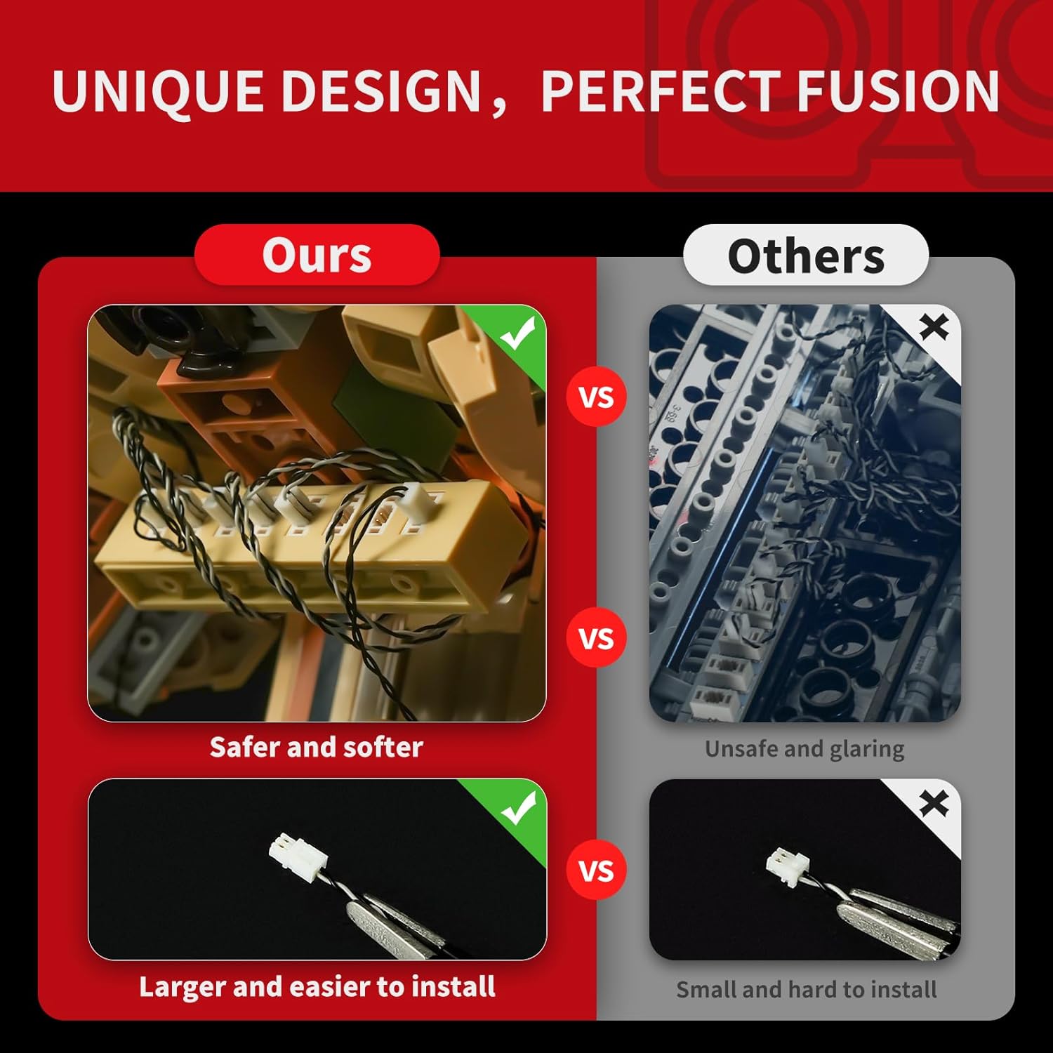 Display migliorato: la morbida illuminazione a LED si integra perfettamente con LEGO, rendendo il tuo set LEGO Neuschwanstein Castle brillare di notte e distinguersi come un punto culminante dell'arredamento della casa. Tecnologia brevettata: gli accessori 2.0 aggiornati e il mattone nascondiglio dei cavi mantengono i fili in ordine, garantendo un modello pulito e bello e una costruzione più facile. Artigianato premium: fili durevoli di ingegneria tedesca, spine reversibili più grandi e connessioni sicure per un montaggio senza sforzo. Installazione flessibile: design modulare in mattoni, manuale di carta trasparente e strisce luminose staccabili, perfette per legami familiari e educazione STEM. Regalo perfetto: confezione ecologica, qualità premium, ideale per compleanni e vacanze, fornisce pezzi di ricambio gratuiti e supporto dedicato.