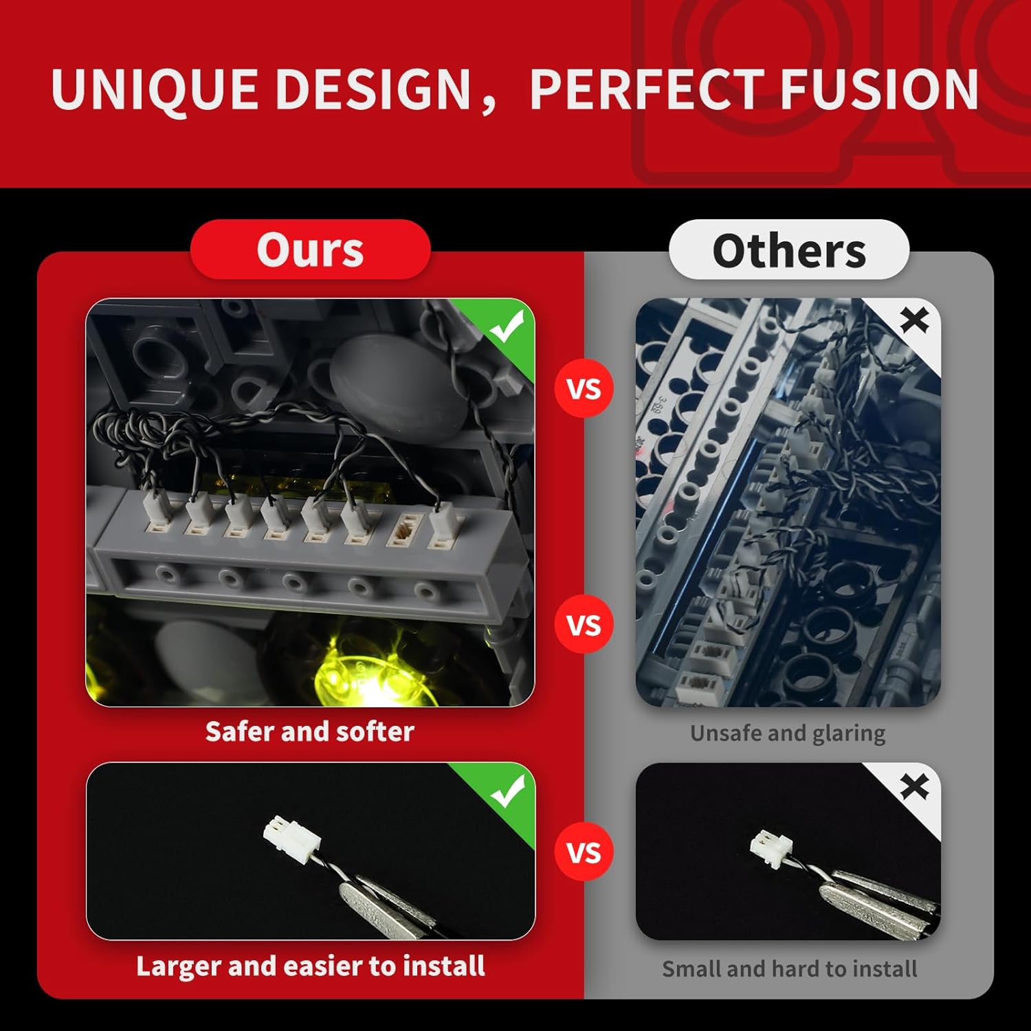 Display migliorato: la morbida illuminazione a LED si integra perfettamente con LEGO, rendendo il set Starship del tuo LEGO Jango Fett brillare di notte e distinguersi come un punto culminante dell'arredamento della casa. Tecnologia brevettata: gli accessori 2.0 aggiornati e il mattone nascondiglio dei cavi mantengono i fili in ordine, garantendo un modello pulito e bello e una costruzione più facile. Artigianato premium: fili durevoli di ingegneria tedesca, spine reversibili più grandi e connessioni sicure per un montaggio senza sforzo. Installazione flessibile: design modulare in mattoni, manuale di carta trasparente e strisce luminose staccabili, perfette per legami familiari e educazione STEM. Regalo perfetto: confezione ecologica, qualità premium, ideale per compleanni e vacanze, fornisce pezzi di ricambio gratuiti e supporto dedicato.