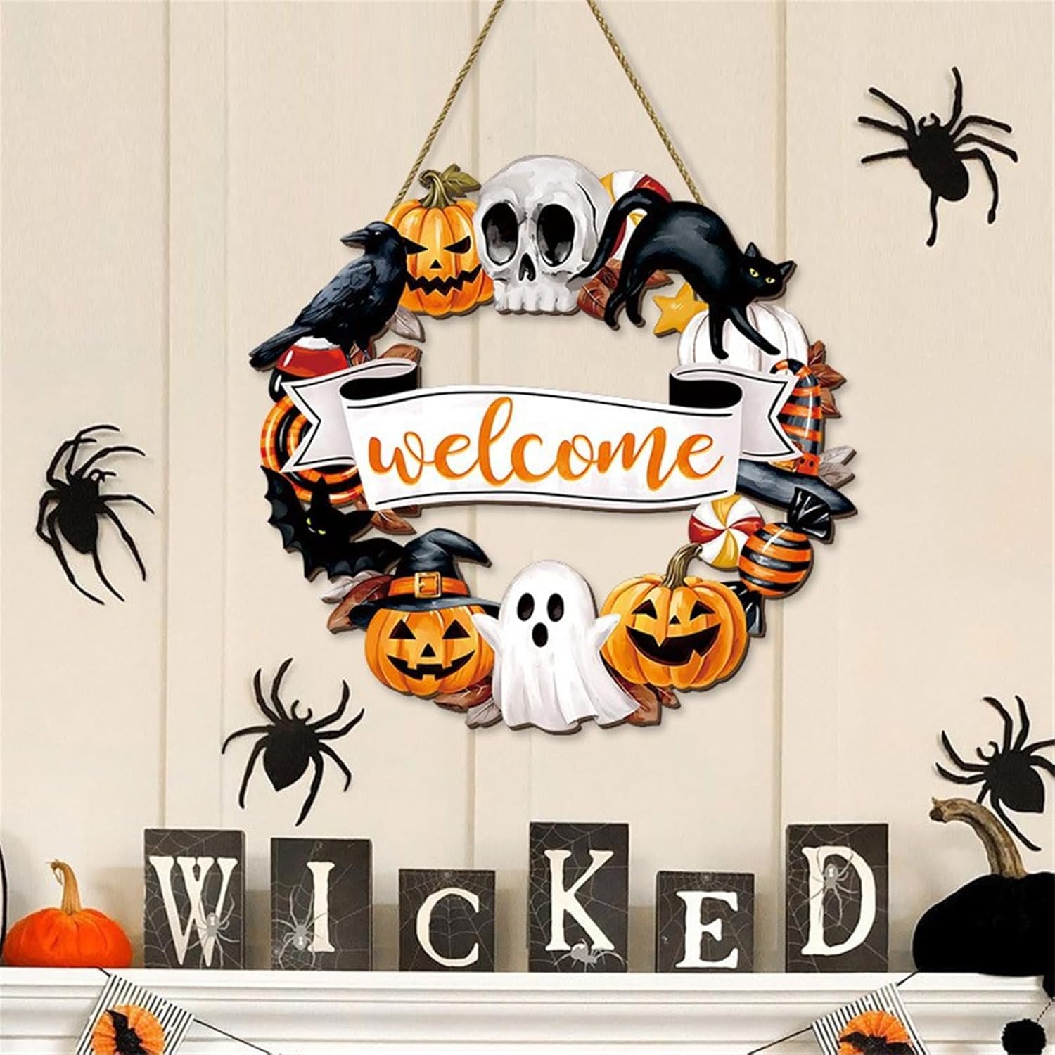 Attira l'attenzione della gente: questa decorazione per porta di Halloween è adeguata in termini di dimensioni e peso leggero, adatta per essere appesa in molti posti senza occupare troppo spazio e può attirare meglio l'attenzione della gente. Materiali in legno affidabili e durevoli: insegna per porta di Halloween realizzata con materiali in legno, che sono durevoli e duraturi, non si spezzeranno o si romperanno facilmente, i motivi sono stampati chiaramente, non si sbiadiranno facilmente, possono offrirti una buona esperienza d'uso. Puoi acquistare con sicurezza Occasioni per appendere disponibili: il cartello della porta d'ingresso felice di Halloween può essere appeso al muro, alla porta, alla finestra o Il design della porta d'ingresso di Halloween adotta un cane classico, disegni che sembrano belli ed eleganti, possono lasciare ai tuoi ospiti un'impressione più profonda Ideale per decorazioni domestiche Riceverai 1 pezzo di decorazione della porta d'ingresso di Halloween