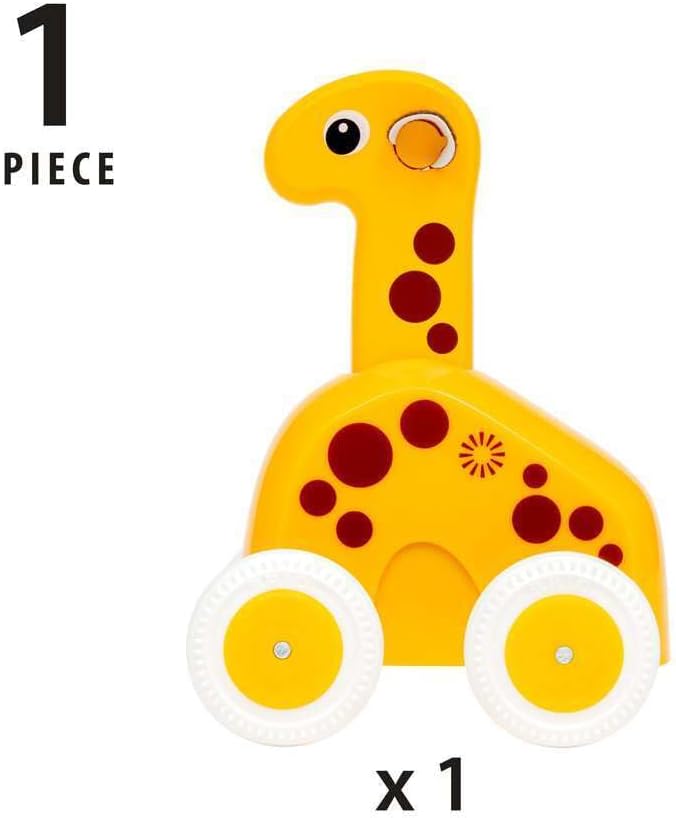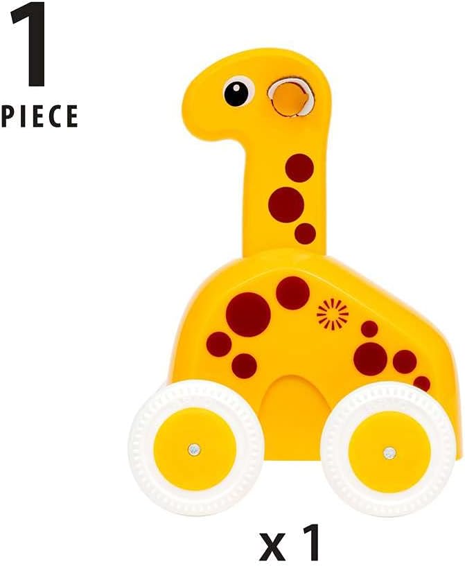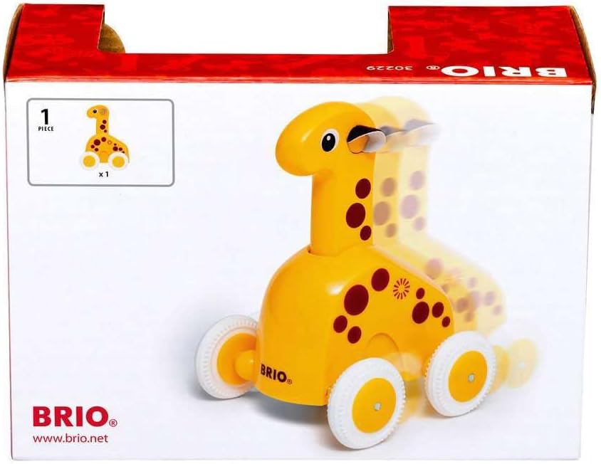 Tenera Giraffa Push & Go per i bambini più piccoli che stanno iniziando a gattonare e camminare; basta spingere in basso la testa perché la giraffa si metta allegramente in moto Design semplice, studiato in base al target di età, e un meccanismo intuitivo adatto ai più piccoli; realizzata in legno di faggio europeo certificato FSC, plastica di ottima qualità e morbido feltro L'aggiunta ottima alla ferrovia di BRIO World che cresce e si sviluppa con il tuo bambino; adatto a bambini di età superiore a 3 anni La ferrovia BRIO consente ai bambini di comprendere e scoprire ciò che li circonda in modo divertente, favorendo lo sviluppo delle loro abilità fino-motorie